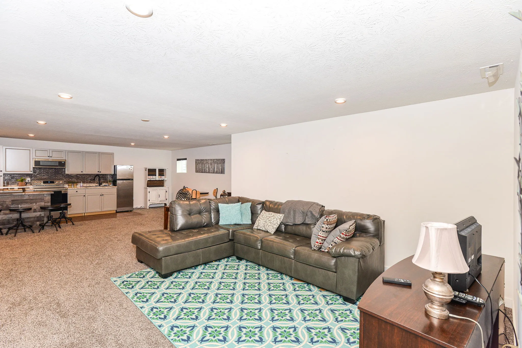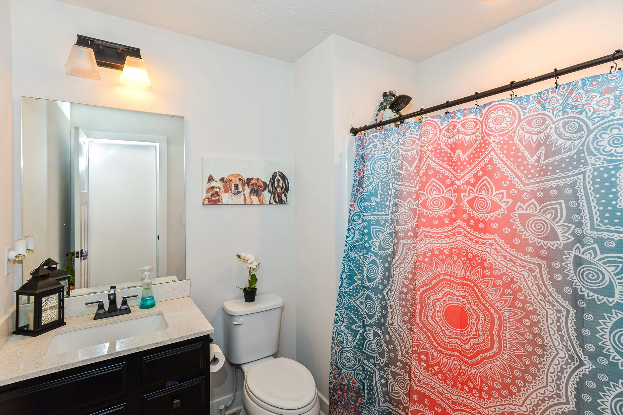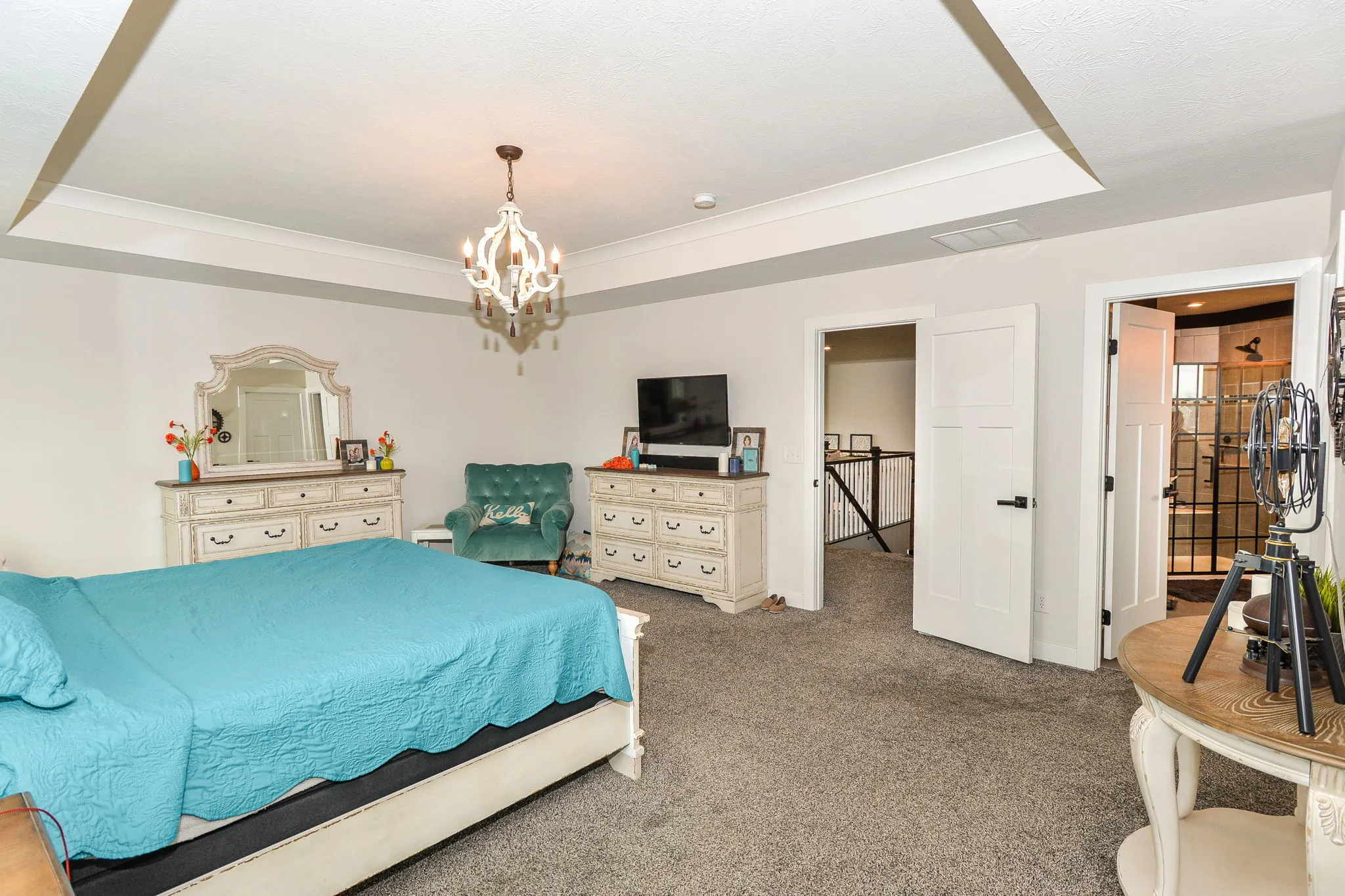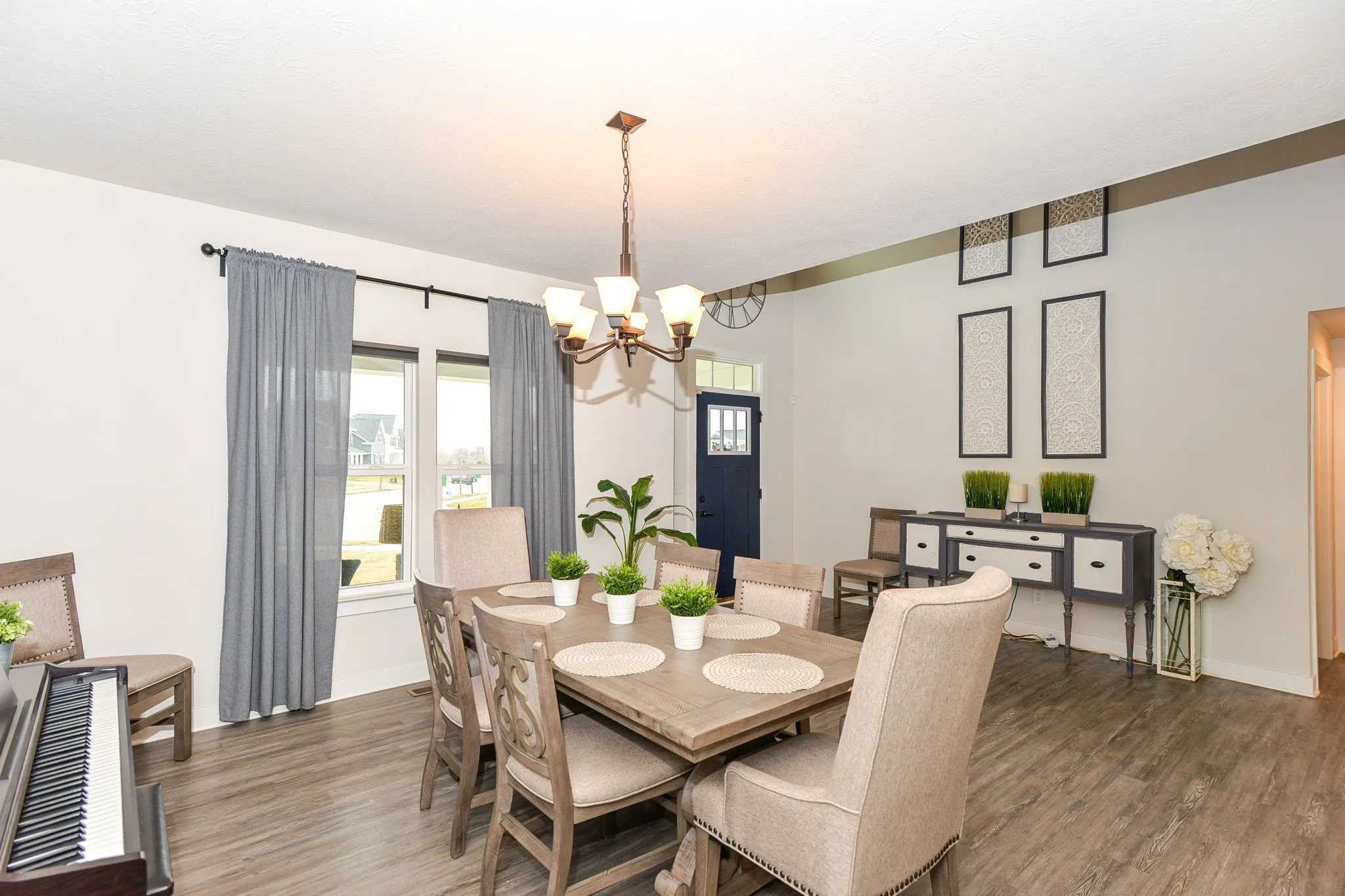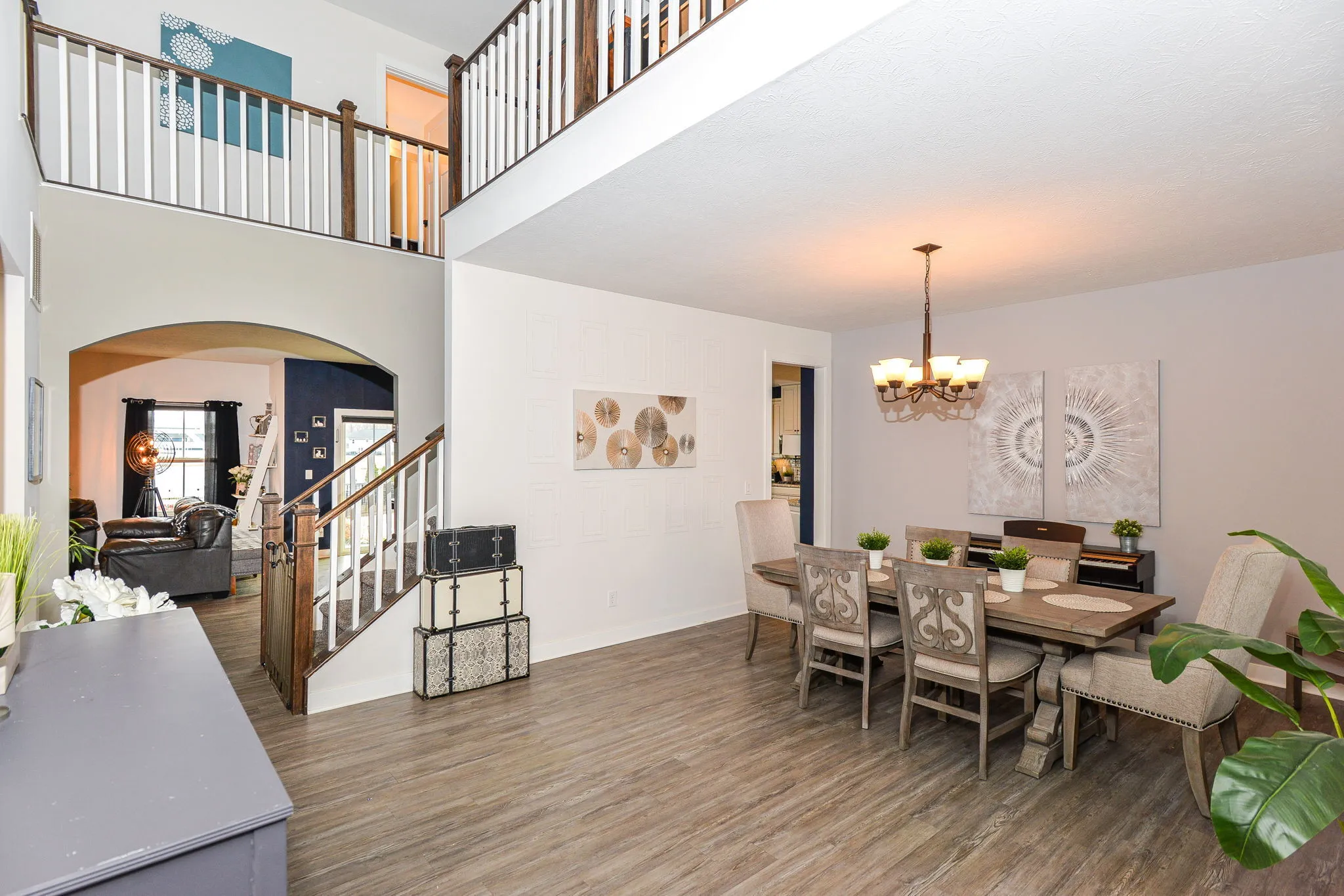 Welcome home to this immaculate turnkey ready to move in home. This cantered home has an enormous corner lot. Your future home has a 3-car garage, 6-bedrooms, and 5 (yes, 5) full bathrooms. It brilliantly combines efficiency, grandness, and beauty. The covered porch leads to an open main level with grand 20-foot ceilings. Formal dining room flows into the featured gourmet kitchen with double ovens, a vast granite island, expanded counter space, mud room, and a walk-in pantry. Eat-in kitchen area is positioned between the luxurious kitchen and the heath (living) room with a centered focused fireplace. Main level bedroom is currently being used as an office and connects to the hall full bathroom. Upper level features a loft, full double sink bathroom, laundry room, and grand primary with a sitting area, executive retreat bathroom, and expansive walk-in closet. A pleasant surprise awaits you with one of the three additional bedrooms on upper lever having an ensuite (peach room). The lower level finished basement is ready for apartment living, an in-law or mother-in-law quarters and entertaining. It is stocked with all kitchen appliances and sectional. It boasts of a theatre room with projector, screen, and chairs remaining for your use day one of your move-in. Basement utility room has good depth for plenty of storage with a washer and dryer hookup. Your backyard serenity is enclosed by a wrought iron fence with a beautifully placed pergola and a perfectly stamped concrete patio positioned ideally on the water for your relaxation and family enjoyment is. Side yard flat area could be the home of an in-ground pool. Golf-cart friendly community. Neighborhood amenities include, pool, playground and walking trails.