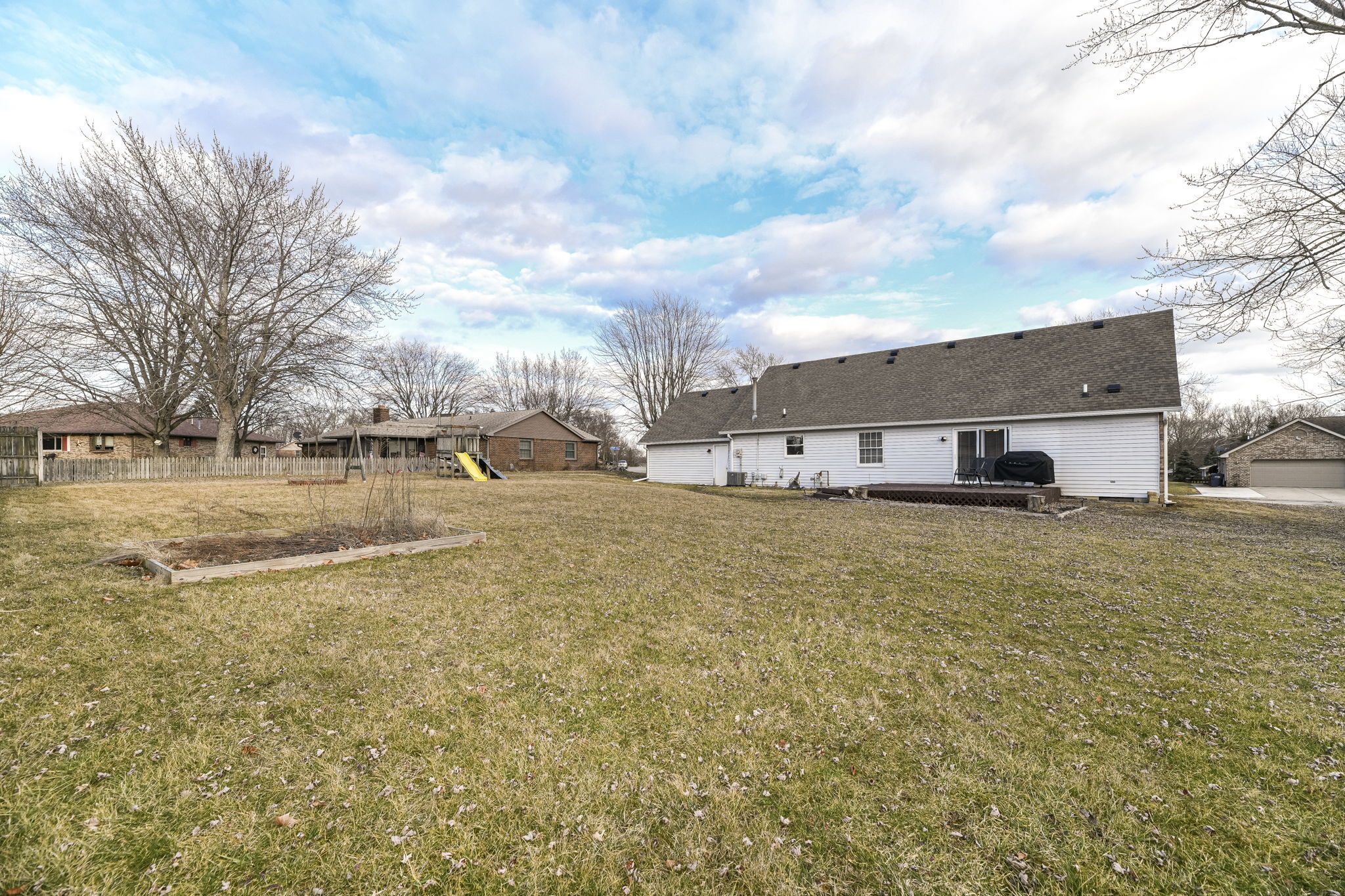 Nestled in the vibrant heart of Anderson, Indiana, this 3-bedroom, 2.5-bathroom home offers a perfect blend of comfort, convenience, and outdoor charm. Positioned with quick access to local gems like Harrah’s Hoosier Park, Anderson Speedway, Anderson University, and the serene Mounds State Park campgrounds, your new home is a gateway to endless adventures. Occupying a generous 0.32-acre lot, this inviting property features a sprawling backyard oasis designed for leisure and entertainment, boasting a deck, firepit, and a playground set against a semi-private backdrop. Stepping inside, you’re welcomed into a cozy living room that seamlessly transitions into a kitchen and dining area, creating an open and inviting space. The kitchen is equipped with stainless steel appliances, stylish tile backsplash, breakfast bar, and ample countertop and cabinet space, all complemented by delightful backyard views. The dining area, with direct deck access, invites al fresco meals and gatherings under the stars. On the main floor, the primary suite offers privacy and comfort, featuring a walk-in closet and an ensuite bathroom with a tub/shower combo. Venture upstairs to find spacious bedrooms, one with a large walk-in closet, sharing a convenient bathroom. The wide upstairs hallway expands into a cozy loft space, perfect for quiet reading nooks or a study area. With a new roof installed in 2020 and new garage door in 2019, this home is move-in ready! Located in a community rich with attractions and natural beauty, this home is not just a place to live, but a lifestyle waiting to be embraced. Don’t miss the opportunity to make lasting memories in this charming Anderson haven. Schedule your showing now to explore the possibilities that await!