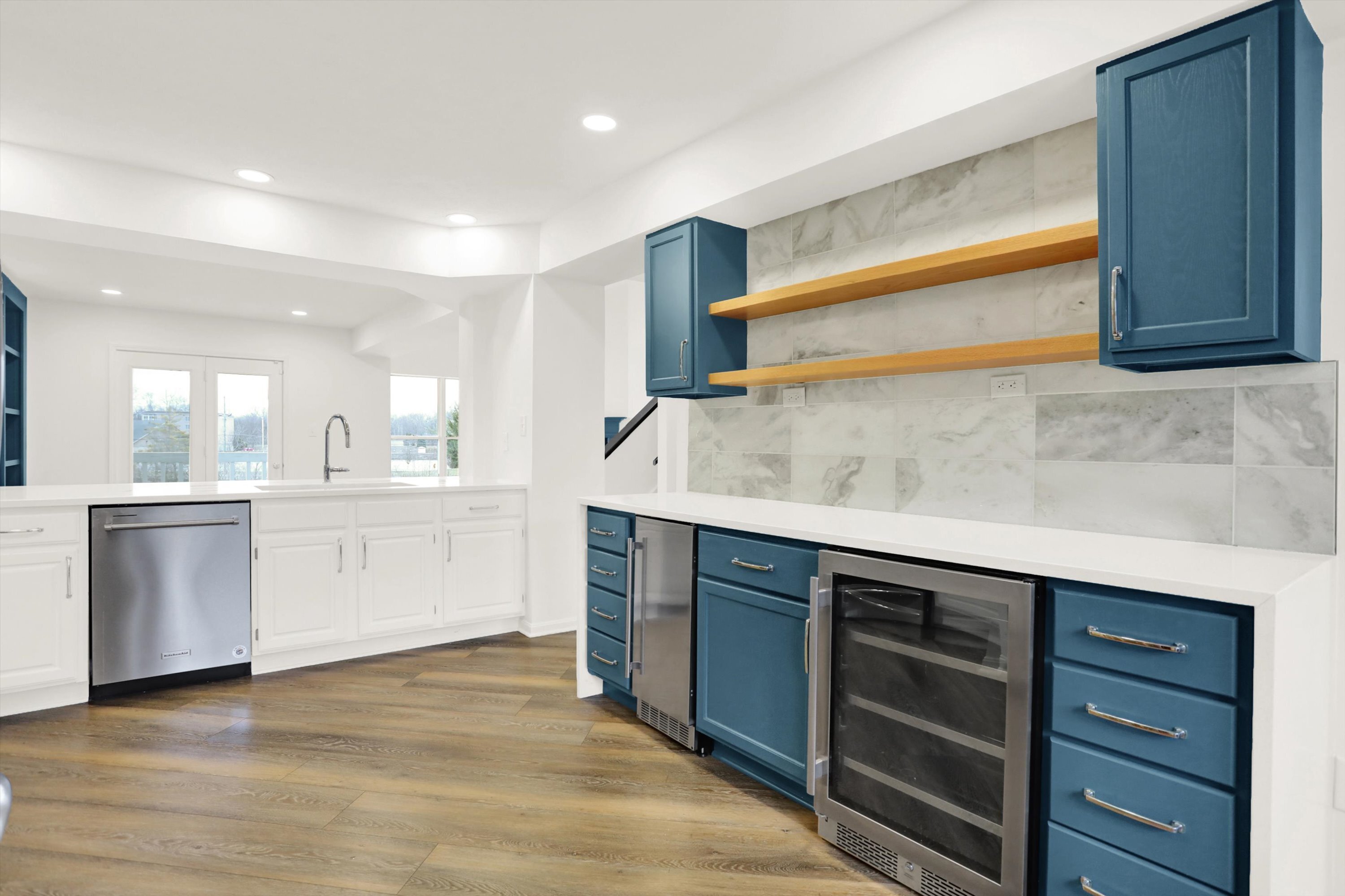 Welcome home! This rare find in desirable Winston Island Woods is situated less than 1 mile from Broad Ripple and seconds from the Monon Trail. Home features a fully updated kitchen featuring stainless steel appliances, sleek quartz countertops, marble backsplash and ample storage space. The recently installed luxury vinyl plank flooring, fresh paint throughout and newer water heater and furnace add to the updated and modern features of the home. Large windows provide picturesque views of the tranquil pond and mature trees surrounding the property. The spacious living area and formal dining room serve as an inviting retreat, perfect for unwinding after a long day or hosting gatherings with friends and family. Enjoy coffee on one of two upper decks or relax on the covered front porch watching the sunset through the scenic tree lined views. With its proximity to Broad Ripple Village and the Monon Trail, you can enjoy a wealth of dining, shopping, and recreational options just moments away. Discover the ease and convenience of low maintenance living at 6625 Shore Island Drive, where every detail is designed to enhance your lifestyle.