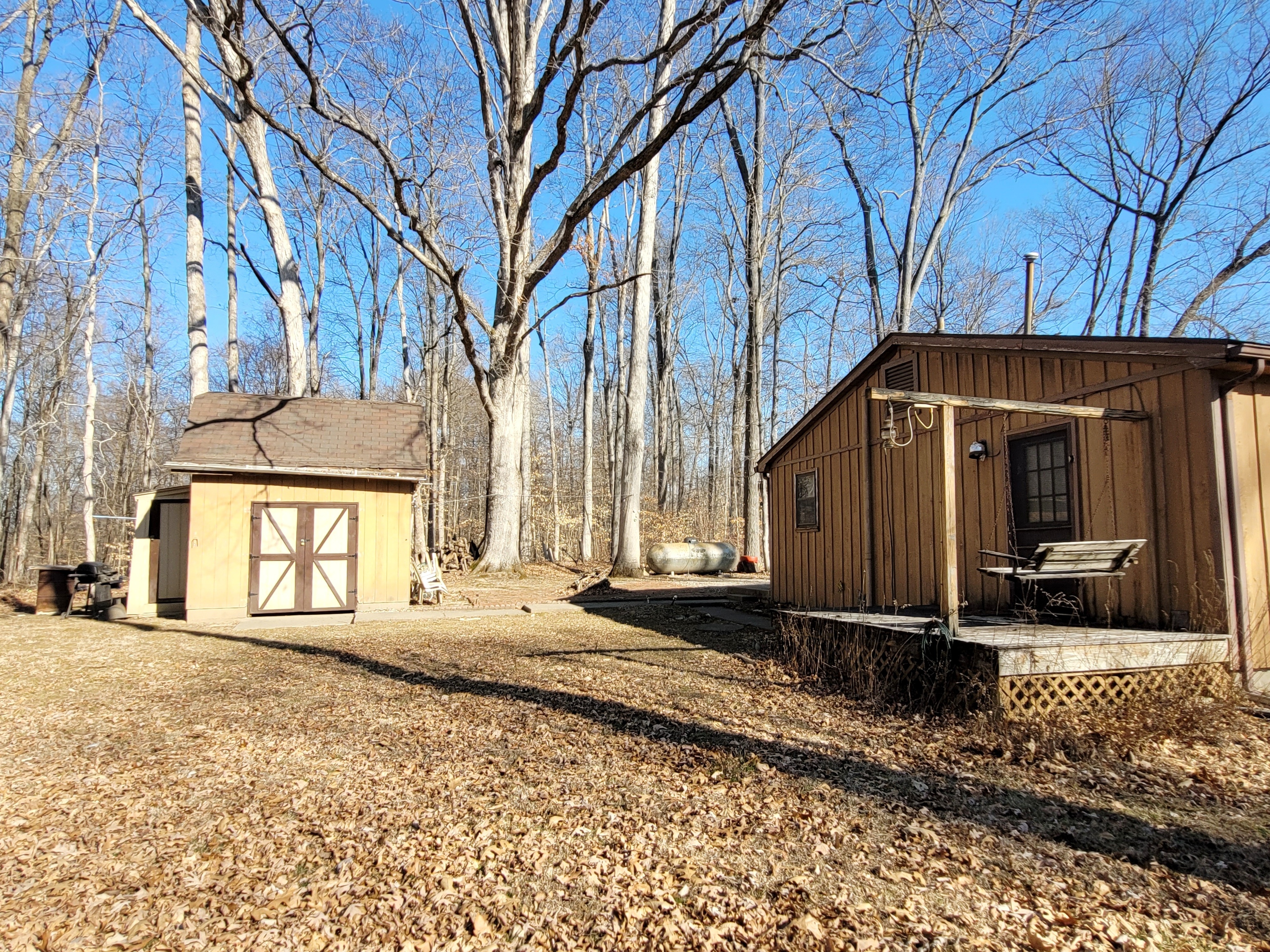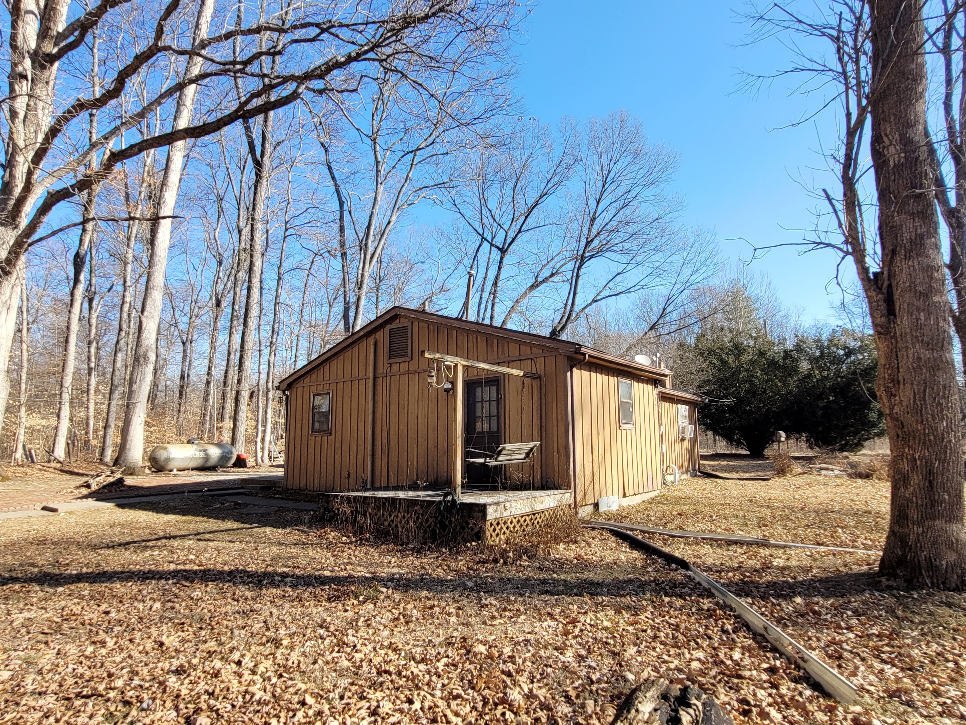 Woodland Lake in Brown County!! Looking for your First home or your next Fixer-Upper, Flip house or rental income producing property? This quaint 2 bedroom, 1 bathroom home sits on three flat lots surrounded by trees. Living room is currently being used as a bedroom. Storage barn on property gives ample storage for your fishing gear. Large driveway gives you plenty of room to park multiple cars or your boat & trailer. Lake rights allows you to slip your kayaks in or drop a line for your next big catch off the community dock.