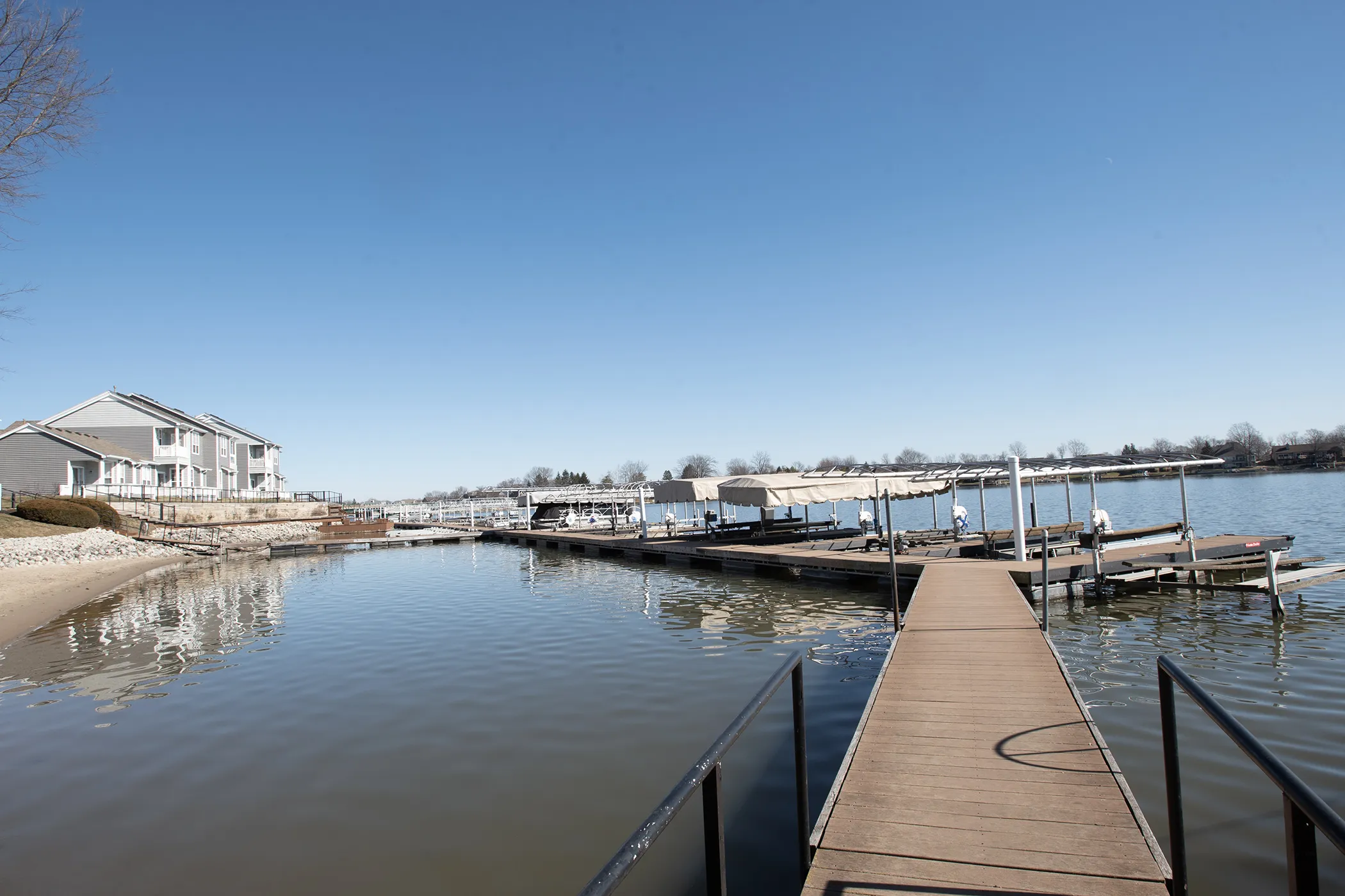 Enjoy Lake Life In This Maintenance-Free Lakefront Community on Beautiful Morse Reservoir. The 2 Bedroom/2 Bath Split Floorplan Condo Has A Deeded Boat Dock In The Protected Cove (#115). Bright and Airy Great Room W/ Fireplace, Ceiling Fans and Plantation Shutters. Eat-In Kitchen Has Loads of Cabinets & Counters and Stainless Steel Appliances That Stay. Rest and Relax In The Spacious Master Suite W/ Walk-In Closet, Double Sinks and Access To The Enclosed Balcony. Laundry Room with Washer and Dryer that Remain. Finished one-car garage w/ Additional Storage. Newer Roof, Siding and HVAC. Community Includes Private Beaches and Lakefront Boardwalks. Seller Currently Rents A Space On The Kayak Storage Rack. Enjoy Harbour Trees Golf & Beach Club Just A Few Steps Away (Membership Required). Award Winning Noblesville Schools Too!