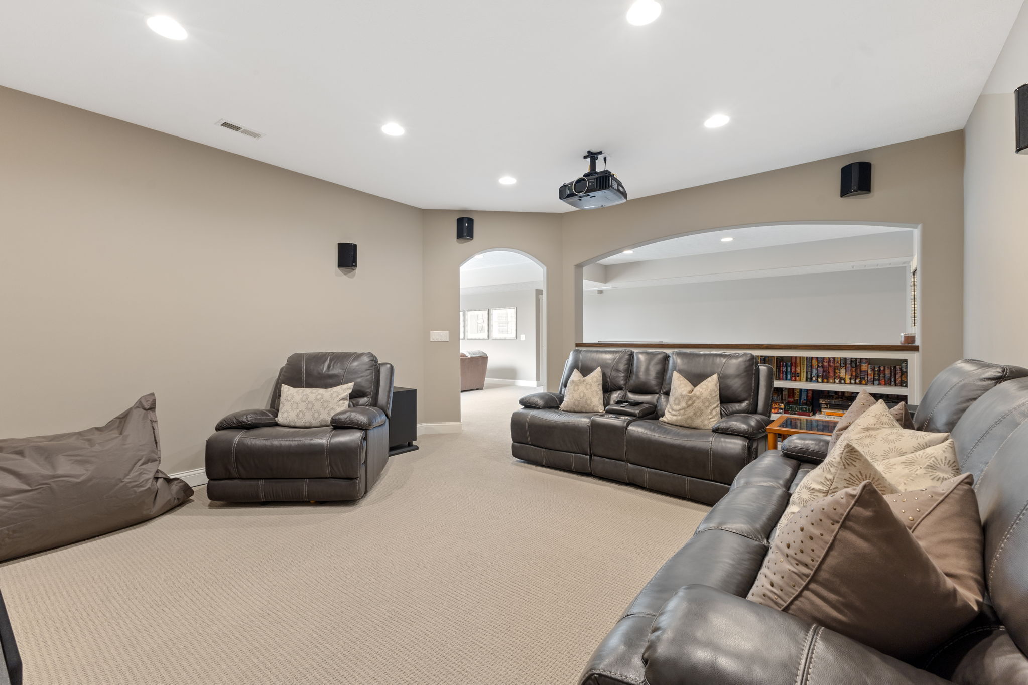 4,265 finished sf, 6 bedroom, 3.5 bath custom built Jacen Ray home in CG. In ground salt water pool, stained concrete patio, gas firepit, outdoor bar w/ a half bath for entertaining. Finished daylight basement w/ a family room, theatre room and game room. Primary bedroom: walk-in custom shower w/ rain showerhead and full body jets, walk-in closet and double vanity. Open kitchen w/ white cabinets, granite countertops, SS appliances overlooking the eating area and sunroom. Hardwood floors, custom built-ins, shiplap, tons of windows and light. Absolutely gorgeous!