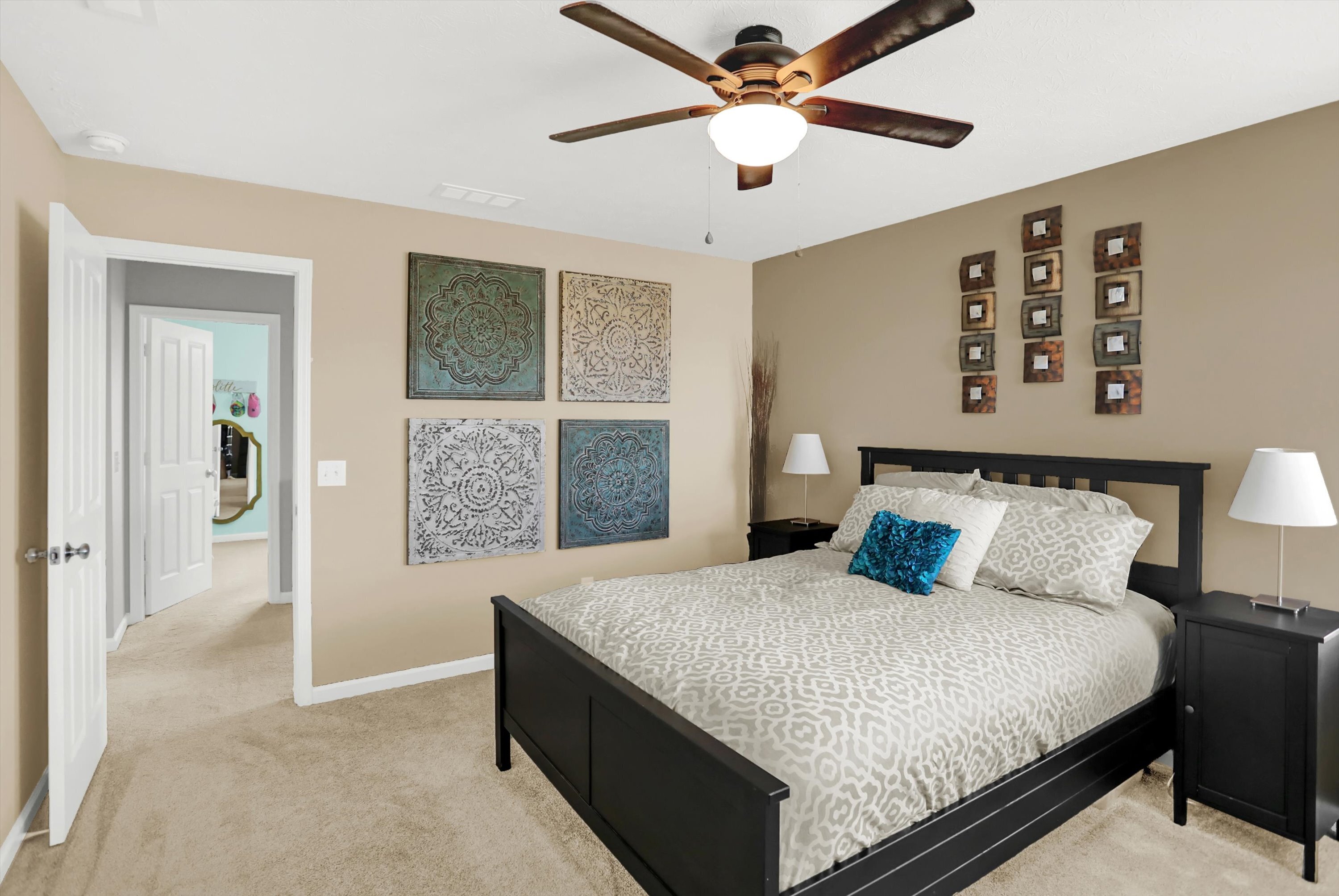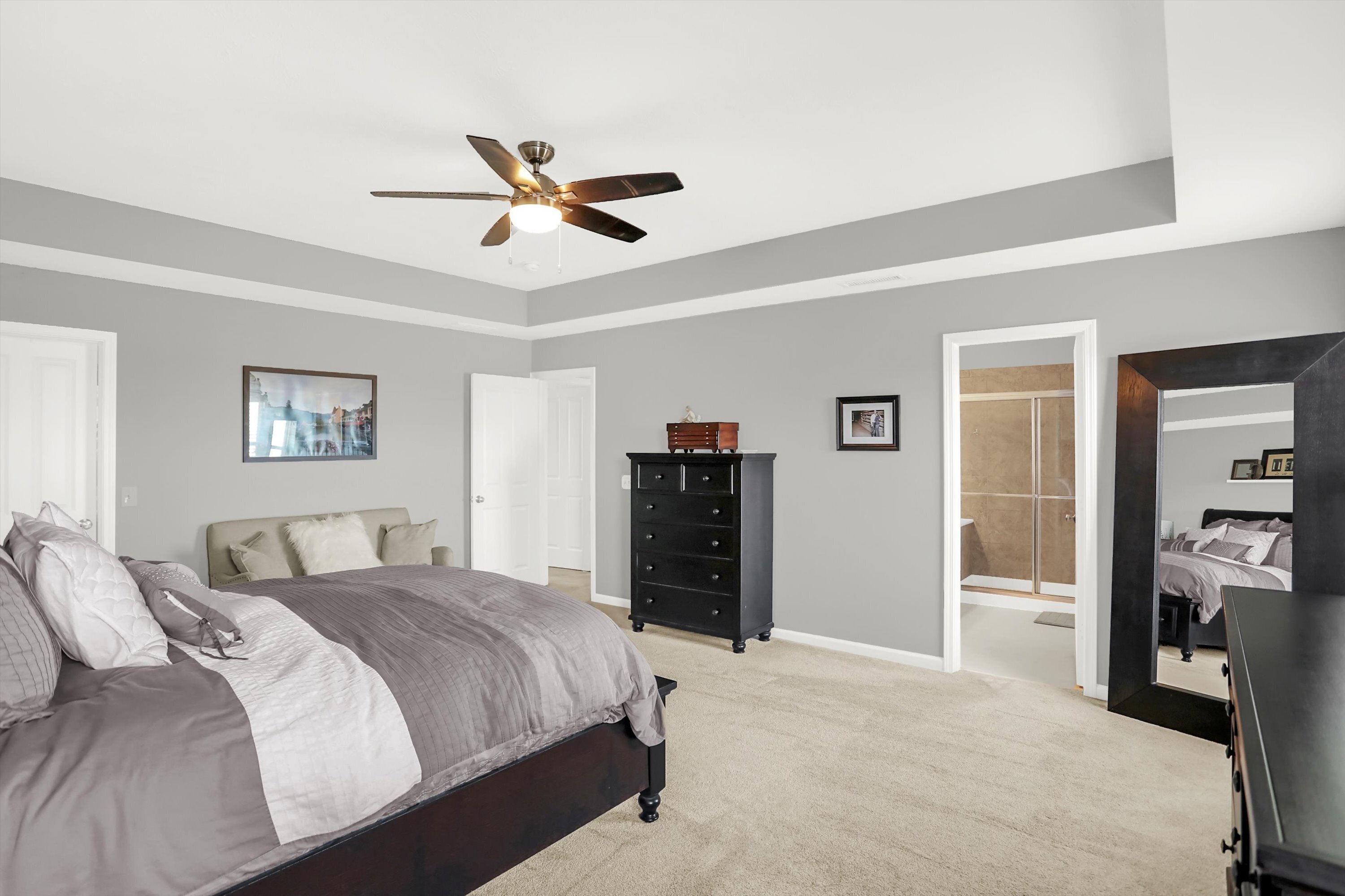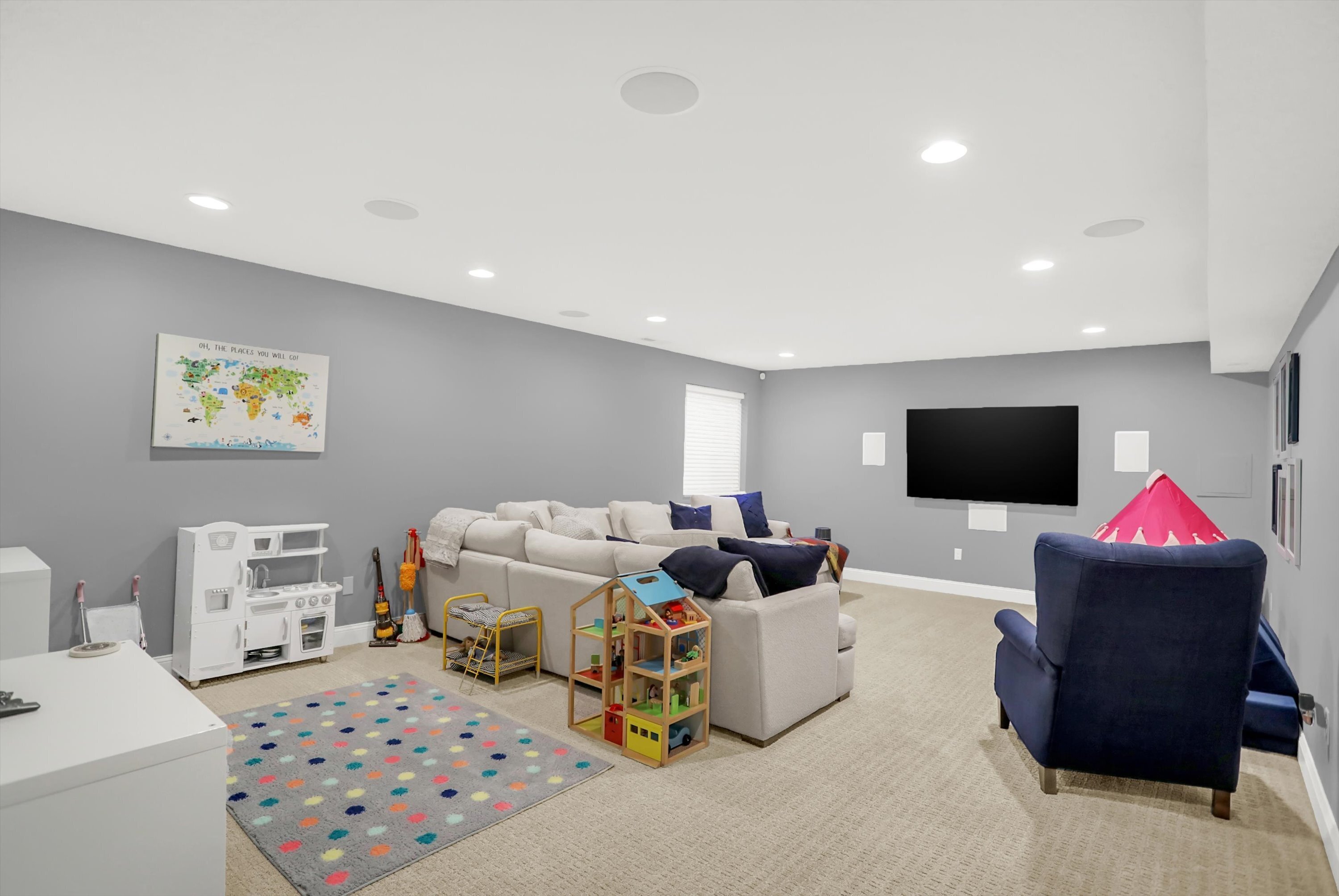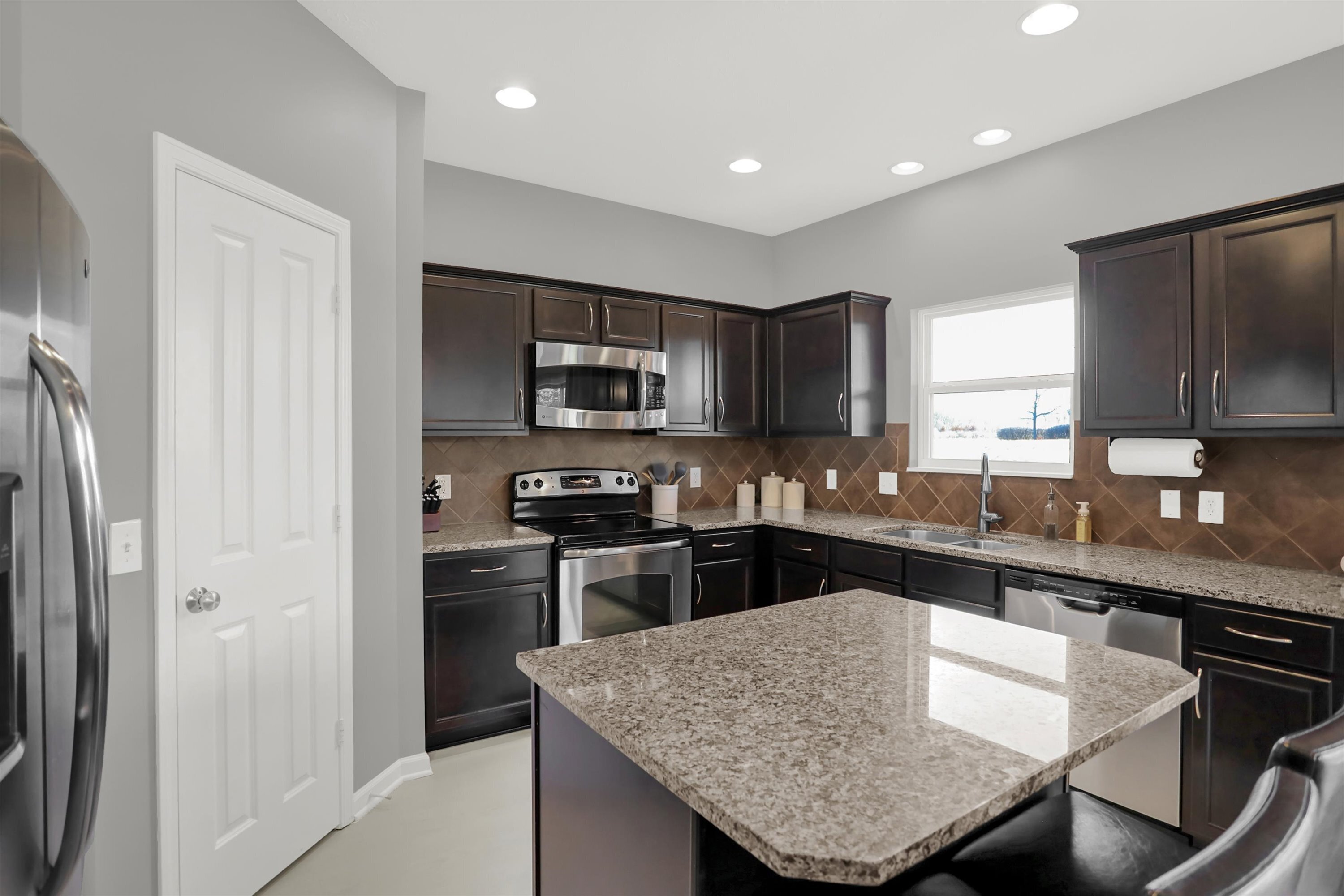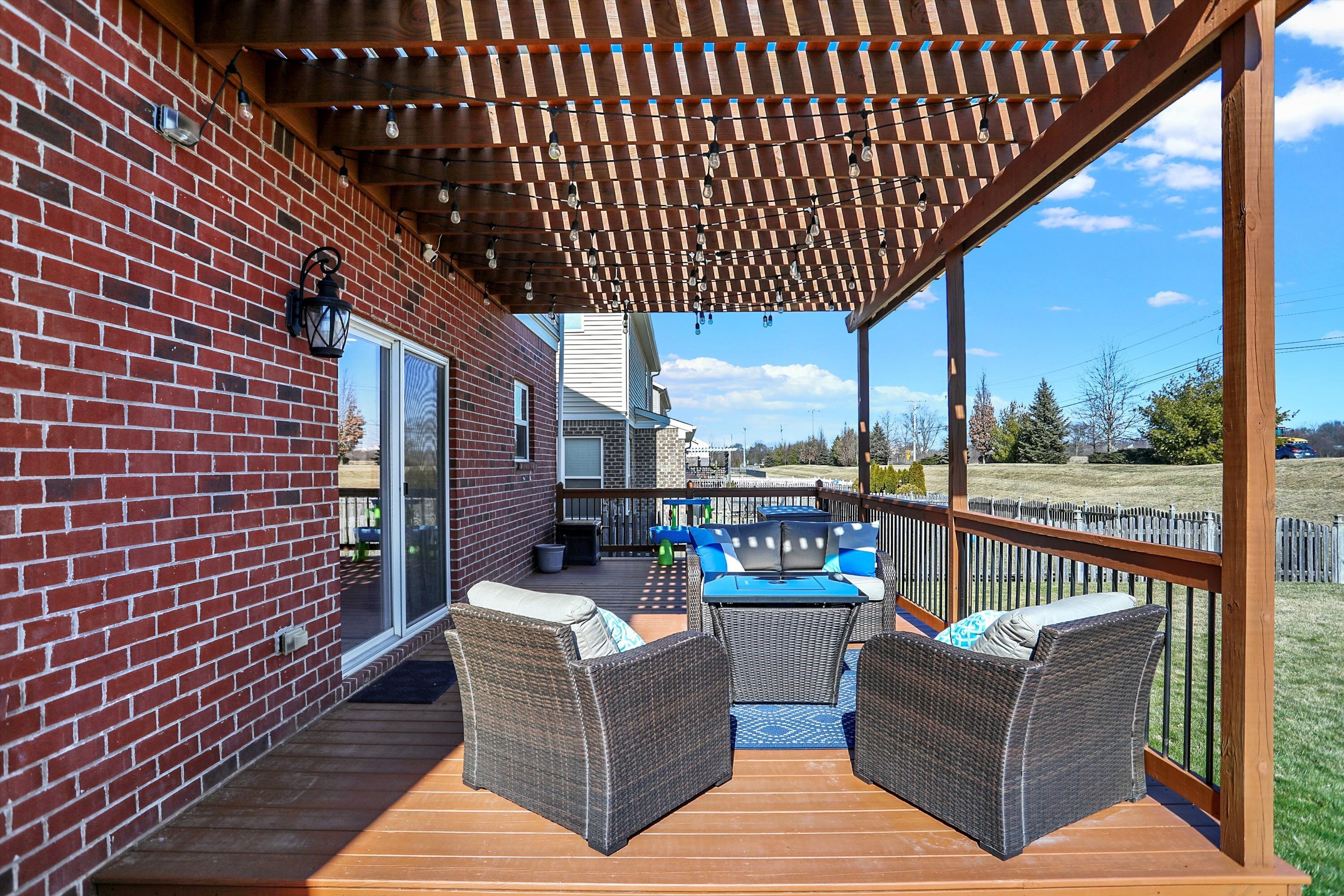 Welcome to this beautiful, move in ready, Fishers gem! Five bedrooms, 3.5 bathrooms, with a full finished basement. Gourmet eat-in kitchen boasts center island, granite countertops, tile back splash, and walk-in pantry. Open great room has a cozy gas fireplace. Home office with custom built-ins and French doors. Large primary suite features walk-in closet, dual sinks, tiled shower, and private water closet. Spacious additional bedrooms. Convenient upstairs laundry room has ample storage. Washer and dryer included. The finished basement serves as a versatile space with a fifth bedroom (currently makes a great work out room), huge rec/playroom, and third full bath with tiled shower and marble floors. Surround sound throughout basement. Fresh interior paint (2022), new LVP flooring (2021), new carpet (2021), new water heater and water softener (2023), and updated lighting. Great backyard with deck and pergola for outdoor entertaining. Convenient location to Hamilton Town Center, shopping, restaurants, the interstate and more! This one will not last long, schedule a showing today!
