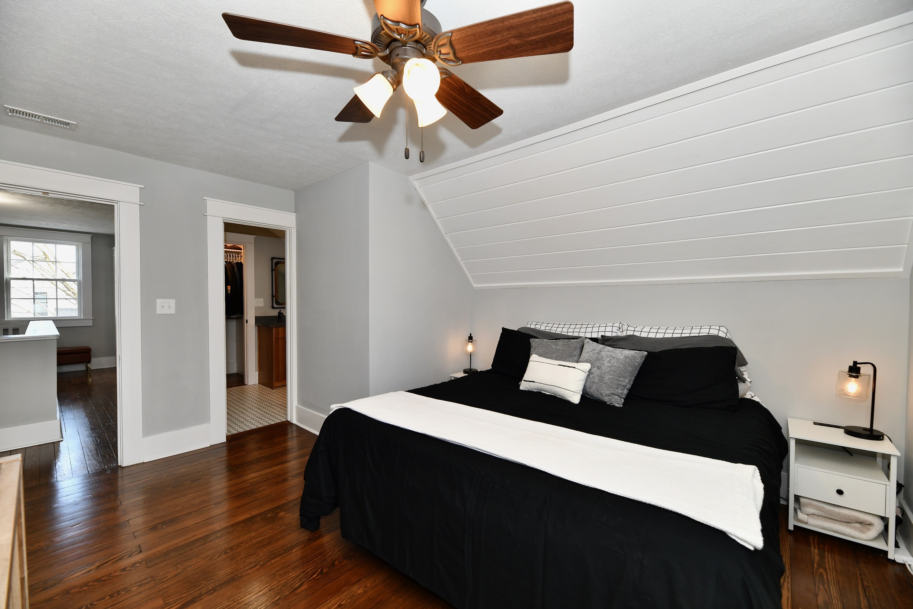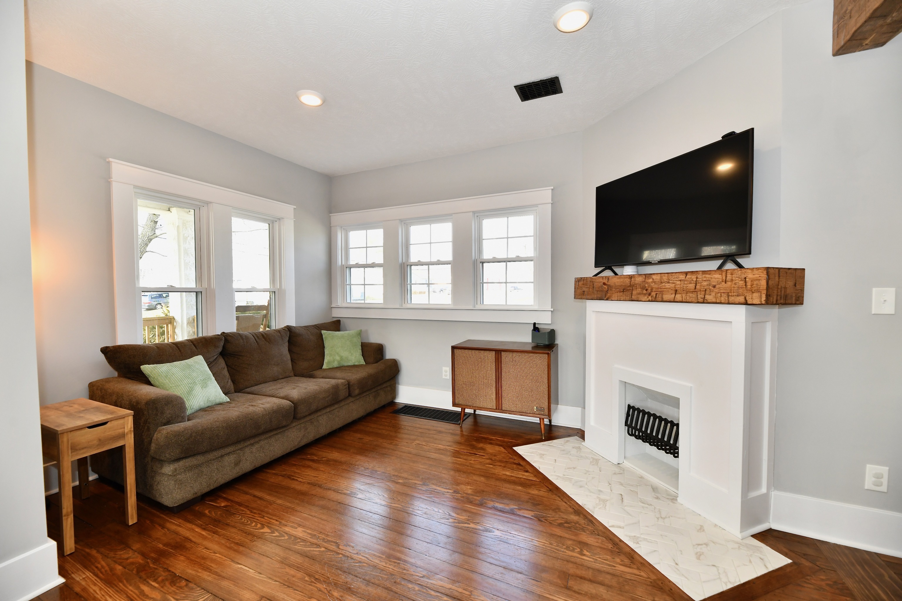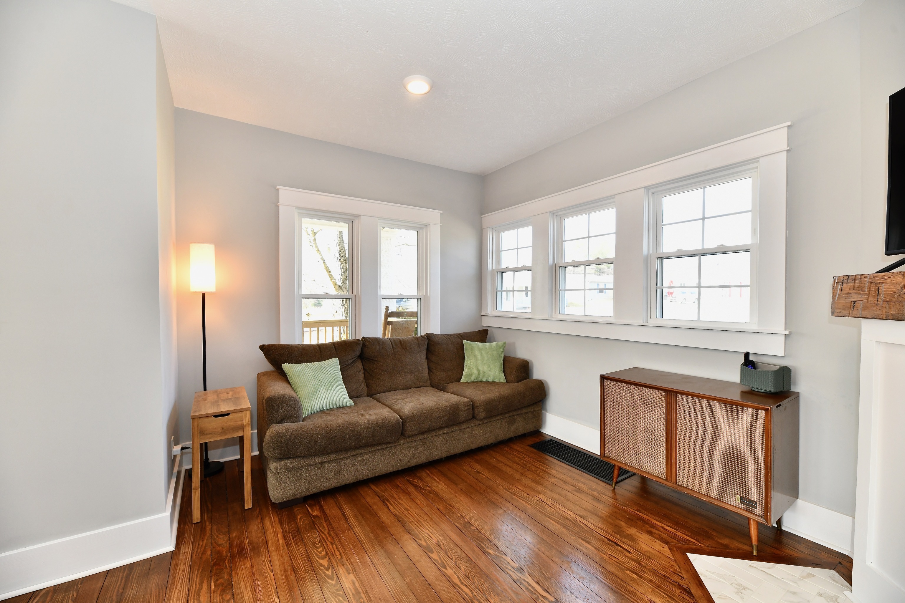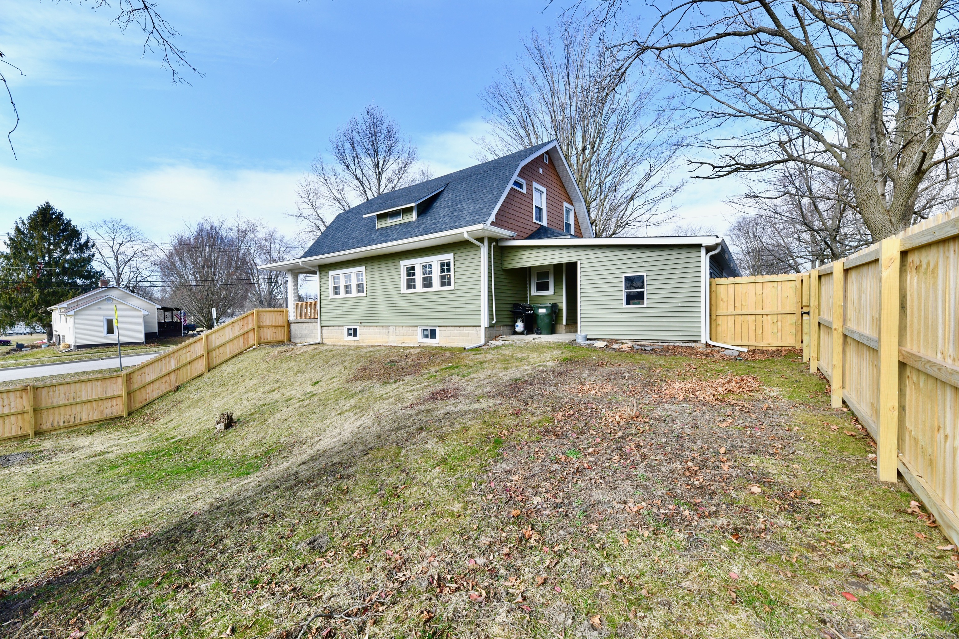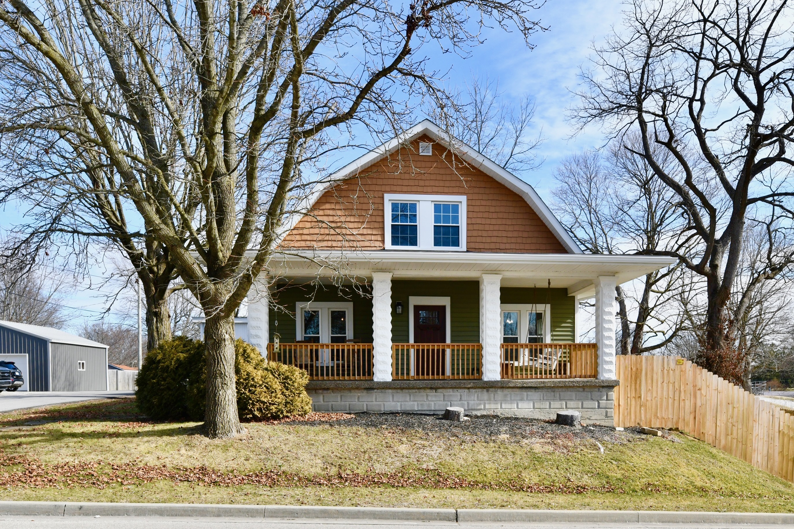Absolutely gorgeous Dutch Colonial home in the heart of Bainbridge with too many updates to list them all here! Completely renovated 2 years ago with all of the modern conveniences to make life easy yet you will still find many details such as original hardwood floors, doors and trim throughout and original brass doorknobs that show the character of when this beautiful home was built. Completely updated electrical/plumbing/HVAC/windows. Custom tiled shower in master bath also has 2 sinks and a walk-in closet. Upstairs full bath is completely renovated and offers plenty of room! Three spacious bedrooms upstairs with beautiful views of small town life and the park that’s close by. Full, open and daylit basement can be used for dry storage or finished to your liking. Main floor features soaring ceilings, several windows to let the sunshine in and an open floor plan for the Great Room/Dining/Kitchen/Family Room areas. Huge privacy-fenced back yard, garage w/ added covered parking and storage areas as well! You will love the covered front porch–and the porch swing will stay! This charmer includes all appliances, including the washer and dryer. Truly a move-in ready home!
