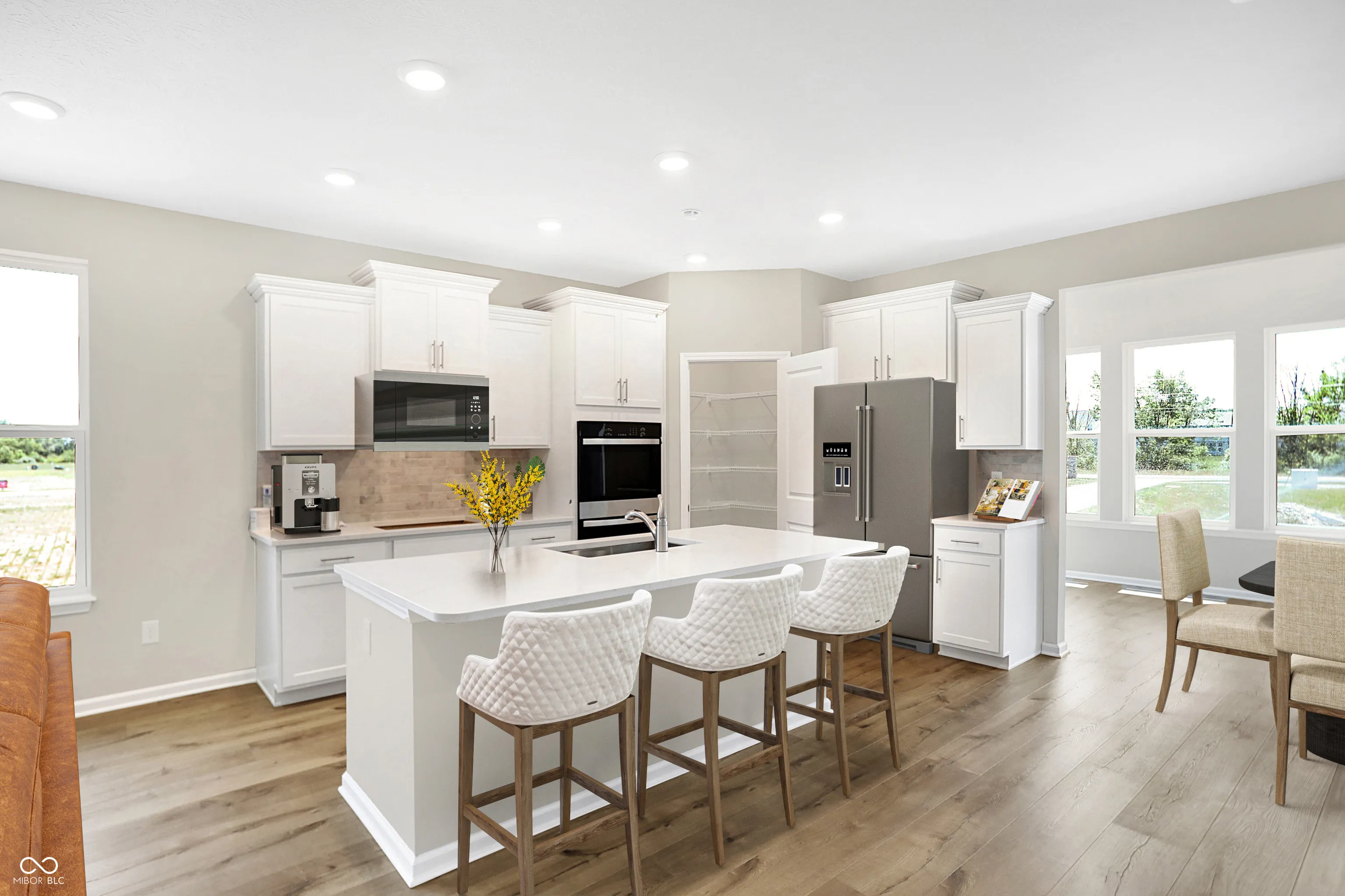 Introducing a BRAND-NEW luxury duet home in Franklin Township! This home boasts a deluxe kitchen with quartz counters, tile backsplash, and white staggered cabinets. The second-floor loft provides a private space for guests with a bedroom. Other features include a sunny morning room, electric fireplace, luxury plank flooring, and fully sodded yard. Designer interior paint in Worldly Gray adds charm. This ENERGY STAR certified; Net Zero Energy home ensures savings on utilities. Lawn care and snow removal included for a low monthly fee. Don’t miss this opportunity for upscale living! Beazer is offering a *5.99% interest rate for FHA or VA 30-year loans with the use of one of our designated Choice Lenders if contract is signed by 2/19/25. For more details and eligibility guidelines, contact Beazer Homes.