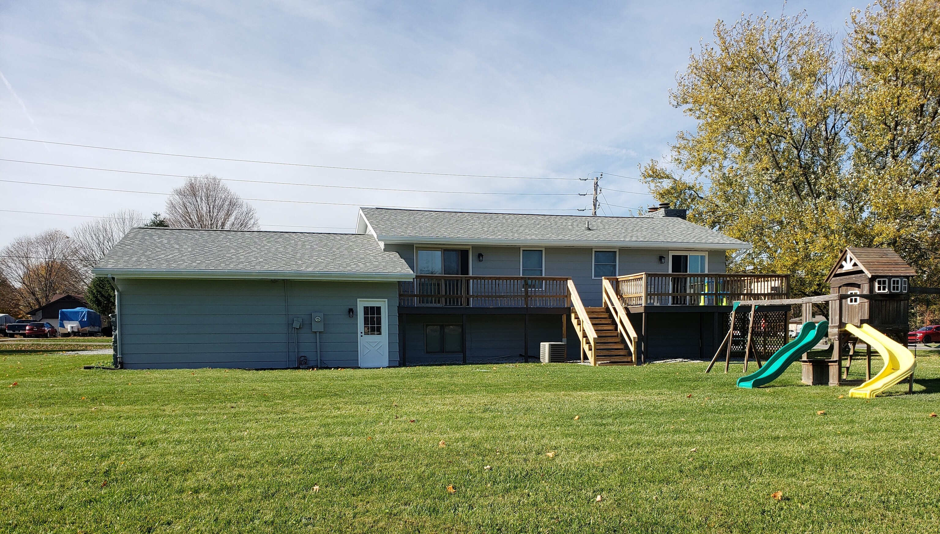 This terrific stone bi-level home has been lovingly remodeled, is move in ready & nothing was missed! You will love the open floor plan, finishes, No HOA, 0.65 of an acre, 4 car tandem garage. 3 bedroom + bonus room, 2 full baths, great room and recreation room, 2 wood burning fireplaces with blowers on both. The primary bedroom and dining room open to the upper level walk out deck. This home offers all new everything, paint, lighting, fixtures, baths & kitchen has all been updated with new cabinets that are slow close, tiled back splash, new flooring through out, granite kitchen counter tops, stainless steel appliances, the washer and dryer stay, large closets, under the stairs storage/play area, new water heater, roof with multidimensional shingles, interior doors, sliding door in breakfast is new, water heater, wrought iron stair rails! The playset can stay. There is electric pet fence in place for the property. Insulation was added to the attic for energy efficiency. New asphalt driveway and gravel parking area. This home is located at a low speed 4 way stop. This home is move in ready. Seller is related to the listing agent.