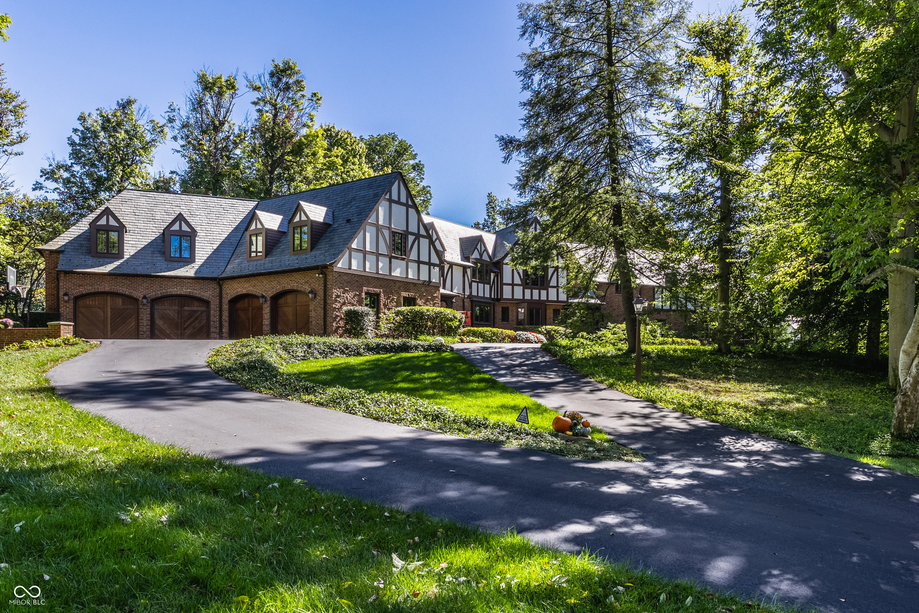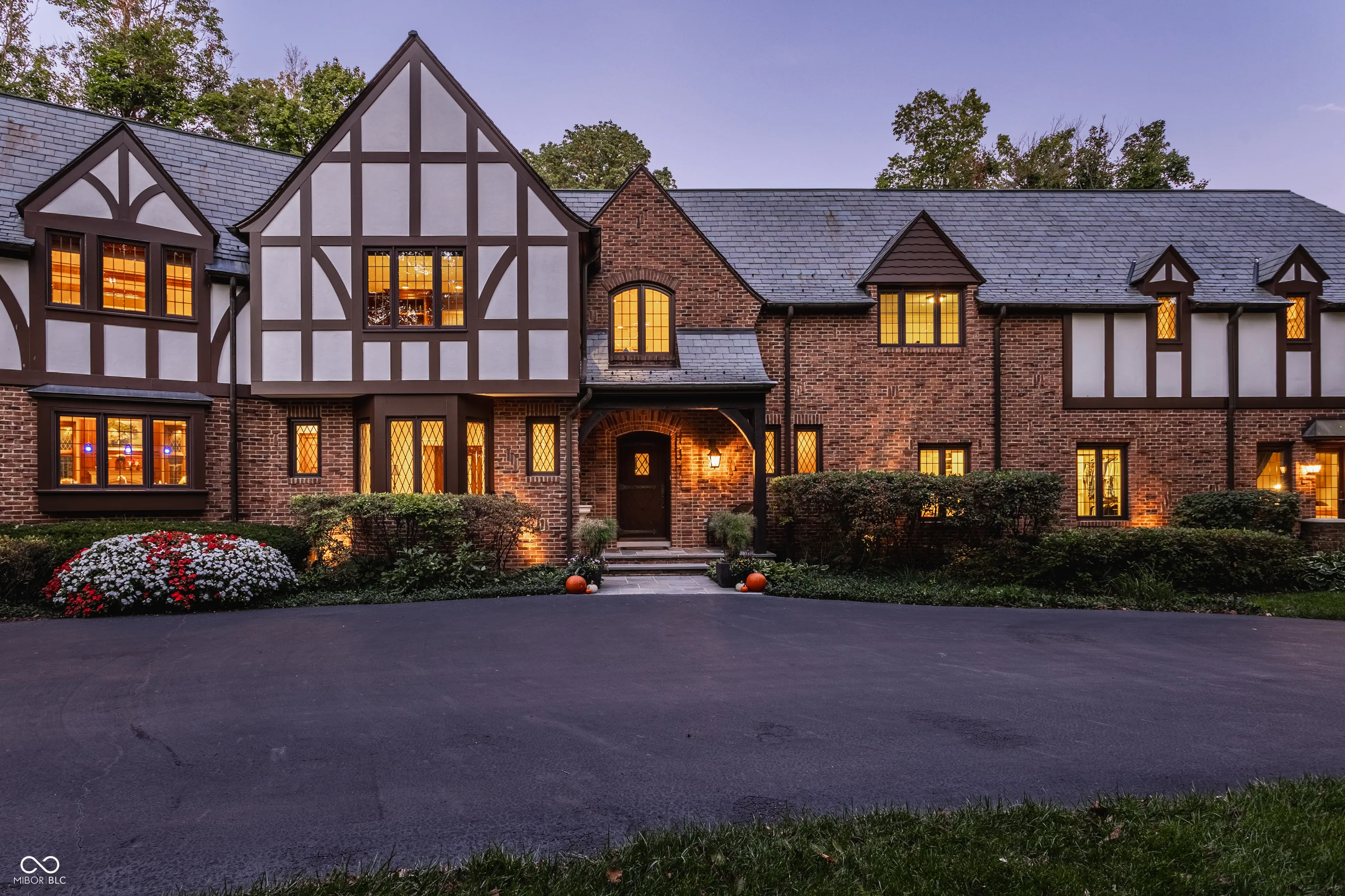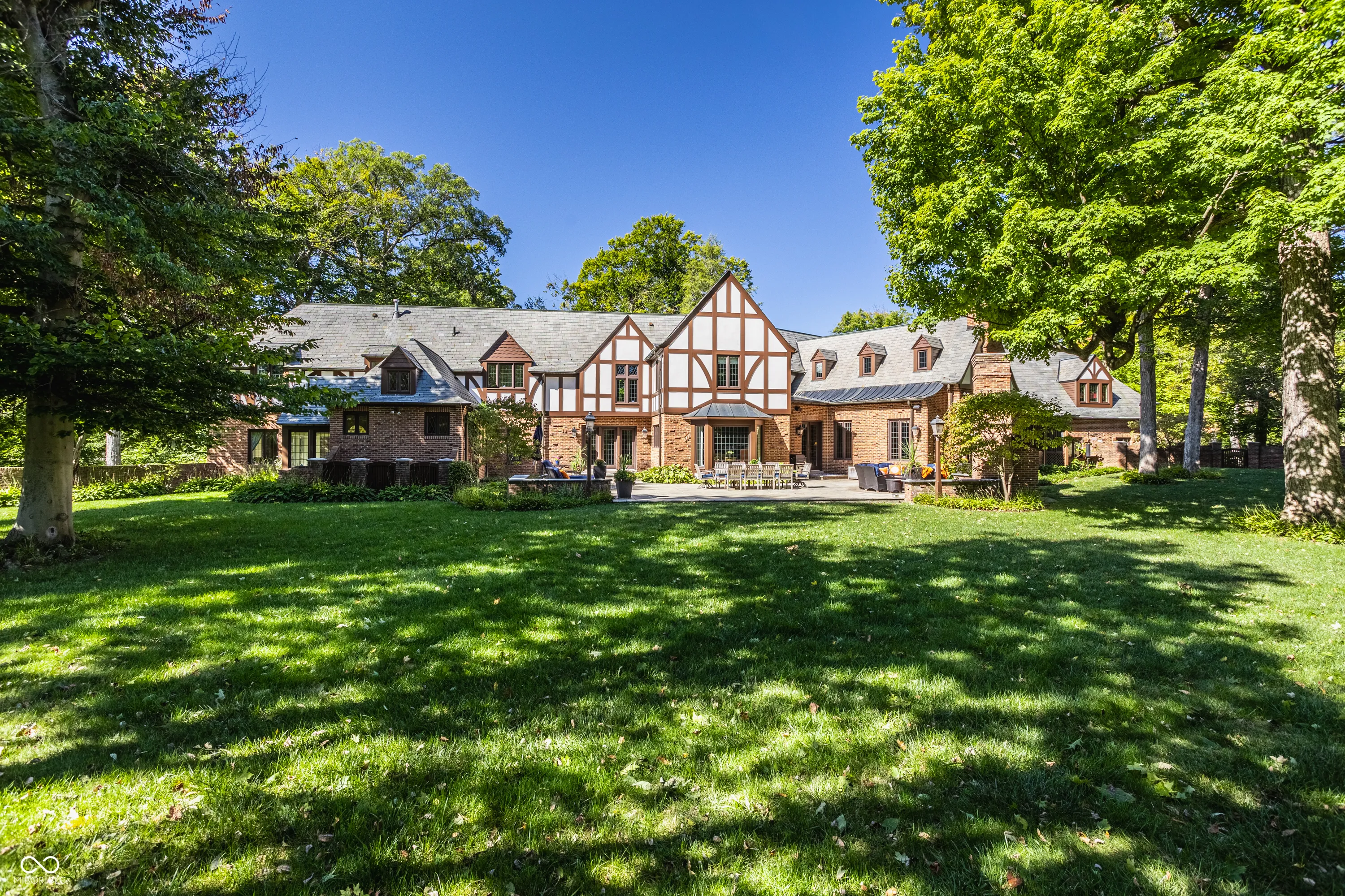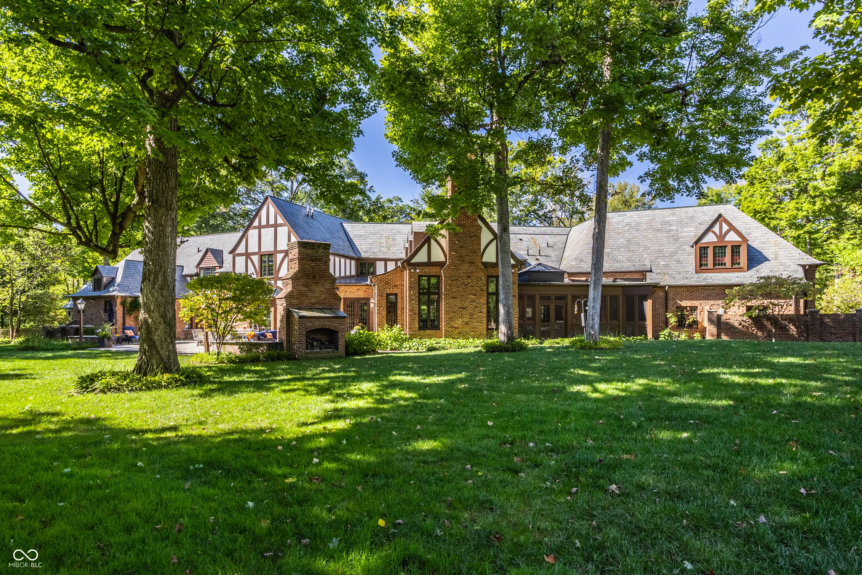Located in the heart of Williams Creek on North Pennsylvania Street, this Tudor revival overlooks a stunning 1.71-acre estate. The atmosphere begins as you approach the home, crossing over a gently flowing creek. This home was thoughtfully created and designed by RWA architects & Julie O’Brien Design, and crafted by the esteemed builder, Leonard Watson. From the moment you enter the home and are greeted with the dramatic spiral staircase, you are warmed by the attention to the smallest details. From lead windows, to intricate mill work and inlay hardwood flooring, each room offers a sense of place and purpose. A breathtaking two-story great room with coffered ceilings and clerestory windows is designed to create memories. The home emphasizes indoor living areas that flow gracefully to outdoor living spaces. The great room opens to both a spacious, screened-in porch with skylight, and the outdoor patio, where you can enjoy quiet evenings with family and friends around the outdoor fireplace. The main level primary bedroom is a secluded retreat, offering scenic views of the property. All second floor bedrooms, each with their own special qualities, offer their own private bathroom. There is also an upstairs playroom for all ages, with both basketball and an arts and crafts area. The lower level offers plenty of space to play pool or cozy up to a movie with friends. A four car garage with additional storage space, main and second floor laundry areas, main and second floor offices, generator, slate roof, and the list continues, all make this home a true once in a lifetime opportunity.