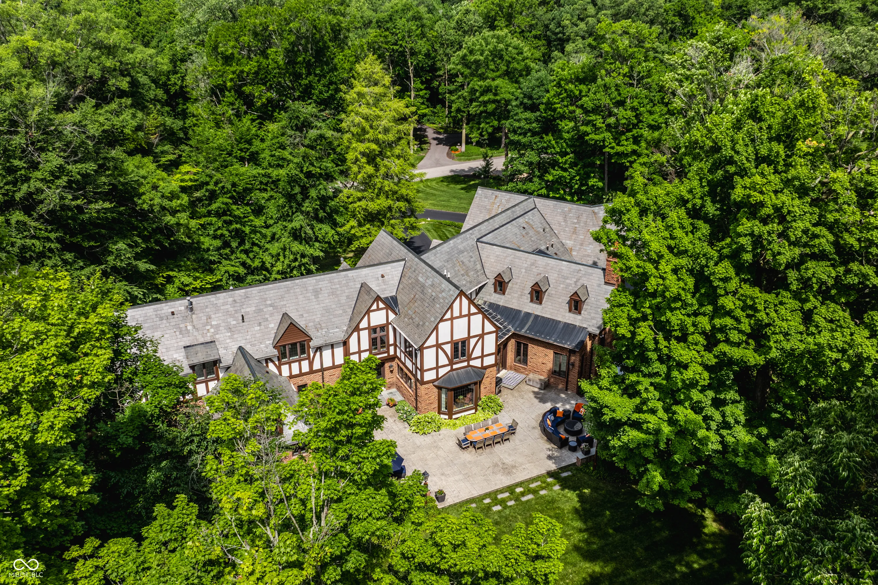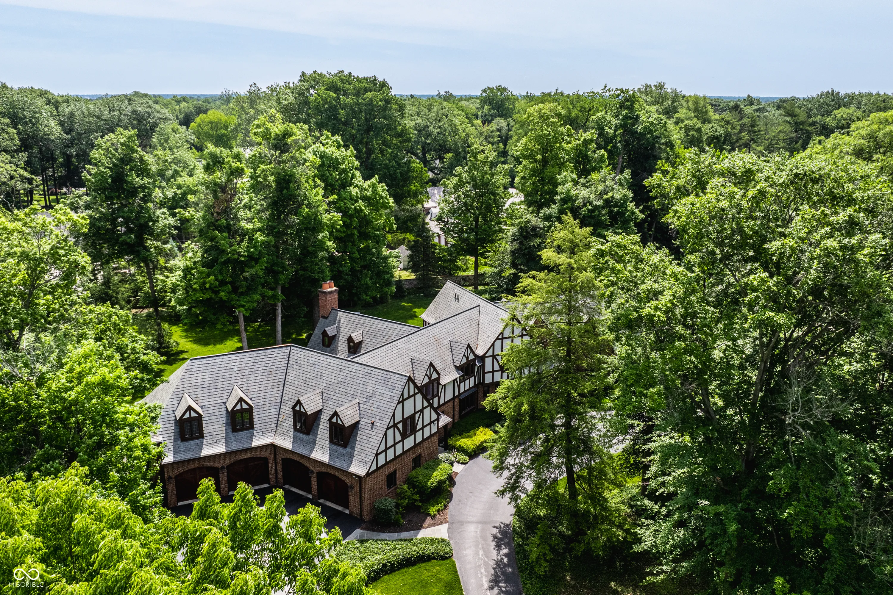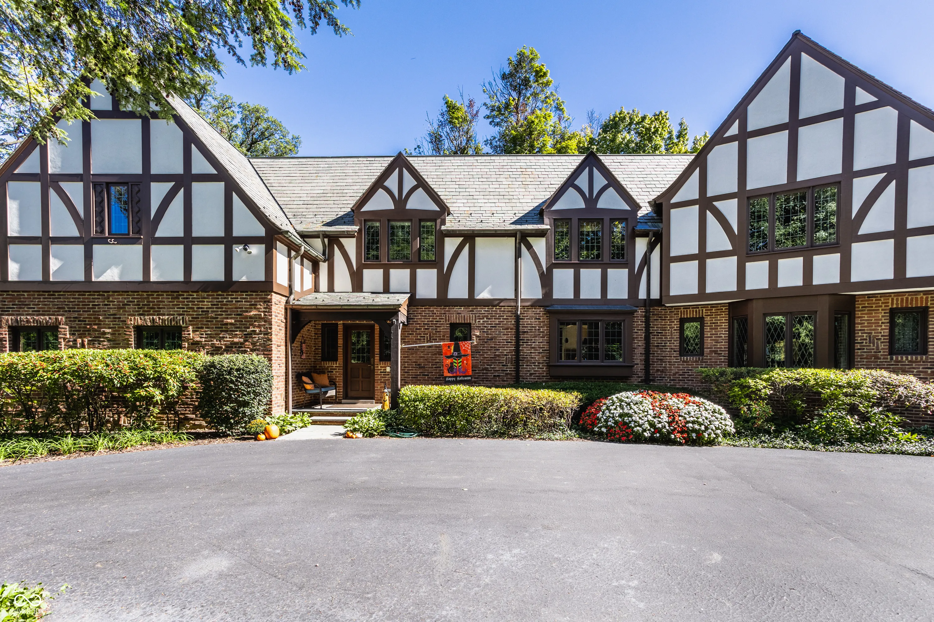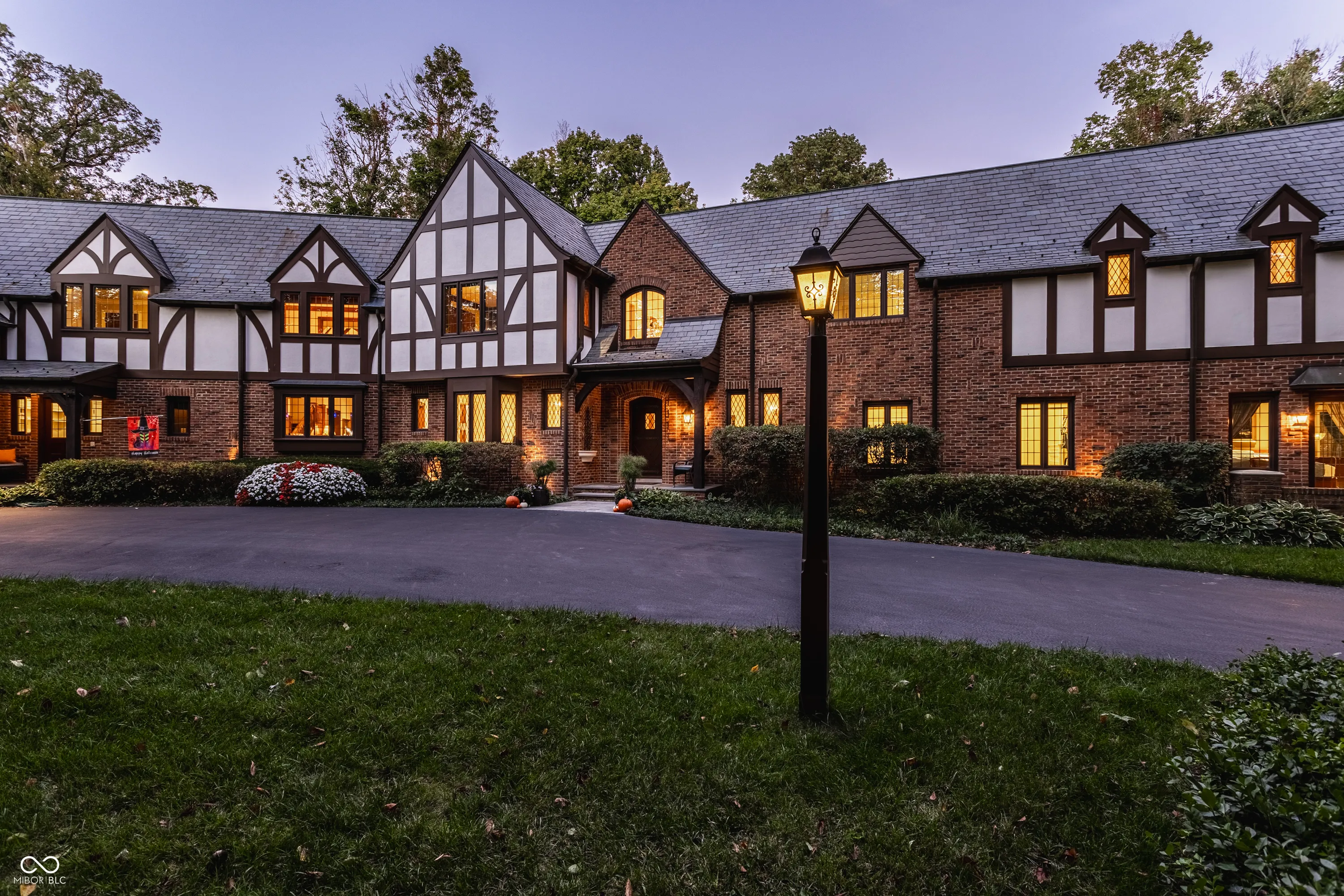Located in the heart of Williams Creek on North Pennsylvania Street, this Tudor revival overlooks a stunning 1.71-acre estate. The atmosphere begins as you approach the home, crossing over a gently flowing creek. This home was thoughtfully created and designed by RWA architects & Julie O’Brien Design, and crafted by the esteemed builder, Leonard Watson. From the moment you enter the home and are greeted with the dramatic spiral staircase, you are warmed by the attention to the smallest details. From lead windows, to intricate mill work and inlay hardwood flooring, each room offers a sense of place and purpose. A breathtaking two-story great room with coffered ceilings and clerestory windows is designed to create memories. The home emphasizes indoor living areas that flow gracefully to outdoor living spaces. The great room opens to both a spacious, screened-in porch with skylight, and the outdoor patio, where you can enjoy quiet evenings with family and friends around the outdoor fireplace. The main level primary bedroom is a secluded retreat, offering scenic views of the property. All second floor bedrooms, each with their own special qualities, offer their own private bathroom. There is also an upstairs playroom for all ages, with both basketball and an arts and crafts area. The lower level offers plenty of space to play pool or cozy up to a movie with friends. A four car garage with additional storage space, main and second floor laundry areas, main and second floor offices, generator, slate roof, and the list continues, all make this home a true once in a lifetime opportunity.