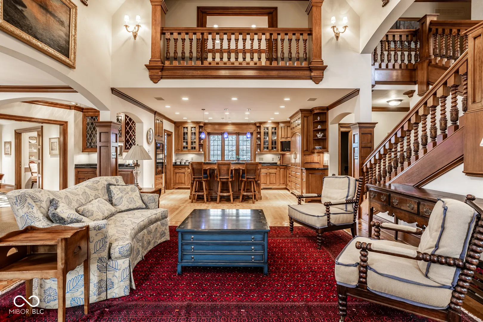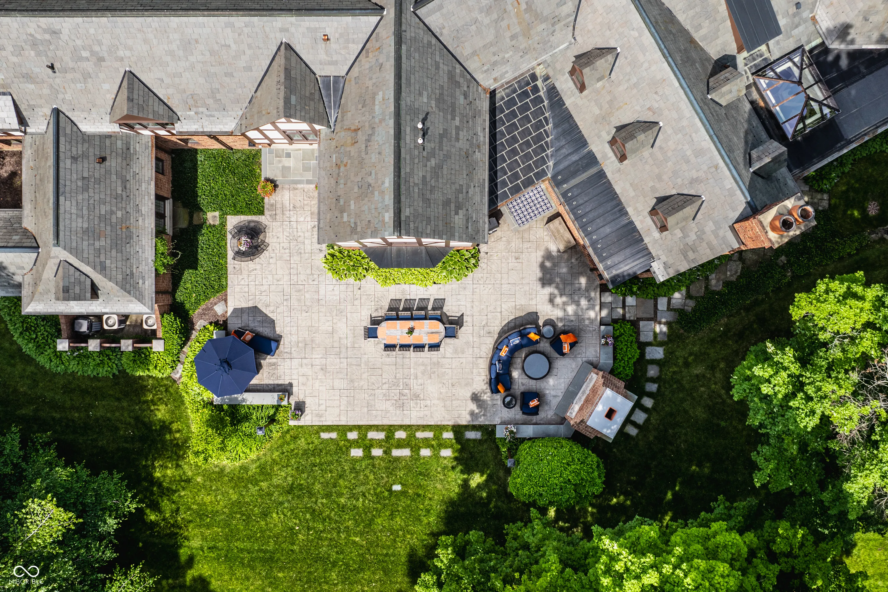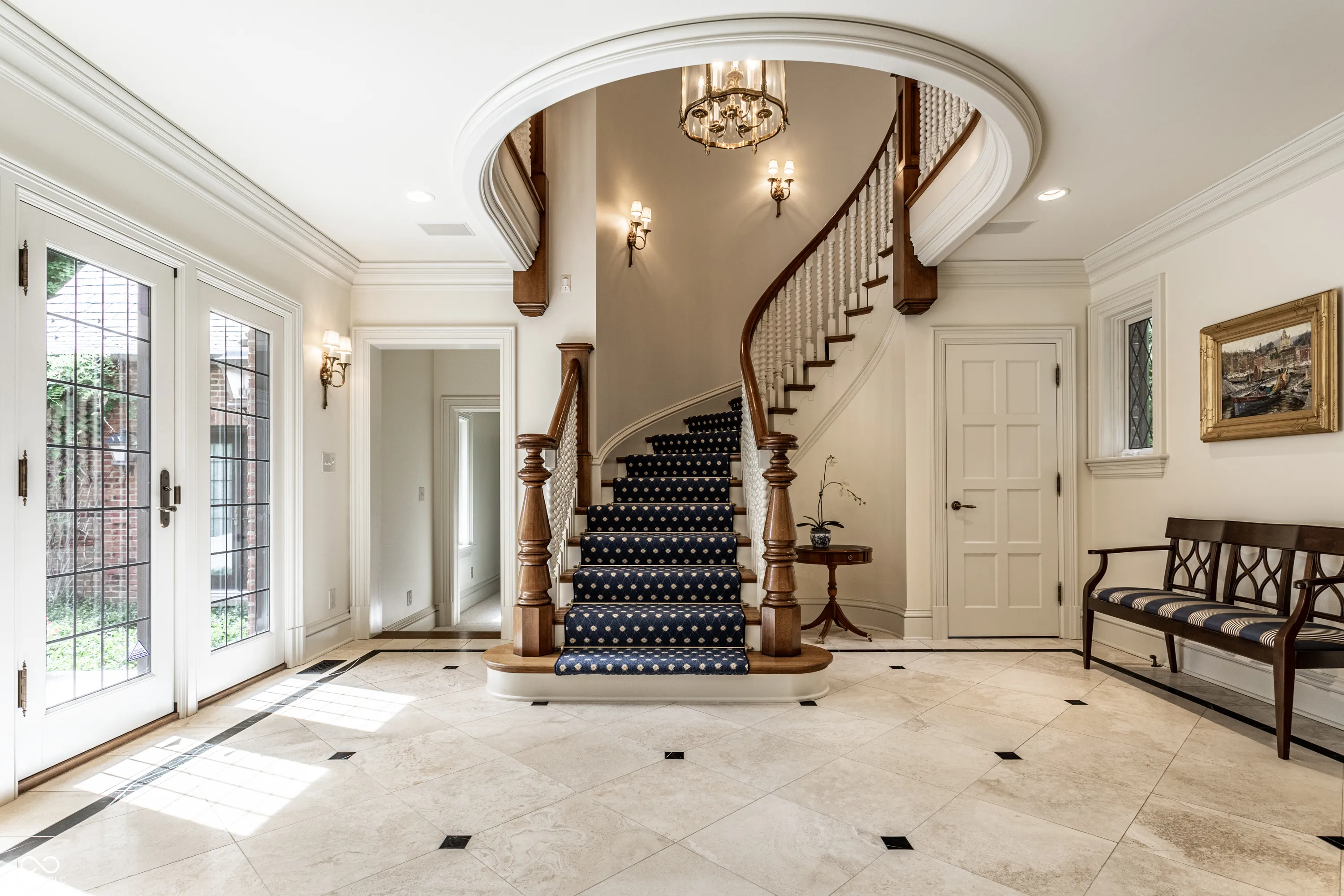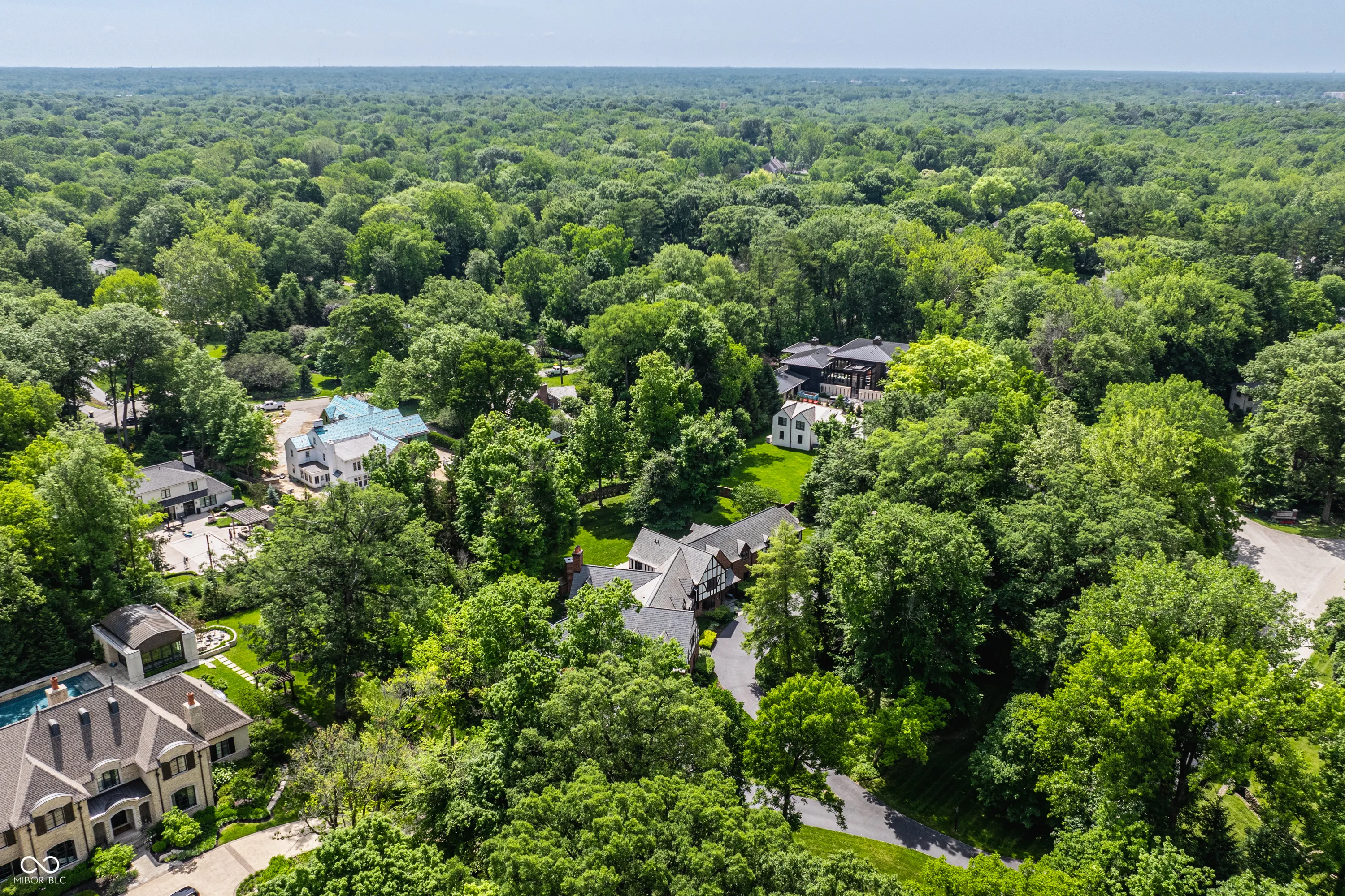 Located in the heart of Williams Creek on North Pennsylvania Street, this Tudor revival overlooks a stunning 1.71-acre estate. The atmosphere begins as you approach the home, crossing over a gently flowing creek. This home was thoughtfully created and designed by RWA architects & Julie O’Brien Design, and crafted by the esteemed builder, Leonard Watson. From the moment you enter the home and are greeted with the dramatic spiral staircase, you are warmed by the attention to the smallest details. From lead windows, to intricate mill work and inlay hardwood flooring, each room offers a sense of place and purpose. A breathtaking two-story great room with coffered ceilings and clerestory windows is designed to create memories. The home emphasizes indoor living areas that flow gracefully to outdoor living spaces. The great room opens to both a spacious, screened-in porch with skylight, and the outdoor patio, where you can enjoy quiet evenings with family and friends around the outdoor fireplace. The main level primary bedroom is a secluded retreat, offering scenic views of the property. All second floor bedrooms, each with their own special qualities, offer their own private bathroom. There is also an upstairs playroom for all ages, with both basketball and an arts and crafts area. The lower level offers plenty of space to play pool or cozy up to a movie with friends. A four car garage with additional storage space, main and second floor laundry areas, main and second floor offices, generator, slate roof, and the list continues, all make this home a true once in a lifetime opportunity.