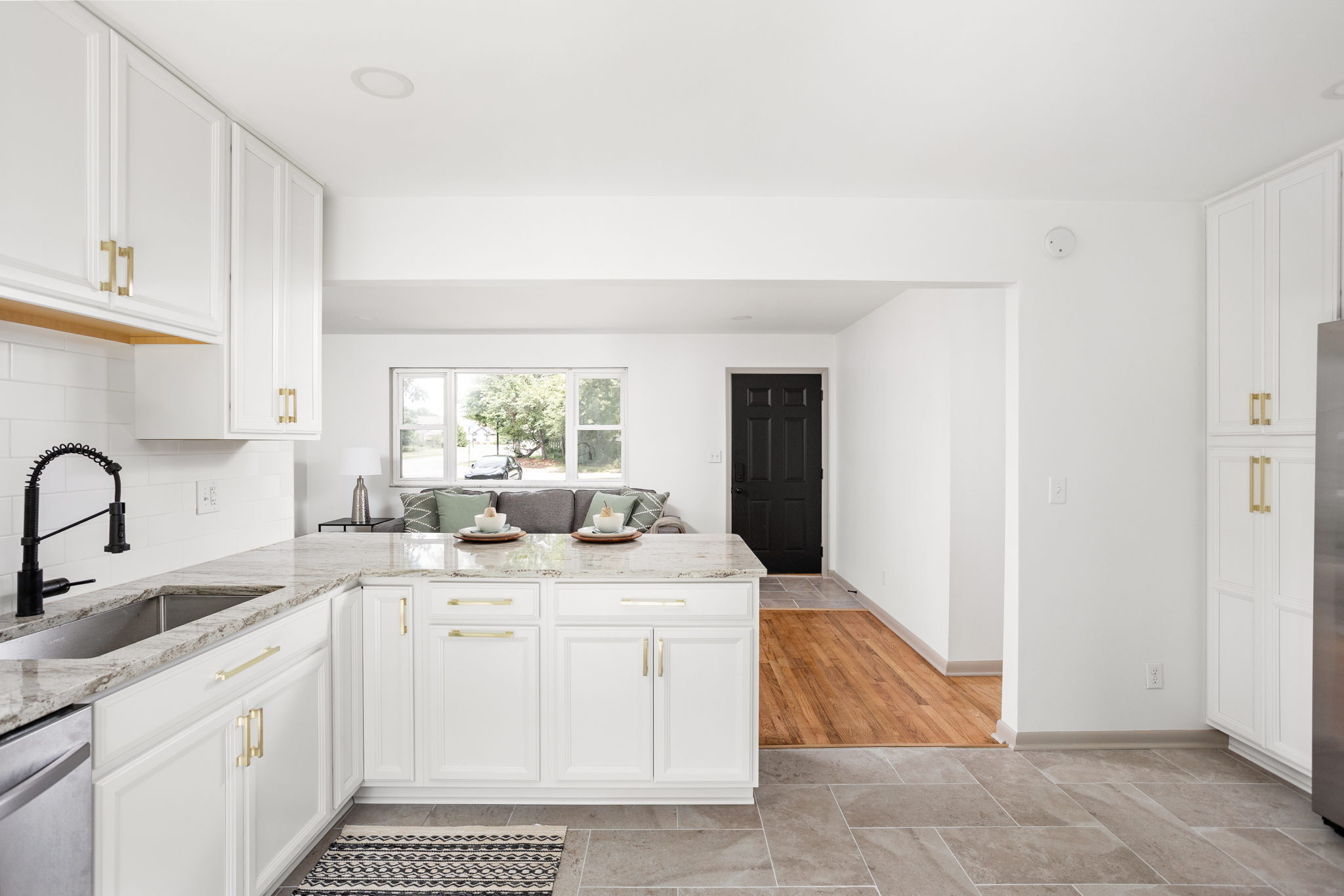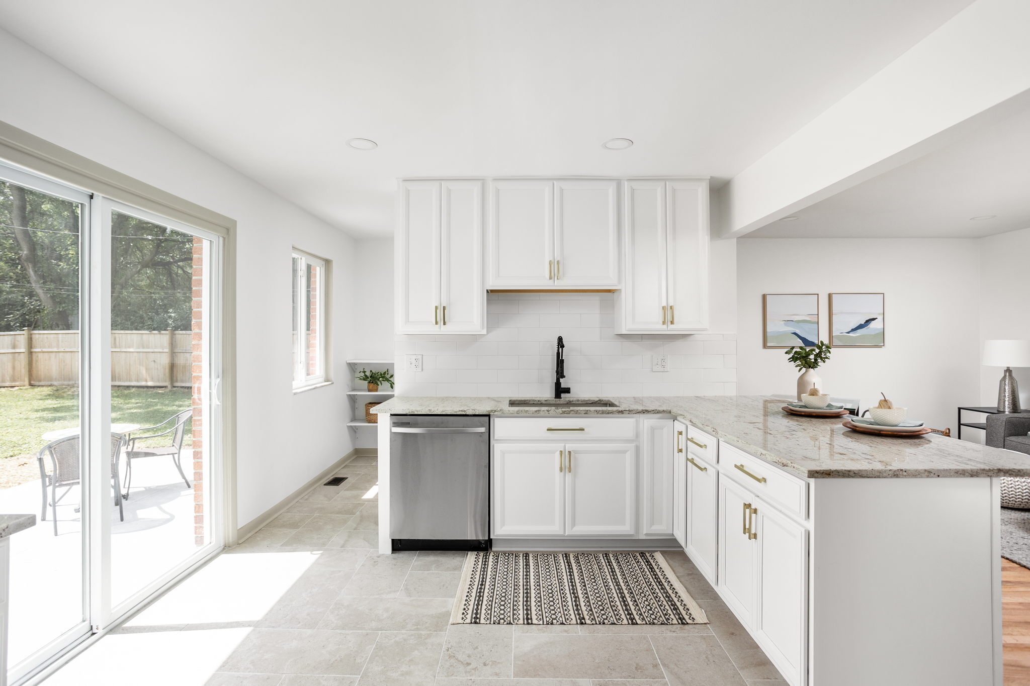 Completely remodeled ranch nestled on a large lot in Washington Township! Natural light flows through the front picture window & back patio doors. Open and airy living space features refinished hardwood flooring, recessed lighting & tasteful finishes. Designer kitchen is the heart of the home with expansive granite counters, breakfast bar, custom tile, floor to ceiling cabinetry & accent shelving. Full stainless steel appliance package plus washer/dryer included! Hardwoods flow to the opposite wing of the house with 3 sizeable bedrooms. Primary suite has walk-in closet & gorgeous ensuite bath with double vanity. Main level mud/laundry room leads to attached garage. Enjoy evenings on the back patio in your oversized & fully fenced backyard! 2 mins from Juan Solomon Park, 5 mins from Holliday Park, 8 mins from Newfields & 9 mins from Butler.