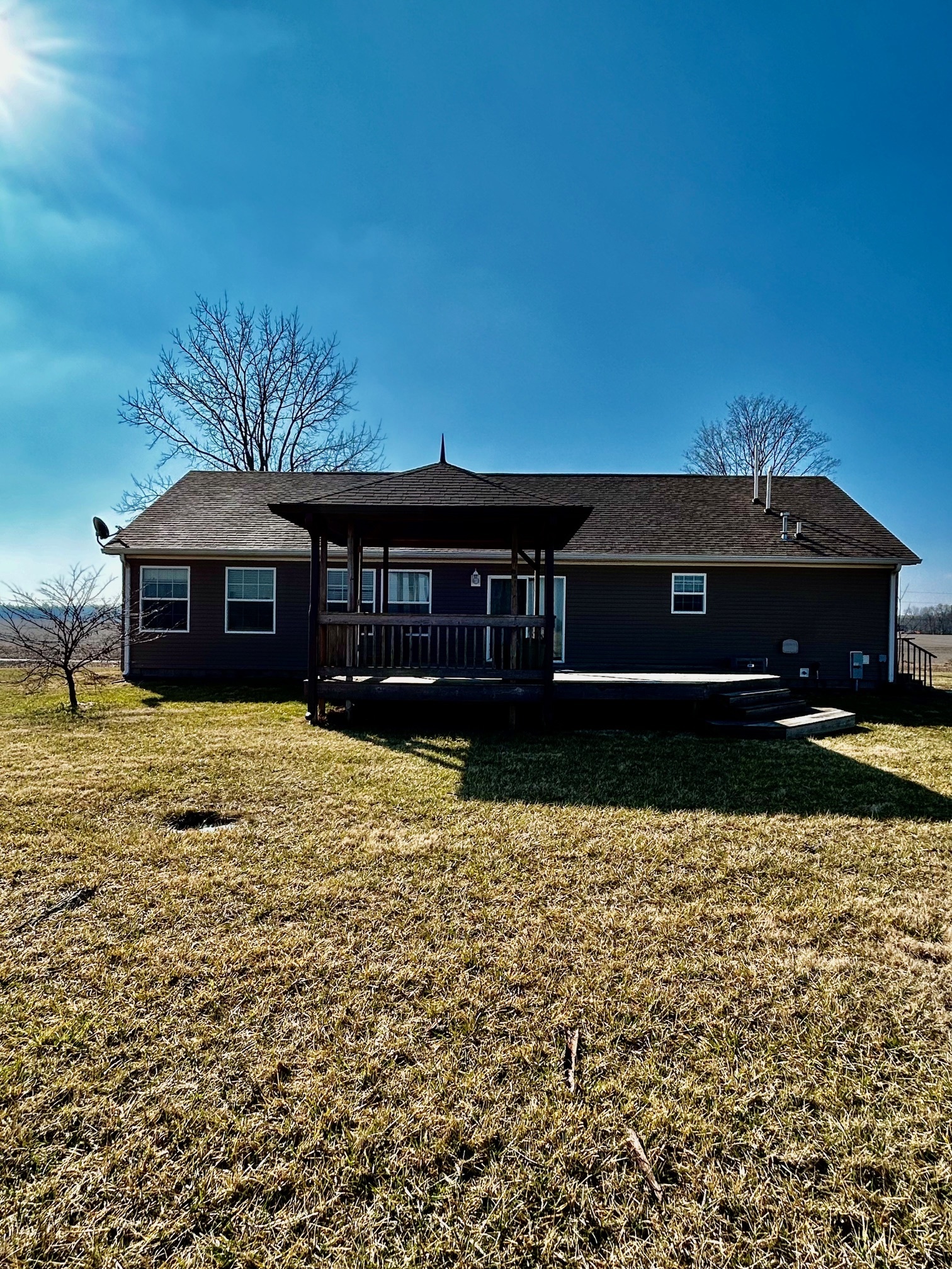 Here’s your chance to own a slice of the country, but still be close to town too. Come see this 1800 sq ft, 3 Bed, 2 Bath home sitting on 5 acres surrounded by all the perks of country life! Outside, there’s plenty of space for farming (~2.5 acres tillable), raising animals, gardening or entertaining. The 60×30 Pole Barn w/ electric (and water nearby) has room to park 2+ cars on the concrete portion of the floor, leaving the gravel flooring for tinkering on vehicles in your workshop or for tons of additional storage. Inside the home, the Living Room is the central point, connecting to the open Kitchen & Dining Room. A Breakfast Bar/Island with the sink and dishwasher sits in the middle of the Kitchen, surrounded by gorgeous wood cabinets and ample countertop space. Just off the Dining Room is the Office, which could be used as a 4th Bedroom, if needed. In the Primary Suite, you’ll find a huge walk-in closet, double sinks, more wood cabinetry for tons of storage space, and a shower/tub combo. On the other side of the home are Beds 2 & 3, with the 2nd Full Bath in between. Additionally, the Laundry Room has wood cabinets, countertop space, a sink, and the utilities are contained in the closet. There’s plenty of outdoor space to enjoy the stunning views (just through the sliding doors of the Dining Room) on the 519 sq ft wood deck with covered pergola overlooking the peaceful scenery and wildlife surrounding this property. Tillable acreage is located both to the North and East of the yard. NEW Roof & HVAC installed in 2023.