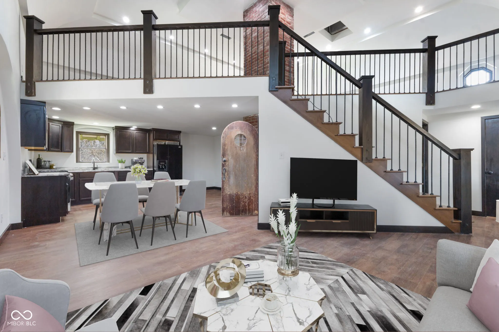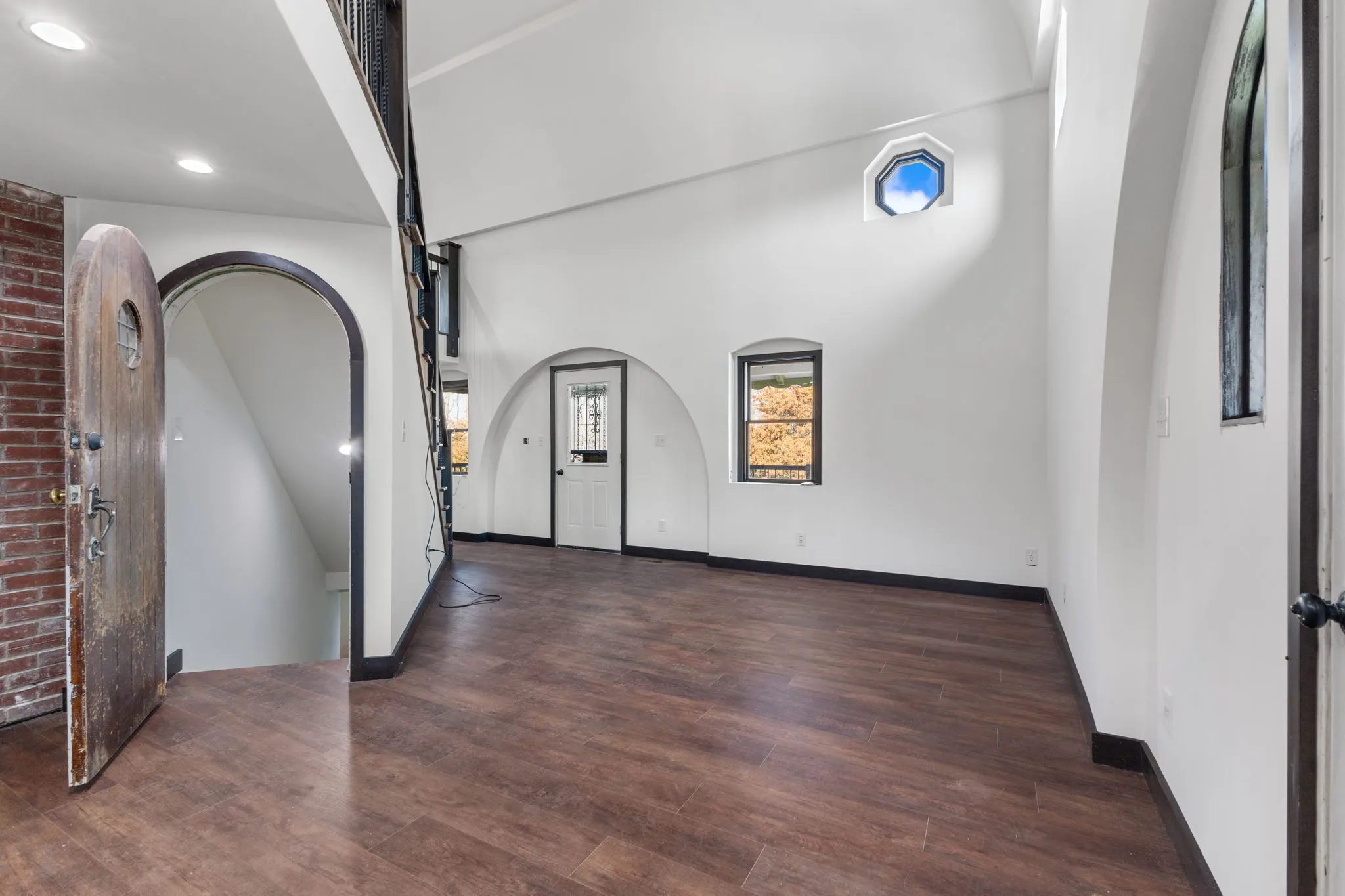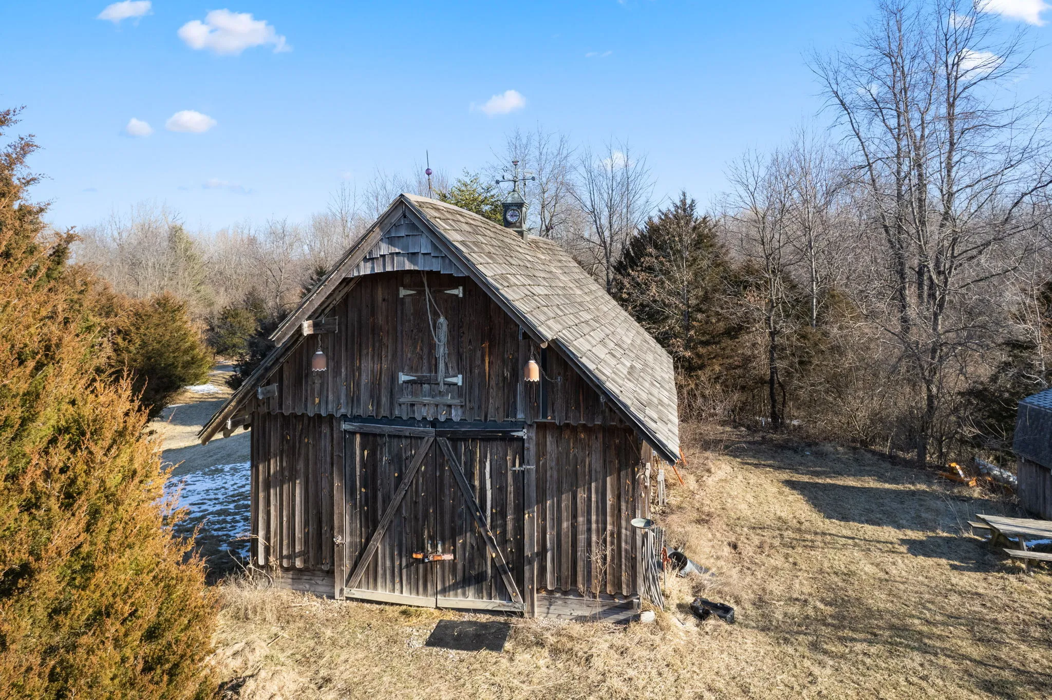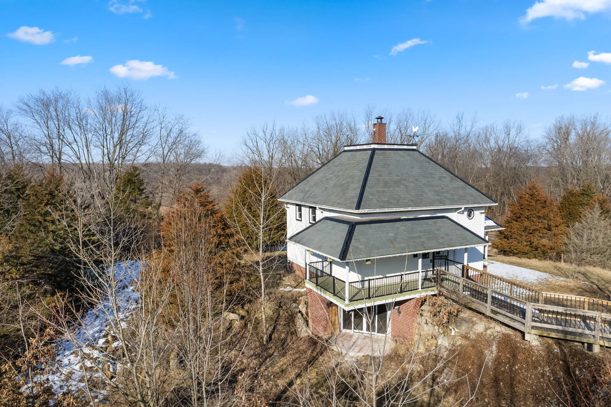 One-of-a-kind home that comes with a slate roof, high domed ceiling surrounds large spacious loft, exposed industrial beam as well as striking views. Large walk-in shower with beautiful 7′ soaker tub. All fixtures in bathroom are copper. All new LVP, and all new wood trim arched antique doors on main level make the home unique. Bedroom on the main floor. The kitchen is open with new solid wood cabinets, new countertops, refrigerator, stove, black appliances. Large, finished basement with a full bath and laundry room. The basement can be used as a bedroom that sliding glass doors that opens to a brick patio. Large Porch that overlooks Croppy Lake and the beautiful land. Large barn with awesome spacious loft area, concrete floors and electric. Barn has a unique custom door with a puzzle lock functionality.