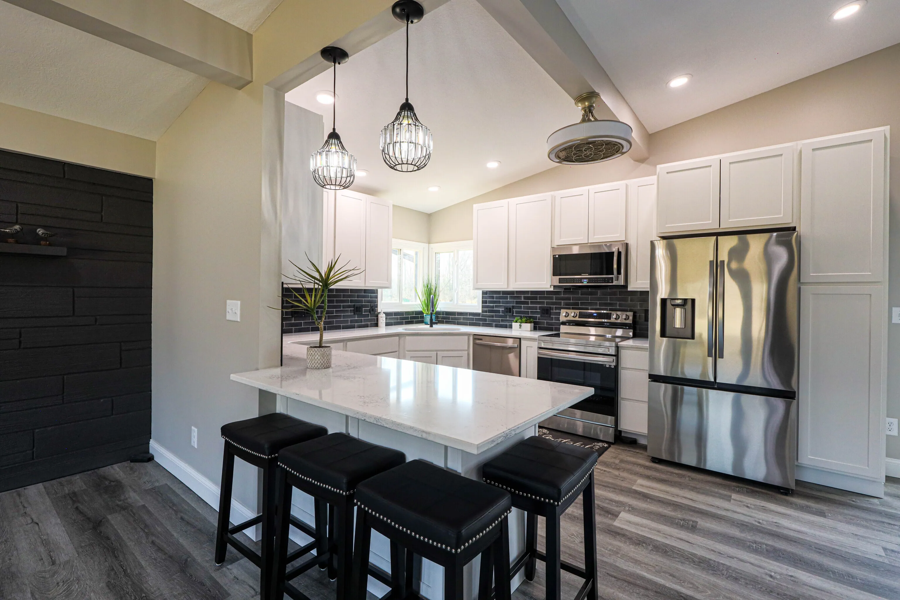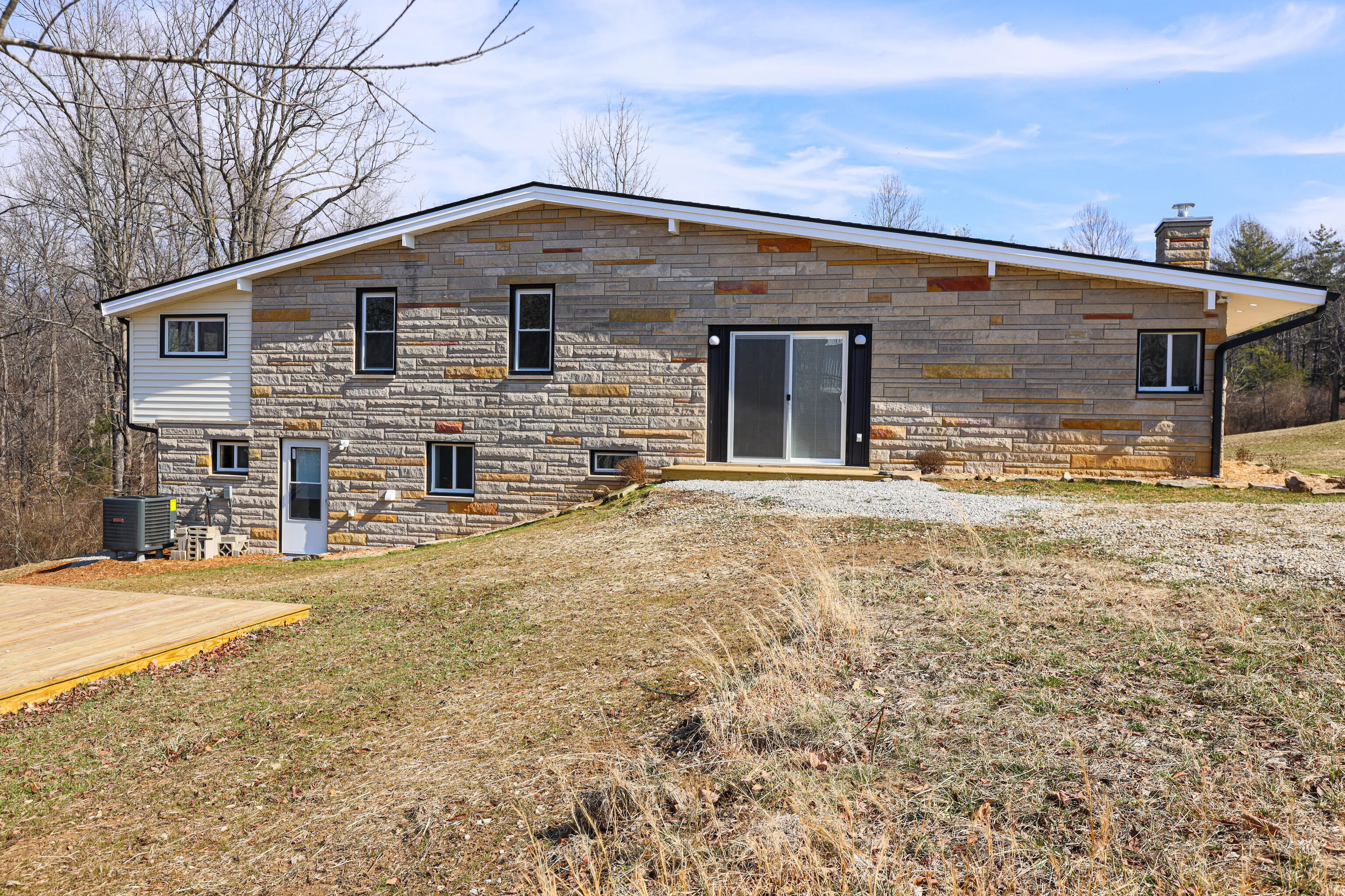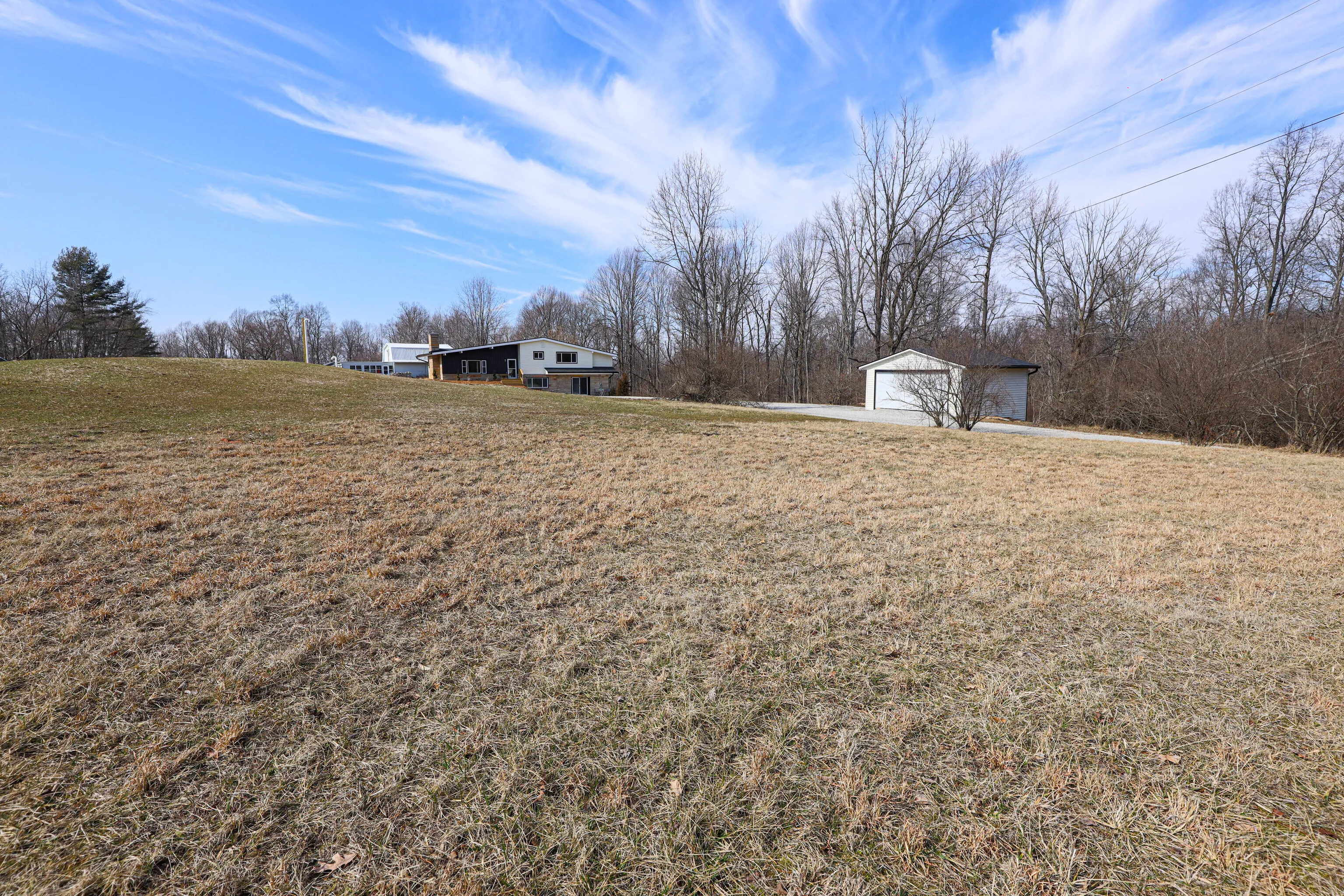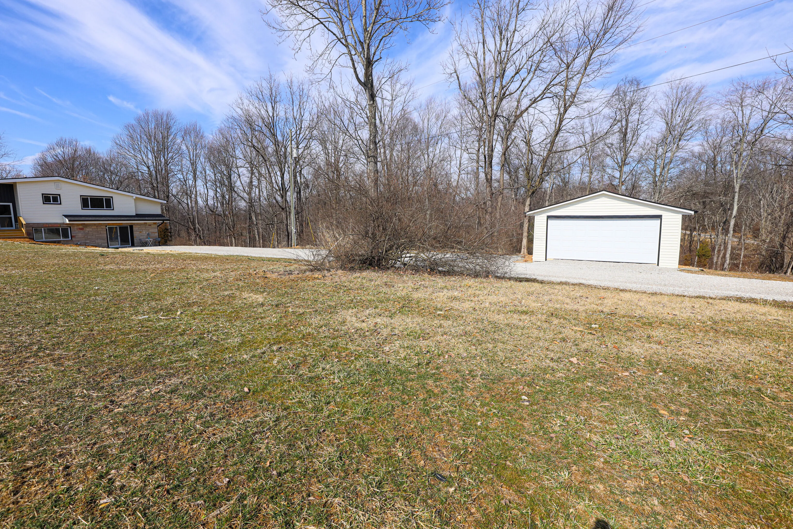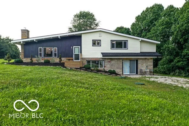 Welcome to your dream home in beautiful Brown County! This stunning mid-century modern masterpiece sits on 1.85 acres, offering 2759 sq ft of luxurious living space. With 4 spacious bedrooms, an office, and 2 1/2 baths, there’s ample room for both work and relaxation. Completely remodeled from top to bottom, inside and out, there’s nothing left for you to do but come home and relax. The open-concept layout is bathed in natural light, showcasing high-end finishes throughout. The gorgeous custom kitchen is a chef’s delight, and all bathrooms have been beautifully updated. Cozy up to the new fireplace on those cool nights, and enjoy the convenience of smart features including a Nest thermostat and color-changing lights throughout the entire home. The huge yard would be great for another garage, your garden or the greenhouse you’ve always wanted or just a stroll in the country watching the big blue sky and listening to the birds. The 2-car detached garage provides plenty of space for your vehicles and storage needs. Low maintenance with upgrades that include all new HVAC system, electrical, plumbing, roof, windows, doors, siding, gutters, premium foam insulation plus a new Presby septic system. So many extras! Work from home with Fiber Optic. Check out the Features List! Broker owned. Close to shopping & music in Nashville & easy access to I65/Columbus