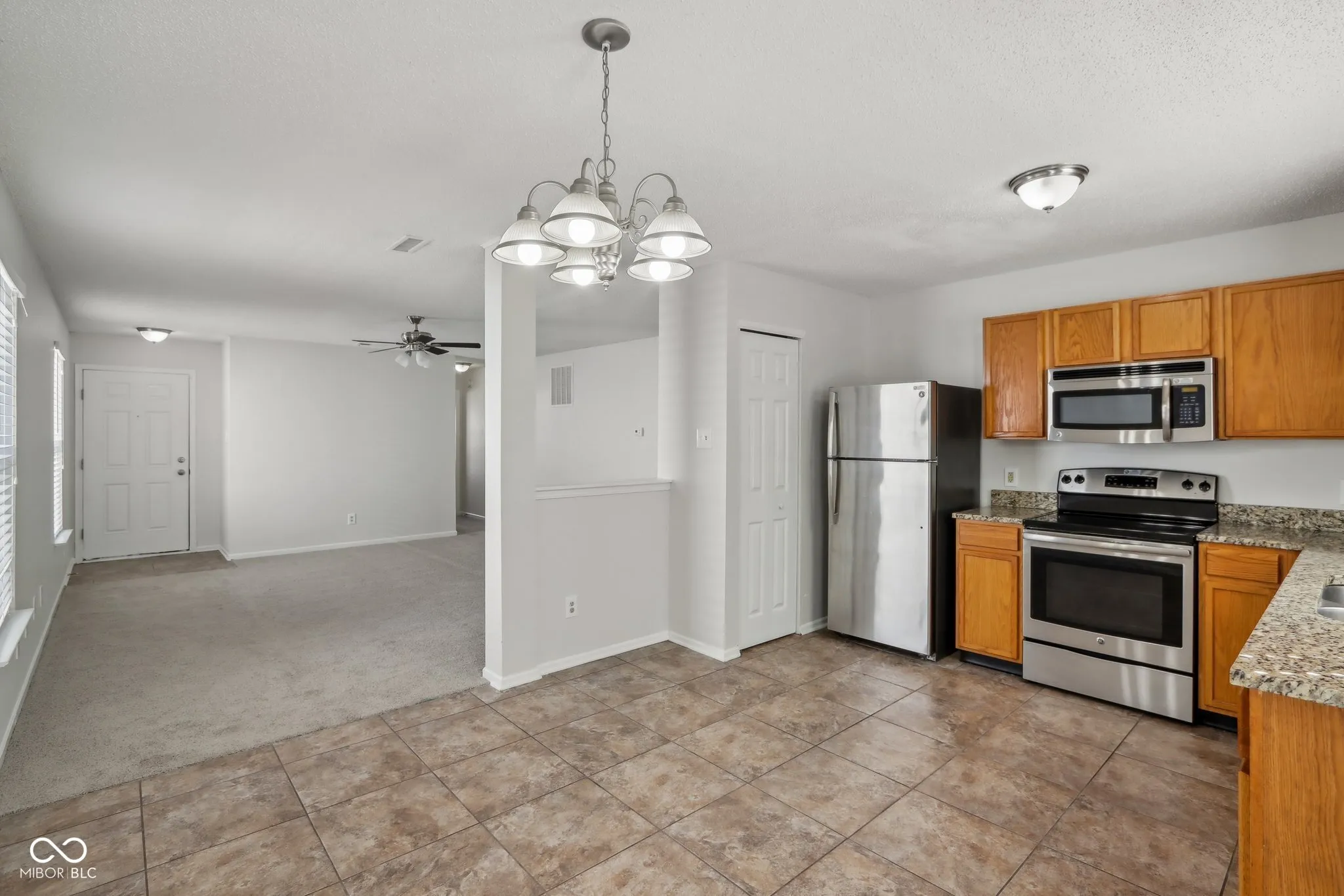 Welcome to this inviting 3-bedroom home in the Chapel Hill area of Indianapolis! This open floor plan single-story residence features 3 bedrooms, 2 full bathrooms, a primary bedroom with a walk-in closet and ensuite, and a separated front bedroom for added privacy. The kitchen is equipped with stainless steel appliances, and the centrally located laundry room adds convenience. Step outside to enjoy a quiet patio overlooking a peaceful wooded area. Located just off Washington Street, near the Indianapolis International Airport, with easy access to shopping and dining at the Shops at Perry Crossing.