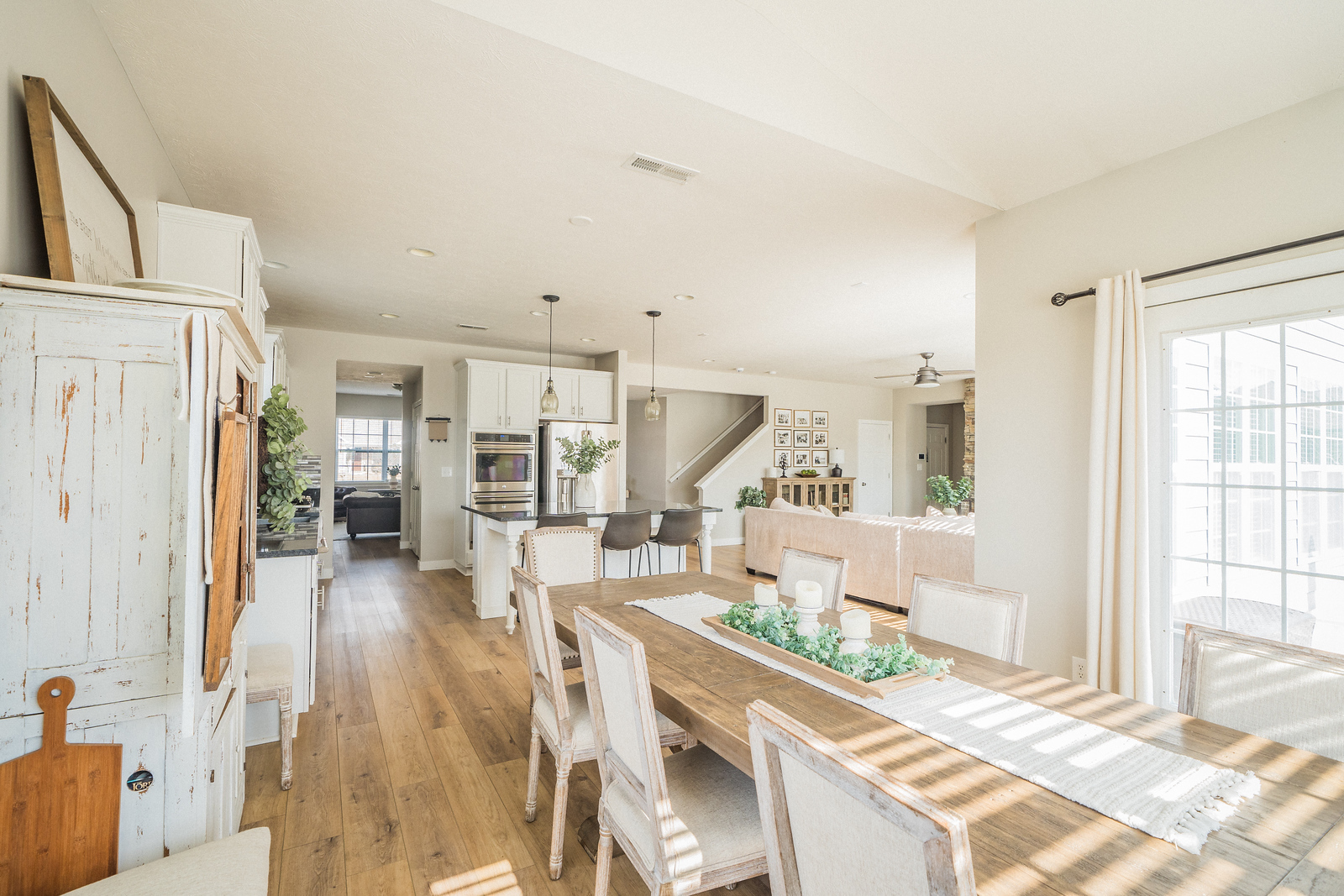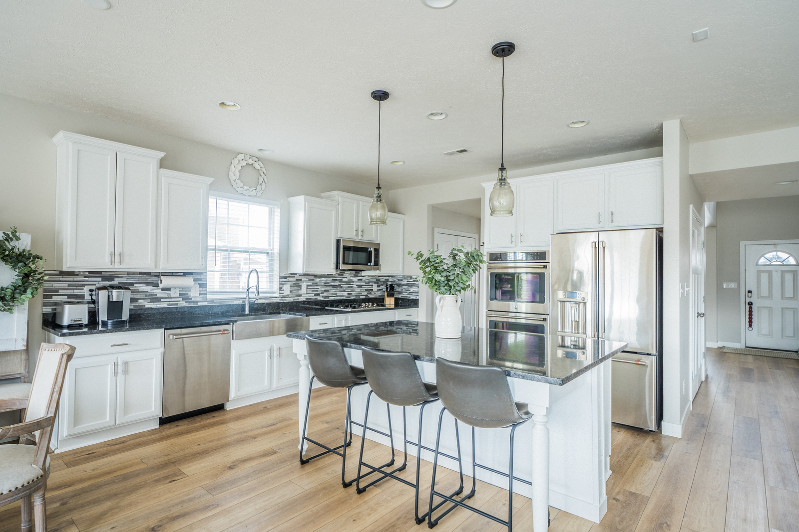 Check out this stunning home! Completely turnkey and over 3800 square feet of living space sure to fall in love with! Spacious entryway to greet your guests. Living room is a fantastic spot to relax and rewind. Living room could also be used as a formal dining room if preferred. Open concept floor plan provides a wonderful home to entertain. Starting with the gourmet kitchen will accommodate any home chef with GE Cafe’ stainless steel appliances, gorgeous white, staggered and soft-close cabinets and granite counters. Center island provides not only ample storage, but a great place for casual meals, just hanging out or an area for prepping and serving. Dining area is spacious with tons of natural light. Dining area could be used as a sunroom if preferred. Kitchen and dining room are open to family room that’s a perfect spot to enjoy the gas fireplace on chilly nights and more than plenty of space for entertaining, too. Main level bedroom could be for guests/in-laws with an adjacent full bath that can be accessed through the bedroom or just off the family room. Upper level provides a loft area perfect for movie night and just relaxing. Primary bedroom is spacious with a walk-in closet, 2nd closet that could be for shoes, linens, etc and an en-suite bath. Primary bath features beautiful all updated double-sink vanity, glass walk-in shower, separate tub is an Air tub and beautiful fixtures. All secondary bedrooms on the upper level are all spacious. One has an en-suite bathroom. Three of the secondary bedrooms have walk-in closets. Hall bath has double sink vanity and shower/tub combo. Laundry room provides lots of storage with cabinetry and hanging space. Checkout the wrougt-iron fenced backyard with 20×14 concrete patio. You’ll want to take advantage of the warmer weather in your outdoor space! Many upgrades including all new flooring throughout (luxury vinyl and carpet), high-end appliances, newer tankless water heater and more. Don’t miss wont last!