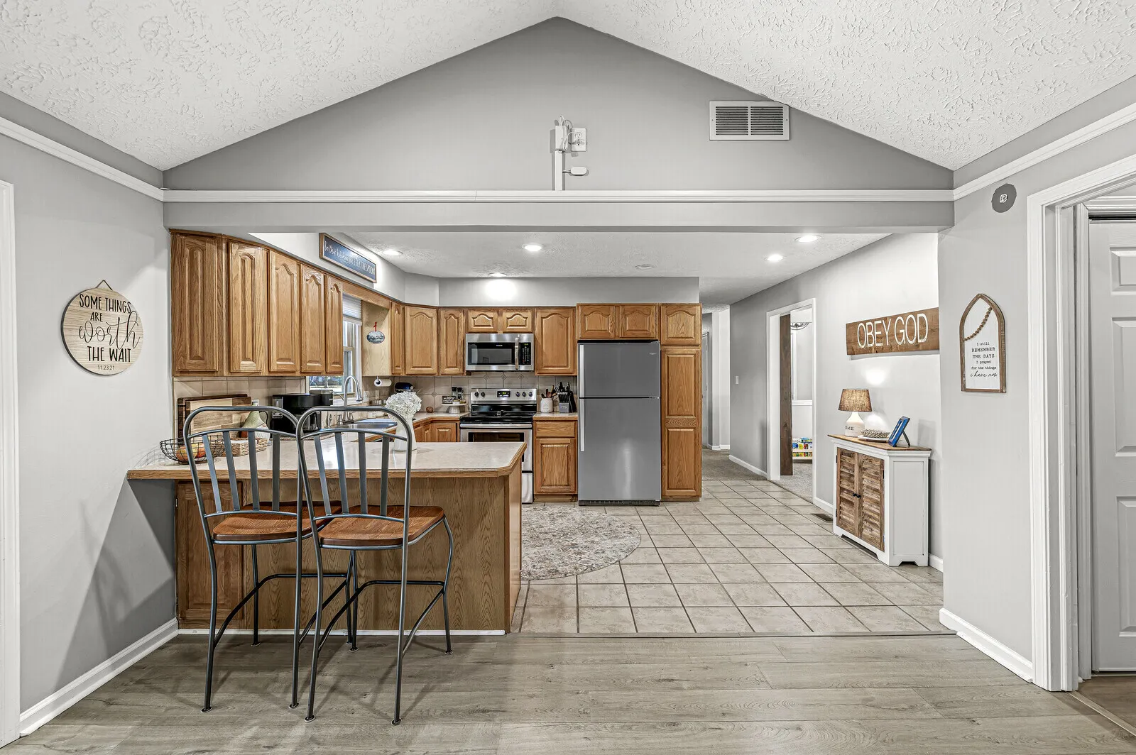 Cozy ranch home in New Palestine,In. From the moment you enter this lovely home you’ll feel the warm and inviting atmosphere that draws you in. Inside the front entrance you have a view of the fabulous interior that recently went through a transformation. Off the spacious kitchen you find a large living room with stone fireplace to keep you warm on those cold winter nights, If you wanting the feel of tranquility then be sure to take a few minutes in the family room, which features a vaulted ceiling, many windows that provide natural light and inviting view of the backyard. This home has so many amenities that you need to experience it yourself to appreciate all it has to offer.