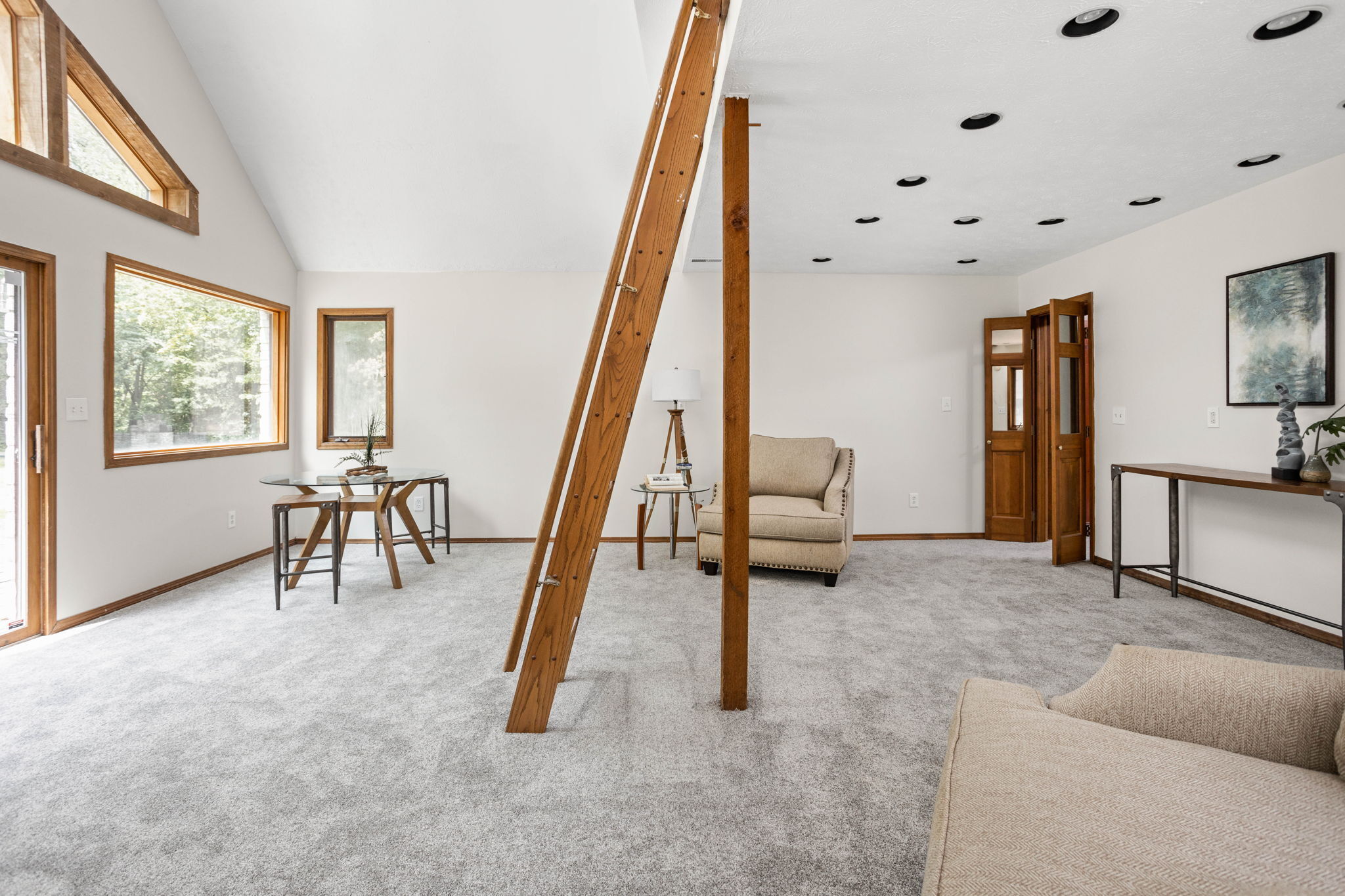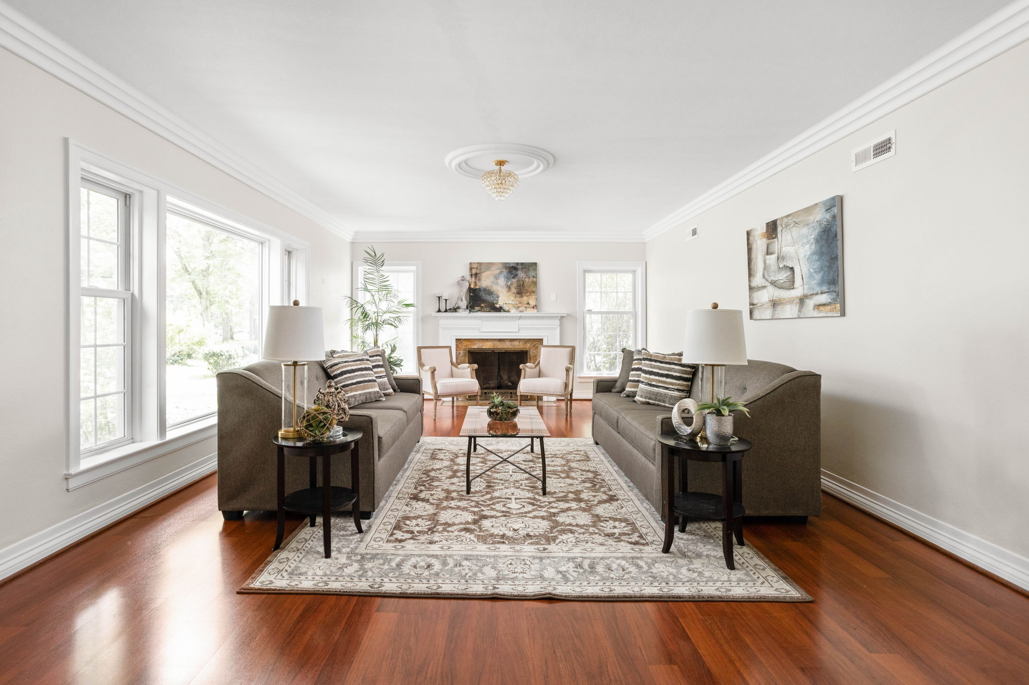 This stunning Meridian Hills home has been thoughtfully updated to offer both modern elegance and comfortable living. As you step inside, you’ll notice fresh paint and beautifully refinished hardwood floors throughout. The heart of this home is the updated kitchen, featuring top-of-the-line Jenn-Air Floating Glass Appliances, granite countertops, soft-close drawers, & 2 large pantries. The living room boasts a stunning marble gas fireplace creating a cozy ambiance for family gatherings or entertaining guests. On the main floor, you’ll find 2 bedroom including the primary bedroom with its own ensuite. Upstairs is 2 additional bedrooms & full bath. Stepping outside, you’ll be delighted by the expansive 1.49-acre lot, large deck & mature trees