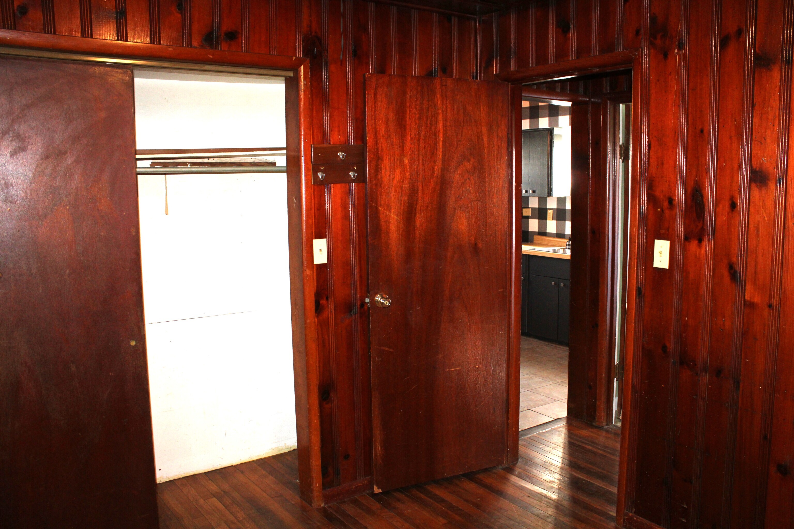 Well maintained 2 Bedroom, 1 bath home with large 2-car detached garage. Great starter home or rental. Hardwood floors, knotty pine walls, & built-in cabinets! Plenty of parking available on large asphalt drive.