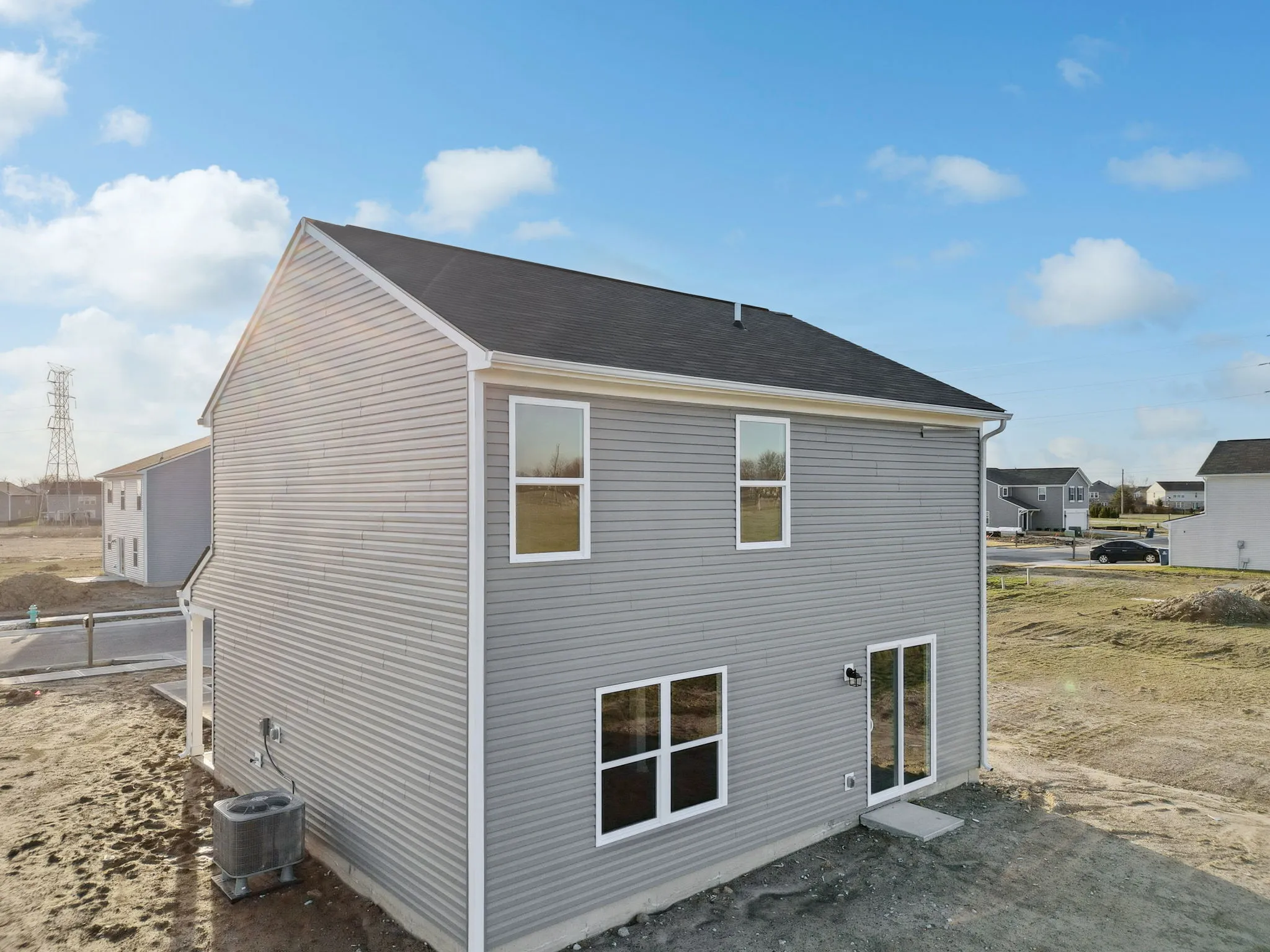 Welcome to this stunning new construction! Nestled in a tranquil neighborhood, this magnificent two-story home boasts modern design and exquisite craftsmanship. As you step through the front door, you’re greeted by an inviting ambiance that seamlessly blends style and functionality. The spacious open floor plan creates an airy atmosphere, accentuated by abundant natural light filtering through large windows. The heart of the home is the kitchen featuring a sleek center island, adorned with laminate countertops and ample storage. It’s the perfect space for culinary enthusiasts and gatherings with loved ones. Top-of-the-line stainless steel appliances complement the contemporary aesthetic. Adjacent to the kitchen is a versatile living area, ideal for entertaining or cozy evenings. The dining area offers a picturesque view of the landscaped backyard through sliding glass doors, creating a seamless indoor-outdoor experience. Ascending the staircase, you’ll discover the serene sleeping quarters. The primary suite is a luxurious retreat, complete with a spa-like ensuite bath boasting a stand alone shower, and a walk-in closet. Two additional well-appointed bedrooms share a stylishly designed full bath, perfect for family or guests. Convenience meets functionality with a dedicated laundry room on the upper level, eliminating the hassle of carrying loads up and down stairs. Outside, the property features a professionally landscaped yard, providing a private oasis for relaxation and outdoor activities. The attached two-car garage ensures ample space for parking and storage. This home epitomizes contemporary living, offering comfort, elegance, and thoughtful design at every turn. With its prime location and modern amenities, it’s an exceptional opportunity to experience a lifestyle of luxury and convenience. Don’t miss the chance to make this your new haven!