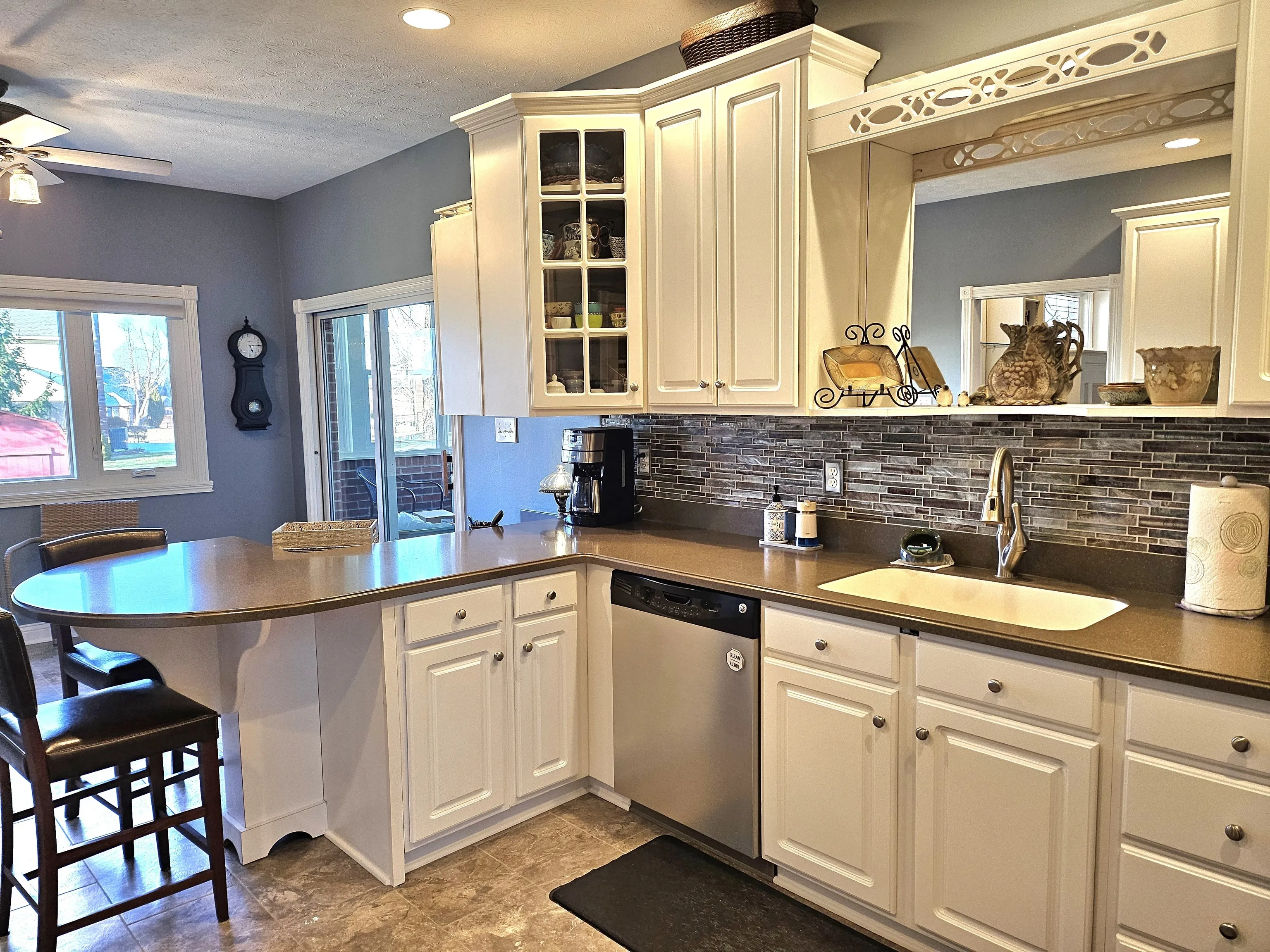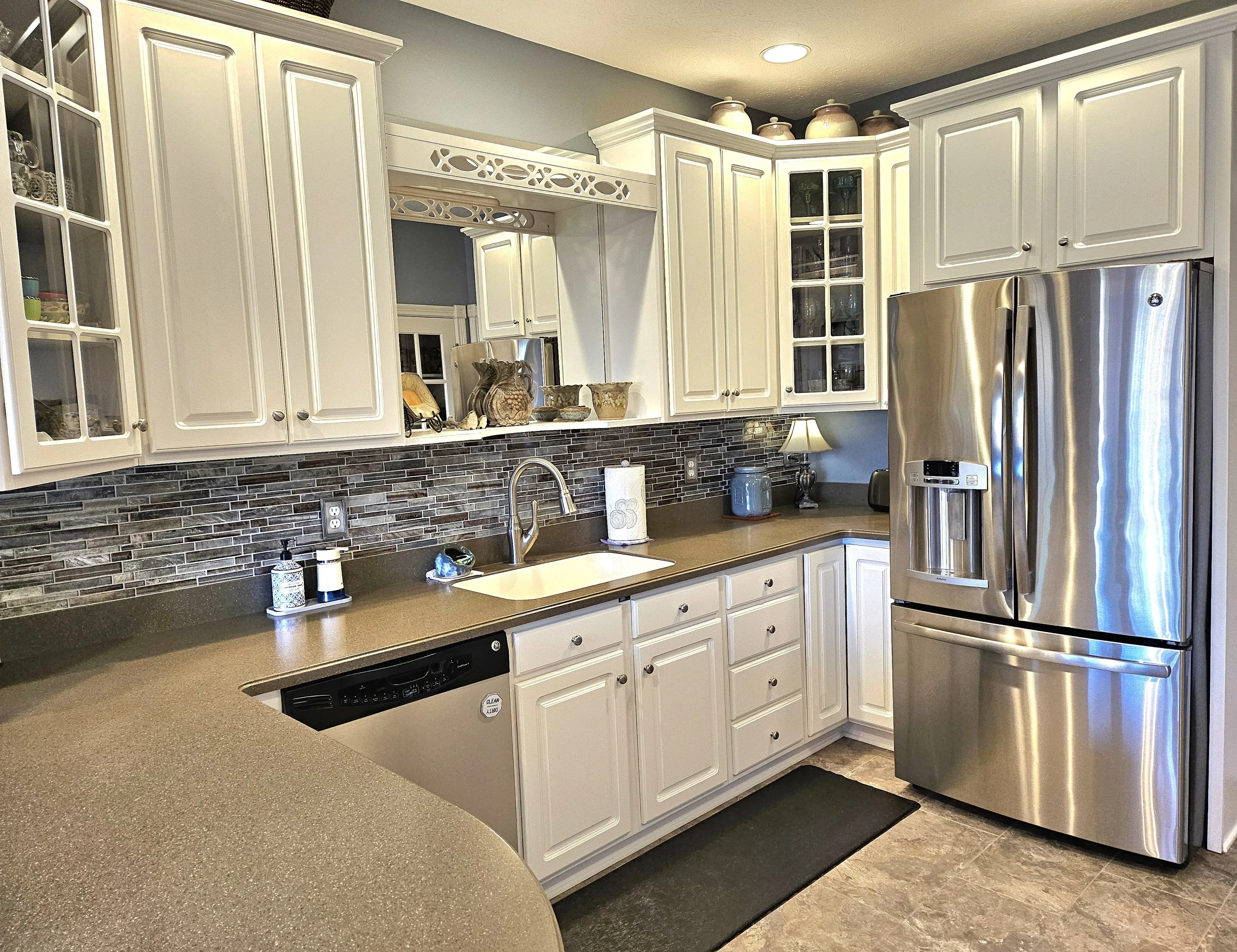 Custom Home in popular Greenwood Commons! Walk in to this two story entry and great room w fireplace, formal dining room and beautiful staircase. In-Law quarters, College Student, Office or guest area upper w 2 BR and full kitchen/1 Ba. Plenty of space for multiple families or guest! Primary Suite on main w large bath/walk-in shower that is off the Sunroom. Efficient kitchen, breakfast bar and breakfast room. The basement area is huge w rec room, den or reading room, 2 BR w Full Bath and bar sink & fridge! The basement could house another family, family get togethers, party room w space to spare! The home is 5500+ SF, 6 bedrooms/4Bath, TONS of storage on each floor! 3 Refrigerators, 2 Elec Range/oven, 2 Microwaves, 2 Dishwashers, 2 garb disp! Staircase to upper on main and staircase to basement and back up to garage! Leaded stained glass on some windows! 5 walk-in closets! Large fenced back yard w patio and mature trees! New Roof in 2023 and furnace in 2024! Sprinkler System for yard!