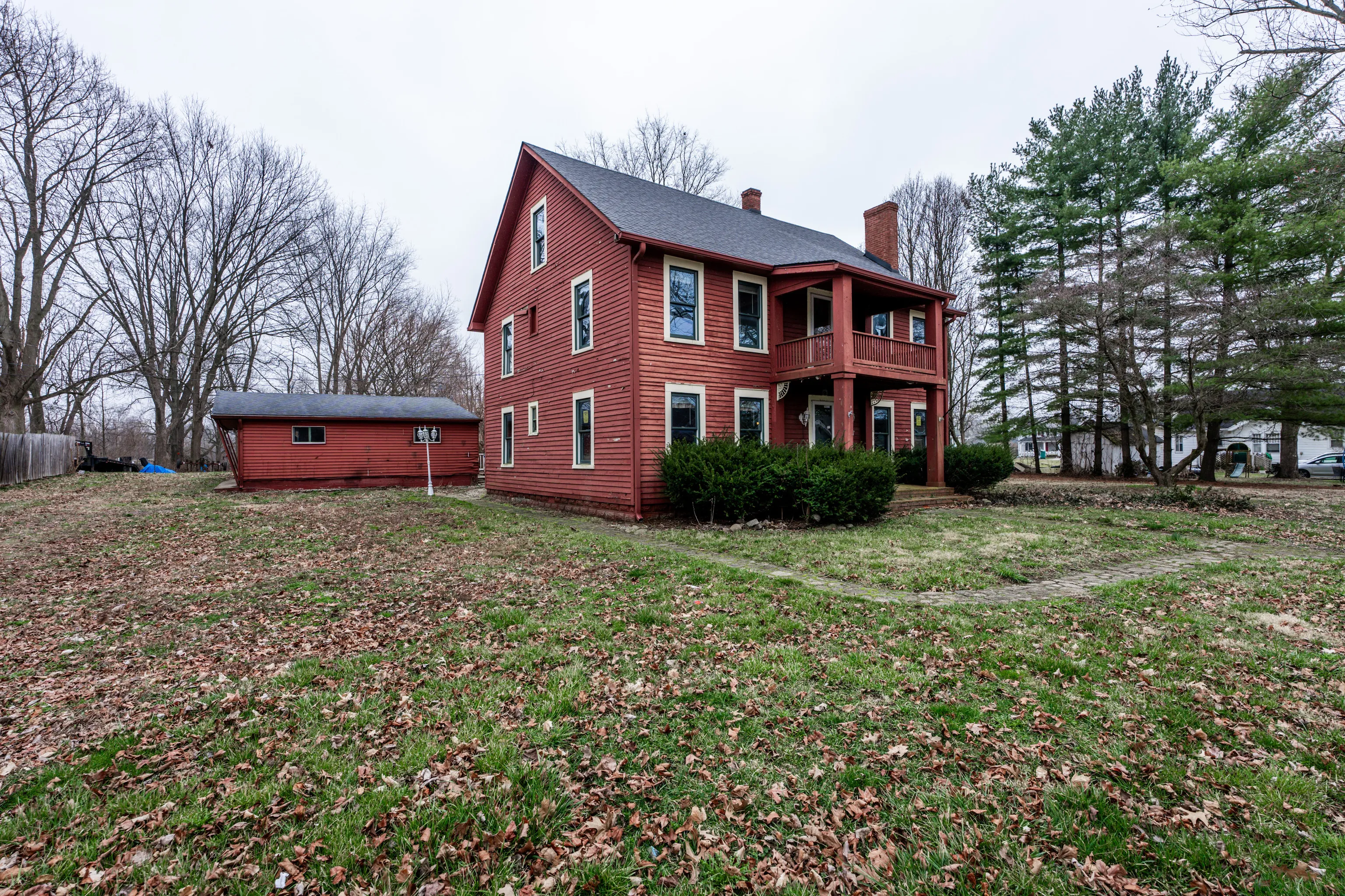 Incredible upside on this 5 Bedroom historic home in Hendricks County & Cascade Schools. Nestled in small town setting, this American Colonial is ready for new owner to restore its glory. Sits on large, wooded lot within a short walk to main street and the newest connection to Vandalia Trail. 2+-car detached garage with a carport. Nice outdoor space with wood deck, playhouse, and views of nature. Layout features large rooms, built-in storage, hardwood floors, wood beam ceilings, 2 fireplaces, raised ceilings and old world charm. Spacious Kitchen with pantry and lots of cabinet/countertop space. Enclosed Sun Room off the back of house. Stylish Master Bedroom includes private original fireplace and balcony space. Lots of equity available in this unique home which is a cornerstone in the original section of Amo. Great opportunity for owner occupant of investor. Full 3rd story could be added to floor plan and possibly an additional 1,080 sq. ft. This home is a must see.