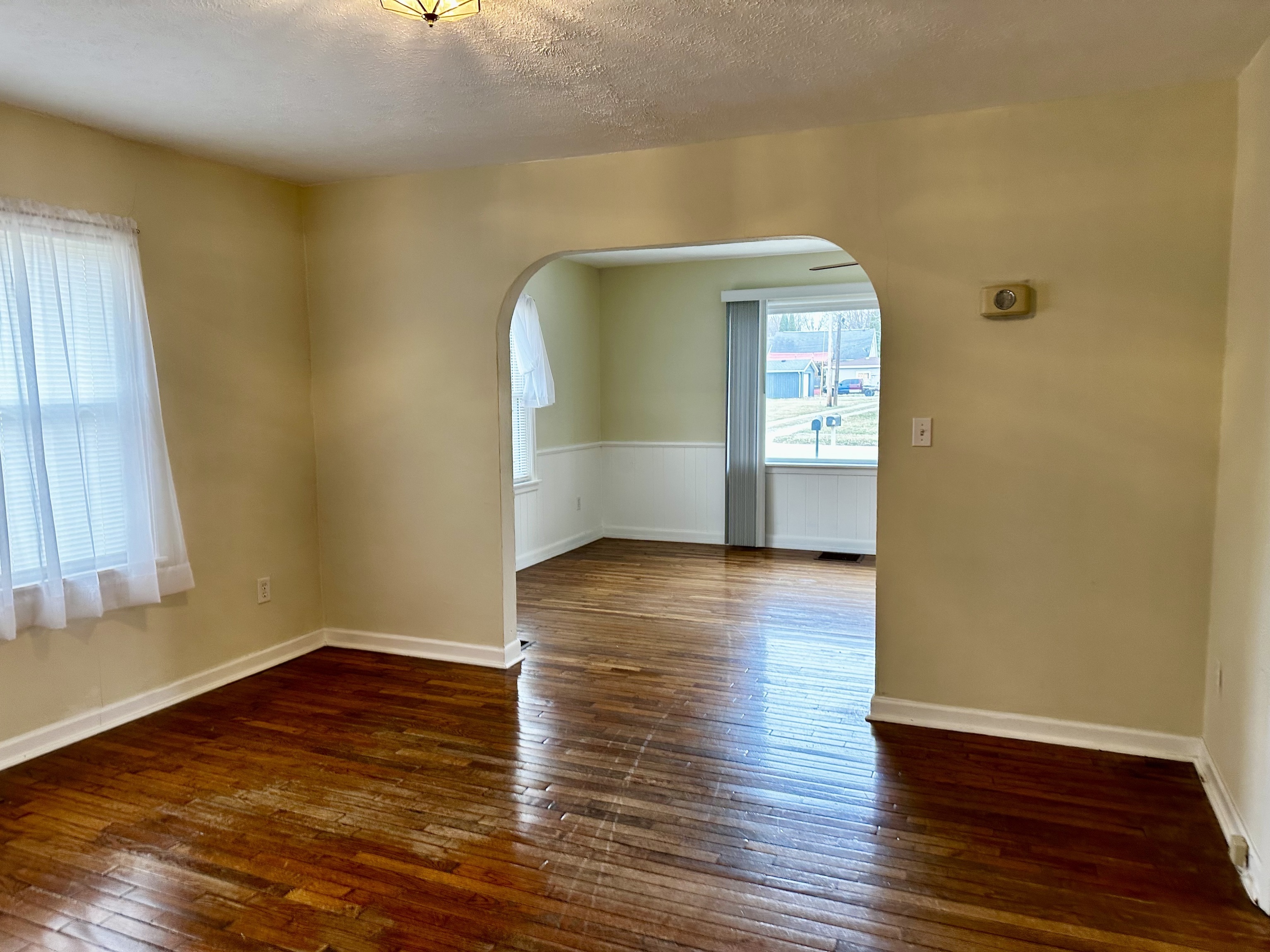 Darlington offers this charming 2 bedroom bungalow. This cozy home boasts a warm and inviting atmosphere, perfect for those looking to downsize or start a new chapter in a peaceful small town setting. As soon as you enter the glass enclosed front porch, you will notice the hardwood floors and arched doorways! An updated kitchen offers ample cabinet space and all appliances are included. A separate room has ample space for your dining room table plus a buffet. Both bedrooms are comfortably sized w/the master highlighted by wainscotted walls. Two rooms in the basement, one being finished off for a home office or guest room and the other area has the mechanicals, laundry, and storage room. The full bathroom features a tub/shower combo and modern fixtures for your convenience. Outside, you’ll find a 1 car detached garage for storing your vehicle or outdoor equipment. The large backyard is ideal for gardening, outdoor dining, or playing with pets and children. Located within walking distance to the local bank, park, or gas station. This adorable bungalow is the perfect place to call home in a charming small town setting. Don’t miss out on this opportunity to make this home your own!