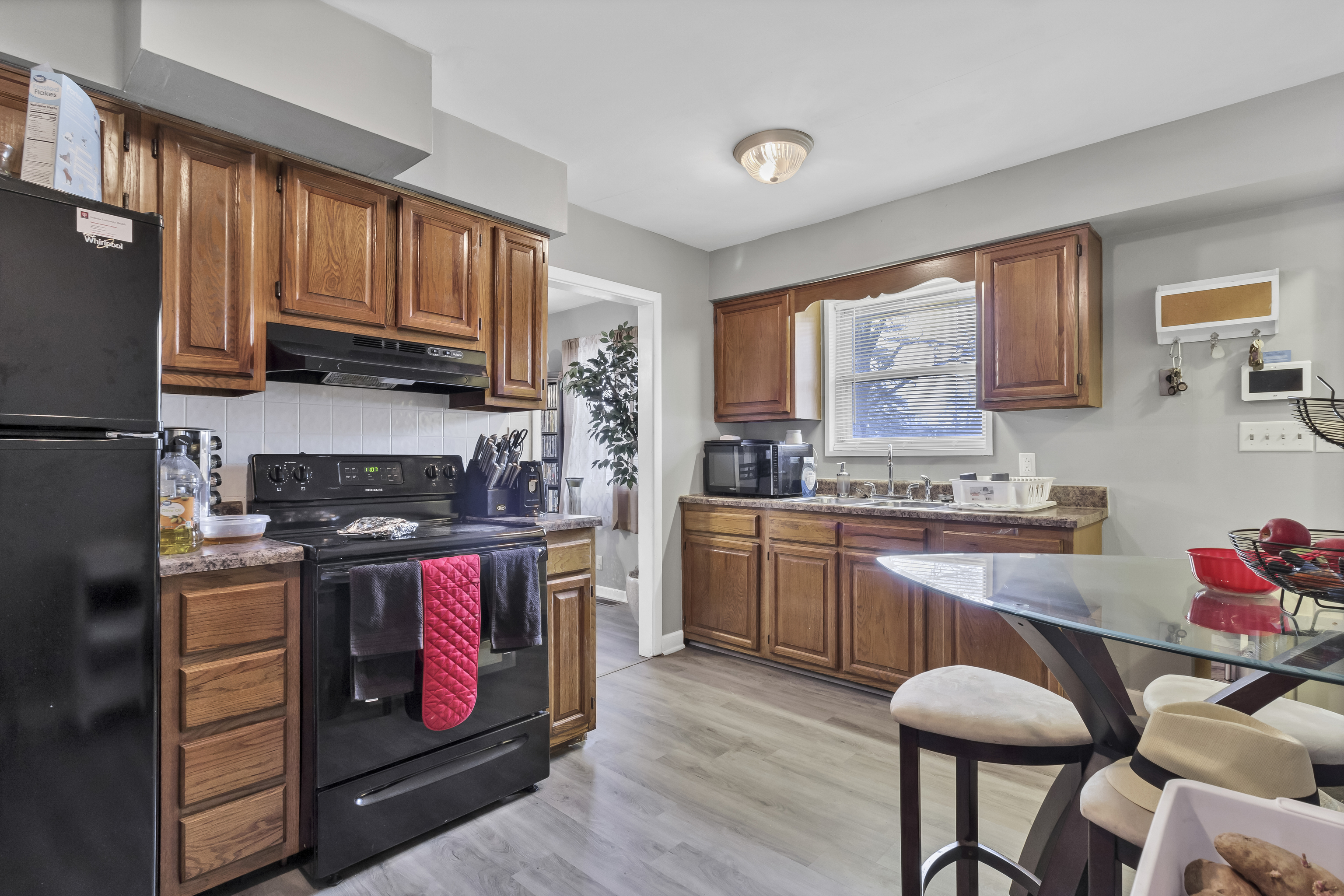 Welcome home! This well maintained solid brick and stone 3 bedroom, 1.5 bathroom home sits on an extra large corner lot with a fenced in backyard on a quiet street. Enjoy evenings or mornings sitting on the front porch. This home features original hardwood floors under the newer laminated hardwood flooring, fresh paint, and newer water heater. The spacious unfinished basement provides a laundry area, and multiple spaces for extra living. The garage and carport allows multiple spaces for parking.