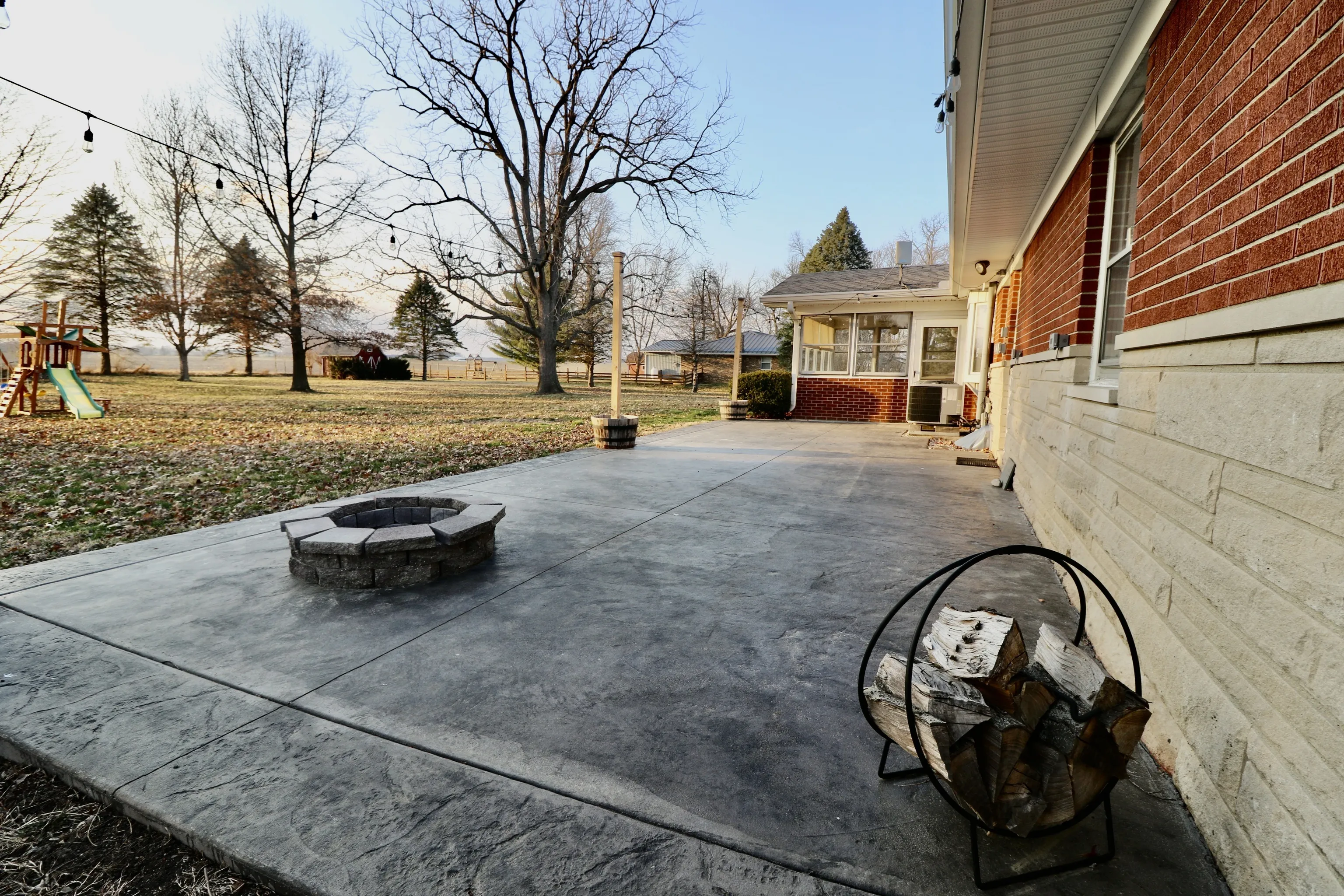 Terrific rural setting in NMHS school district! Located on 1.26A you will find this brick & stone, 3 bedroom, 2 full bath ranch home that awaits a new family. Enjoy the new stamped concrete patio w/ integrated fire pit & enjoy the peaceful view across the fields. With nearly 2,100 sqft, you will appreciate the size of the dining, living, family & rec rooms for entertaining. The kitchen includes all the appliances & is adorned with an abundance of natural light from a bay window & adjacent glassed enclosed sunroom. Laundry room on main with W/D included to make the move a breeze. Updates include, lighting, flooring, bathroom updates, high efficiency HVAC & More. 2 car attached garage, pull down attic access, & basement for plenty of storage options. Well/Septic.