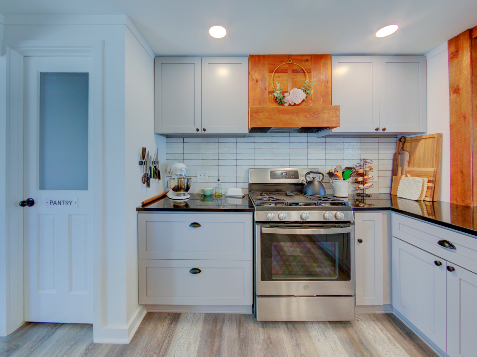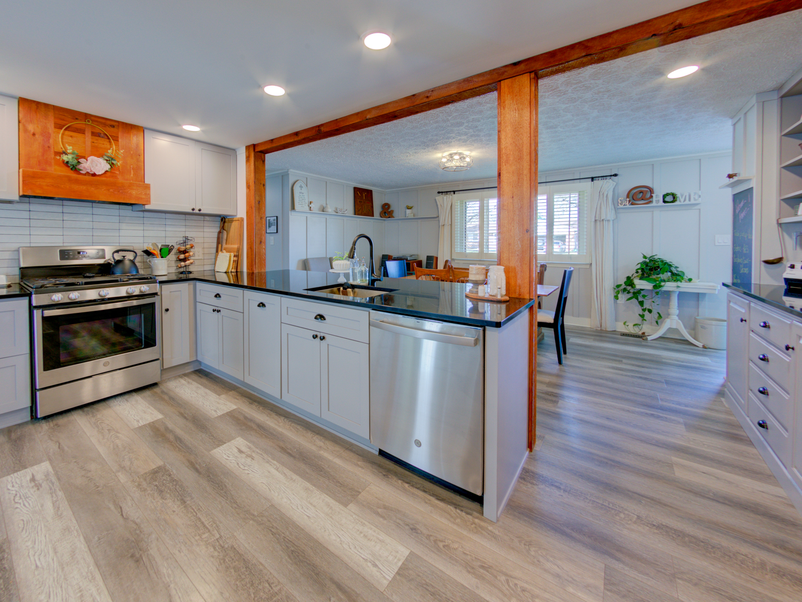 Wow, adorable brick ranch home on corner lot, tons of updates, all newly renovated kit with cabinets, appliances, quartzite counters, fixtures tile backsplash, custom hood, built-ins for coffee bar, pantry, update LVP, tile in bathrooms, original hardwood in bedrooms, new roof, facelift and maintenance to gutters and downspouts, completely updated fireplace with new liner, damper etc. Patio in back, 2 he/she sheds, privacy fenced backyard area, all new garage door and equipment with opener, water softener paid and stays, new front door, This is a charming comfortable home with a convenient location. It is a must see 3 bedroom home. Pride of ownership is in every turn. 2 car attached spacious garage with service door. Lovely yard with tons of perennials for easy care.