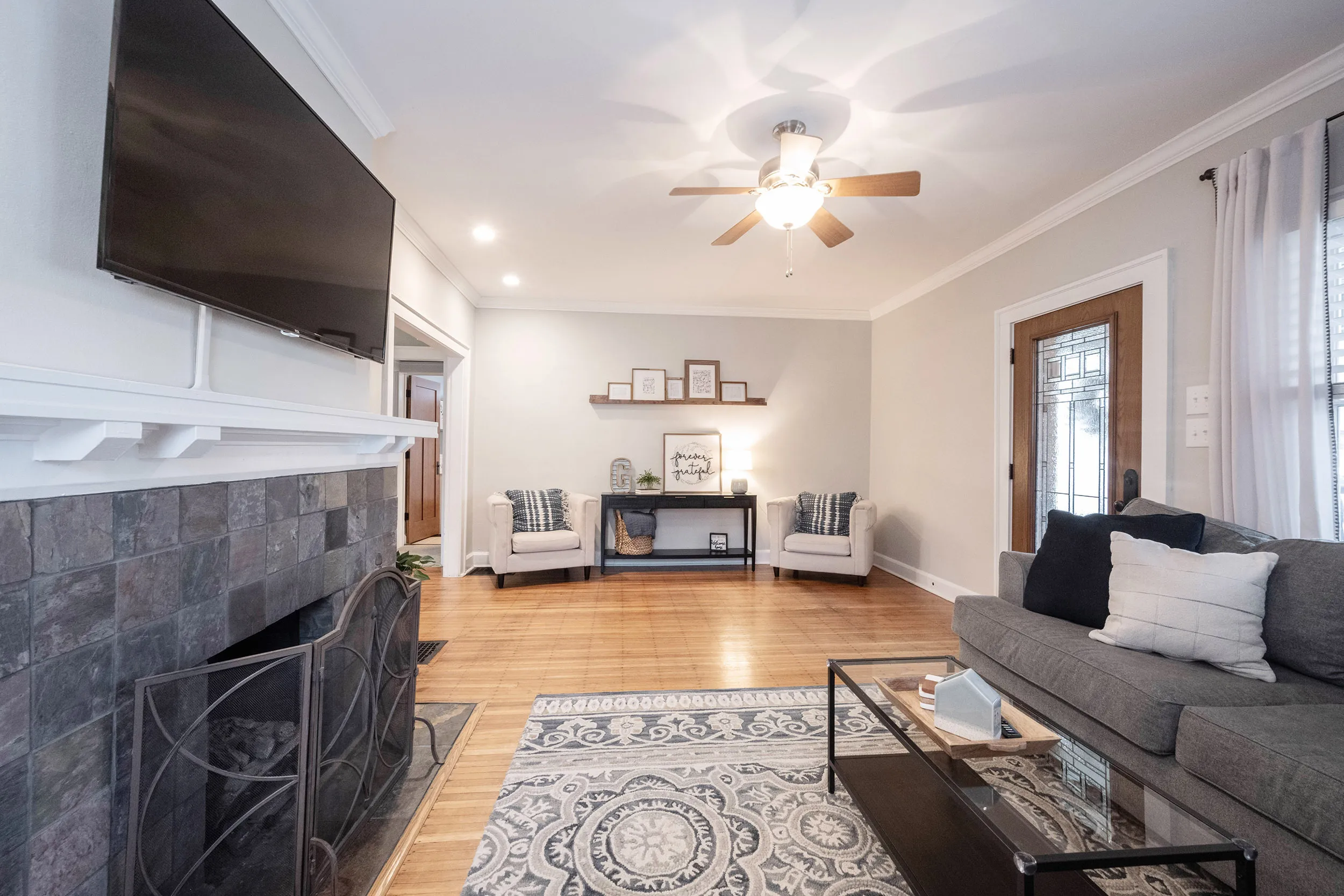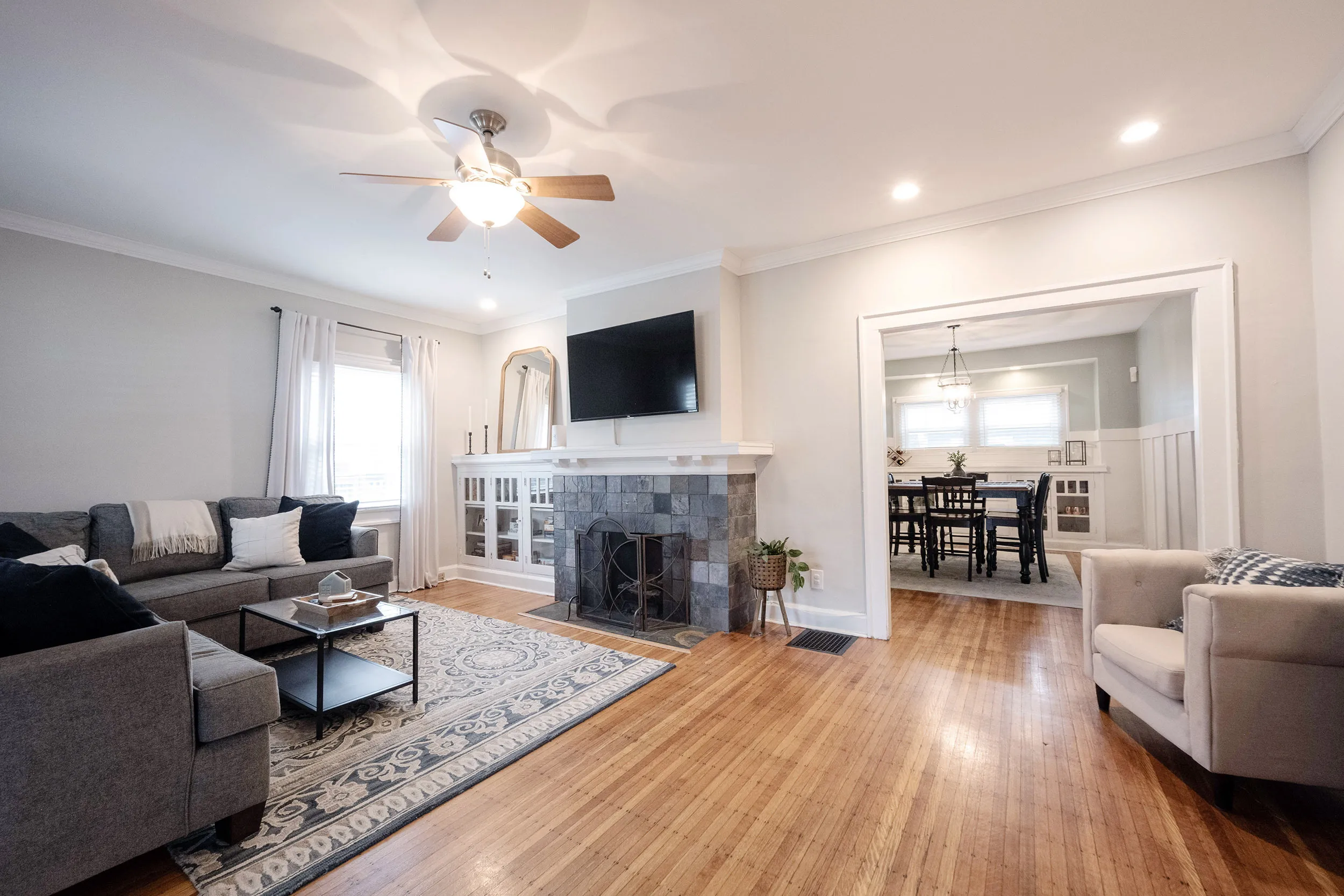 Welcome home to 4802 Guilford Ave, a delightful 1920s bungalow nestled in the Northcroft-Broad Ripple neighborhood, just 3 blocks from the vibrant dining and shopping scene on College Ave. The craftsman-style front door welcomes you to the main level adorned with original hardwood floors and vintage built-in cabinets. Step into the bright and warm family room and dining area, showcasing crown molding and a beautiful fireplace. The updated kitchen boasts new quartz countertops and a stylish tile backsplash, offering both functionality and sophistication. The remodeled main-level bath, new carpet, and widened doorways seamlessly blend modern comforts with classic elegance. The upper-level primary bedroom is a spacious retreat, boasting an updated full bath and two walk-in closets. Discover endless possibilities in the unfinished basement, ready for your personal touch. The fenced backyard, featuring a private courtyard, invites you to relax and entertain. This home blends historic character with desirable updates, offering a perfect combination of comfort and style. Don’t miss the chance to make 4802 Guilford Ave your own piece of history in this thriving neighborhood.