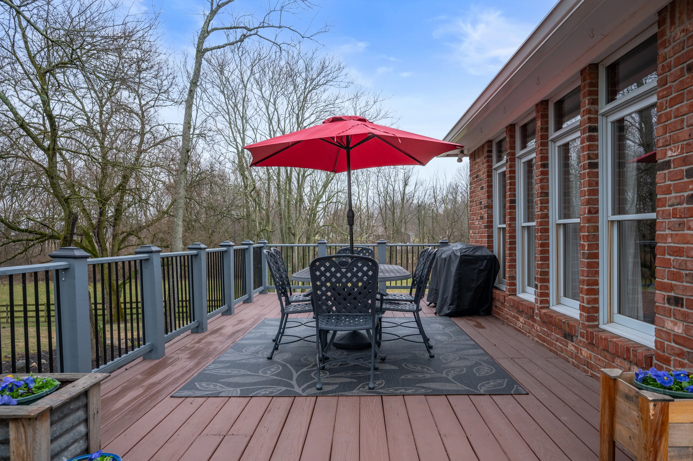 STUNNING 4 BD/3.5 BATH RANCH in PENDLETON SCHOOLS w/WALK-OUT BASEMENT + HOME OFFICE + REC ROOM & OVER SIX FIGURES IN UPDATES! The beauty of this home & incredible 3.4 ACRE LOT must be experienced in person! Welcome guests into the SPACIOUS FRONT ENTRY & FORMAL DINING ROOM. The space opens to GREAT RM w/floor-to-ceiling masonry FIREPLACE and tons of natural light from wall of windows! HUGE BREAKFAST ROOM w/HARDWOOD FLOORS & more incredible windows welcomes the outdoors in! COMPLETELY RENOVATED KITCHEN has new GRANITE COUNTERTOPS, ALL NEW APPLIANCES including gas cooktop, convection oven/microwave, oven, composite sink, & new hardware & light fixtures. Main level PRIMARY BDRM has so much space & COMPLETELY REMODELED PRIMARY BATH w/WALK-IN SHOWER, REAL STONE FLOORING, WALL TILE, WINDOW GLASS, & NEW VANITIES & FIXTURES. WIC is a closet lover’s dream w/so much space, storage, & shelving! HUGE WALK-OUT BASEMENT features KITCHENETTE, HOME OFFICE , BONUS/REC RM, & 3 ADDITONAL BDRMS/2 FULL BATHS! This home has it all! IMMACULATELY MAINTAINED & UPDATED LANDSCAPING including newly designed flower beds and addition of multiple varieties of flowers, bushes, plants, and over 30 trees planted. New railing and additional space added to back deck in 2023 along with a new STAMPED CONCRETE WALKWAY, STAIRCASE, & STAMPED PATIO in the backyard. Storage shed in backyard also wired w/electric & carport added in 2021. From the curb appeal outdoors to the charm & detail inside, you’ll fall in love wit this MUST-SEE HOME. The best of country living – charm, calm, relaxation – while being only minutes from PENDLETON SCHOOLS & downtown Pendleton, grocery shopping, restaurants, and more. Please see “Home Updates” in attached documents for extensive list of home upgrades!