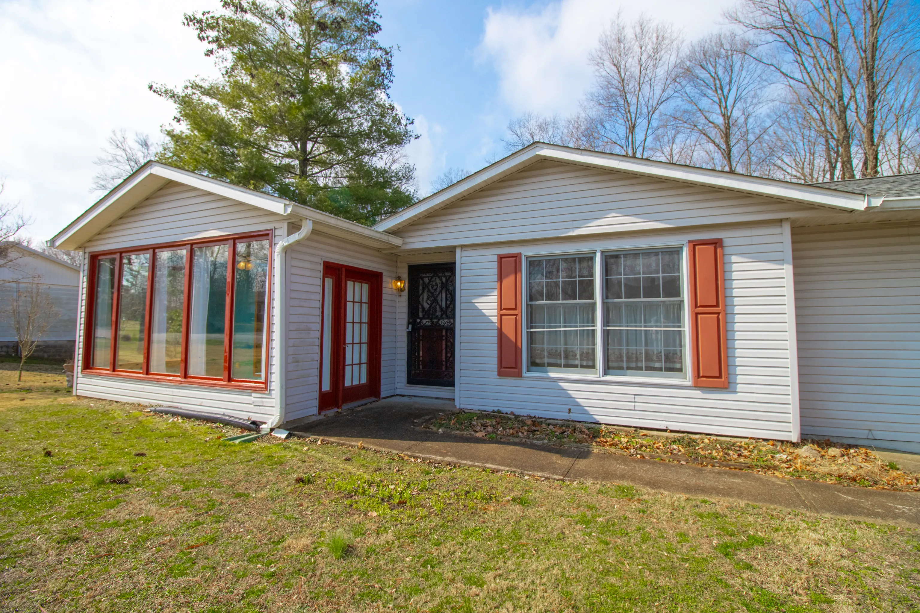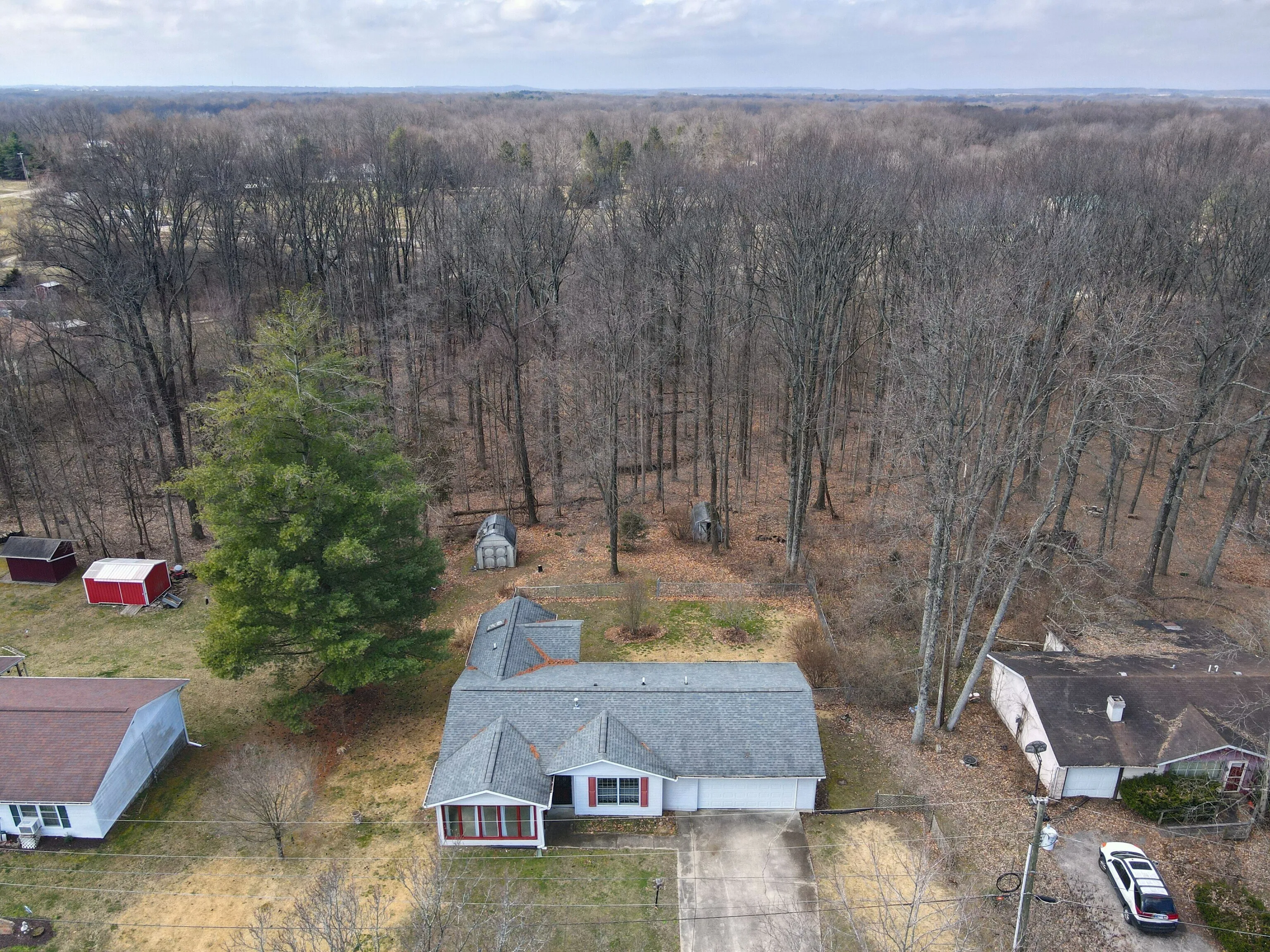 Charming home with great potential on Happy Hollow! This one-level floor plan offers 3 bedroom, 2 baths, flex space off of the living room and a 2-car garage. The fenced backyard is surrounded by a beautiful wooded backdrop. This quiet neighborhood provides country living with only a 10 minute drive to east-side shopping and a 12 minute drive to downtown Bloomington!