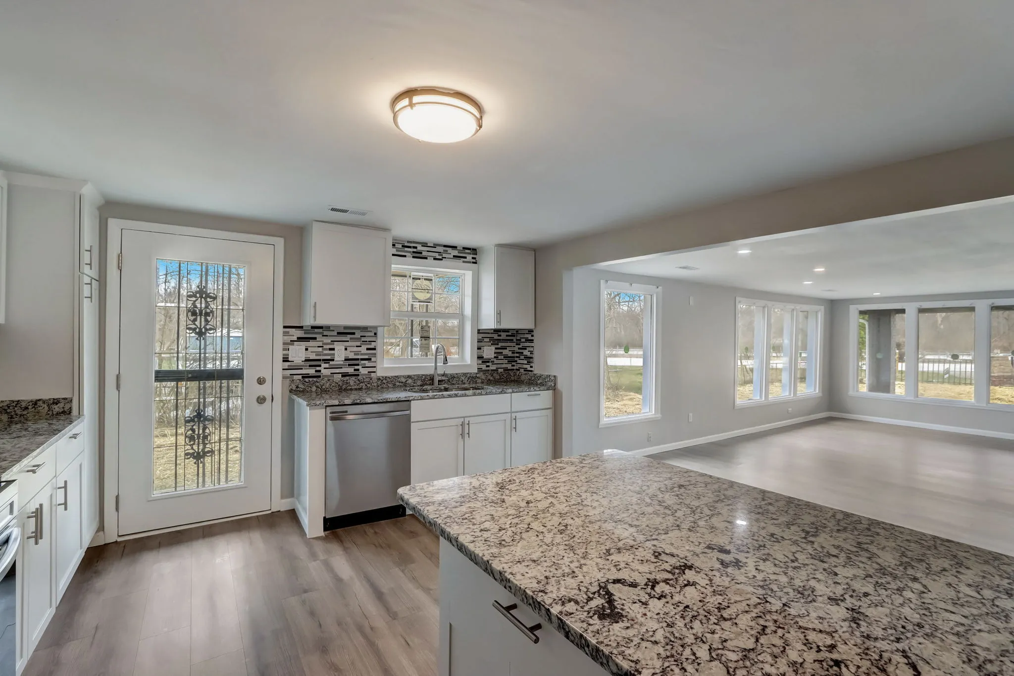 Welcome to your dream REAL ESTATE! This charming 4-bed, 2.5-bath ranch-style home boasts comfort, convenience, and style while being nestled in the very desirable Pike-Township! Upon arrival, you’re greeted by a picture perfect gaze. Step through the inviting entrance and discover an open-concept layout, perfect for both family living and entertaining guests. The heart of the home lies in the spacious living room, adorned with natural light streaming through large windows, illuminating the amazing new flooring! Gather around the cozy fireplace on chilly evenings, creating cherishable memories with loved ones.Adjacent to the living area is the gourmet kitchen, a culinary enthusiast’s haven featuring sleek Granite countertops, modern NEW Stainless steel appliances, and ample cabinet space for storage. Enjoy casual meals at the breakfast bar or host formal dinners in the adjacent dining/living-room area.Retreat to the private master suite, a step into relaxation complete with an ample closet, and an ensuite bathroom offering a soaking tub and shower combo. Three additional well-appointed bedrooms provide flexibility for family, guests, or a home office.Step outside to your own oasis, where a spacious patio awaits for al fresco dining and outdoor activities such as gardening, play, or simply unwinding in the sunshine. Convenience is key with an attached 2-car garage providing shelter for vehicles and additional storage space. Plus, with a single-story layout, this home ensures easy accessibility to everything it has to offer! Enjoy the convenience of nearby amenities, shopping, dining, and entertainment options, while also benefiting easy access to major commuter routes. Updates include: Roof, Electrical, Hvac, Plumbing, SEPTIC TO PUBLIC SEWER (2024), flooring,Tile, interior/exterior paint, garage door/motor and more! Don’t miss the opportunity to make this your forever home!