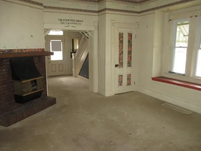 Turn of the century home in New Palestine proper. Detached 2 car garage with work area, work shed for all your gardening tools and supplies. Central heat and a/c, basement with a sump pump.