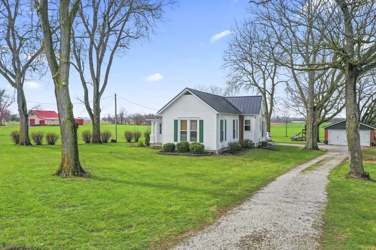 PRICE REDUCED $15,000 from original list price! What a great way to start off your spring with this charming, beautifully renovated farmhouse on 1.02 acres that offers 3 bedrooms, 2 bathrooms, and serene living spaces. Enjoy the enclosed sunporch, covered back porch, and newly renovated kitchen with granite counters. This peaceful retreat features a new metal roof on both the house and detached garage, beautiful hardwood floors, 10′ ceilings, and a built-in bookcase. The property boasts an oversized 2-car detached garage with a separate 100-amp breaker. Stay cozy with a 1000-lb propane tank for the furnace and all-electric amenities. Conveniently located with shopping and interstate access nearby, this home is a perfect blend of modern comfort and classic farmhouse charm.
