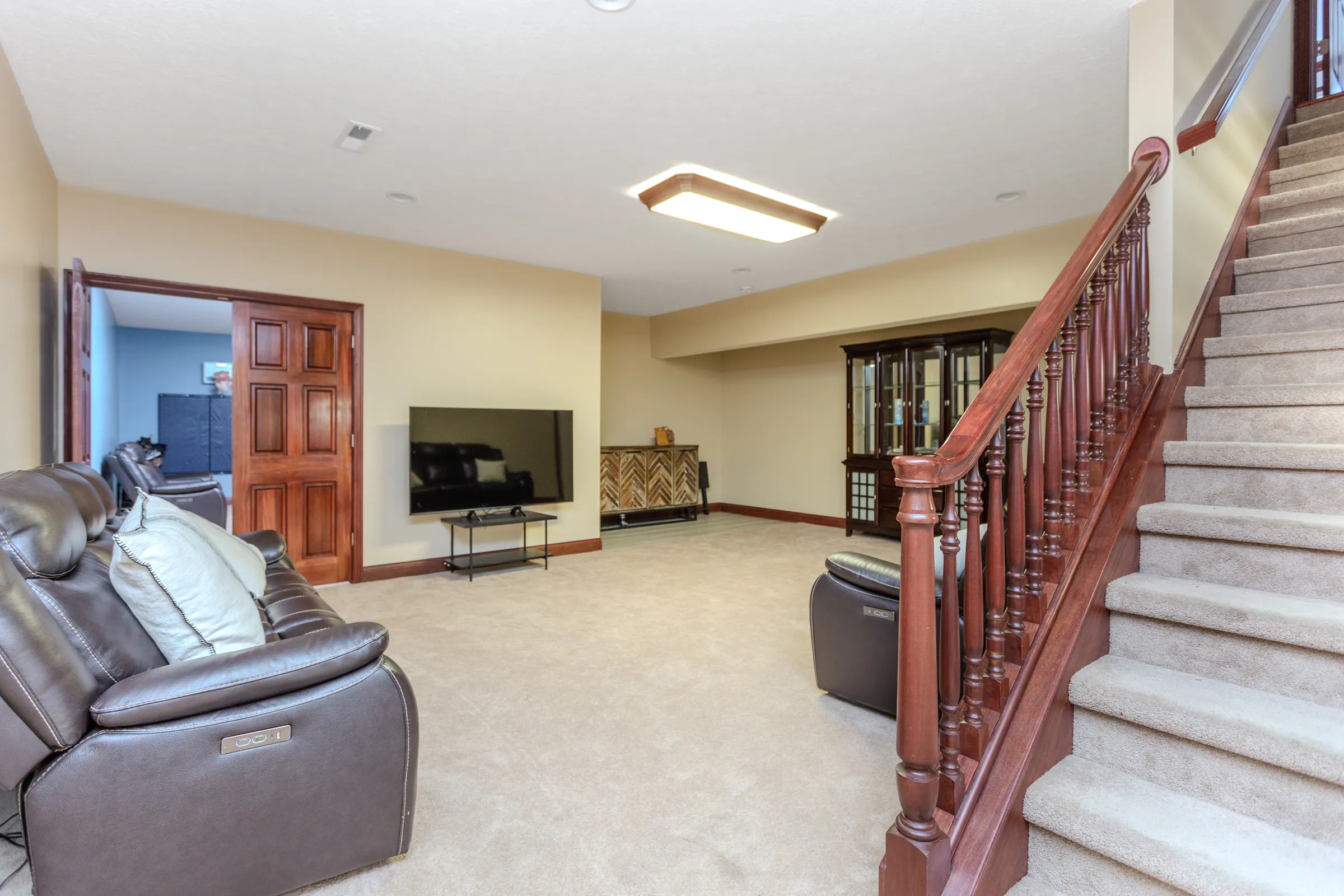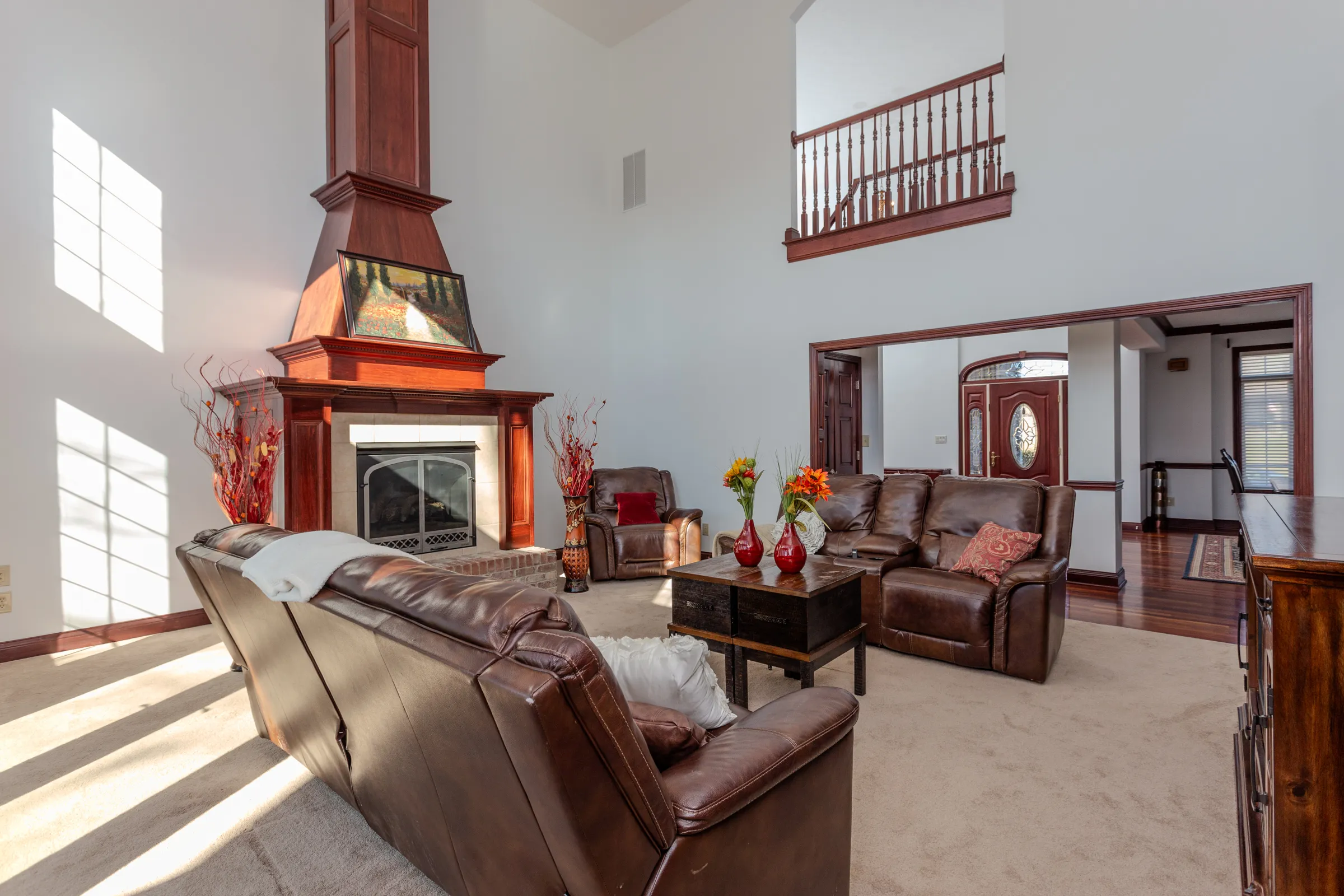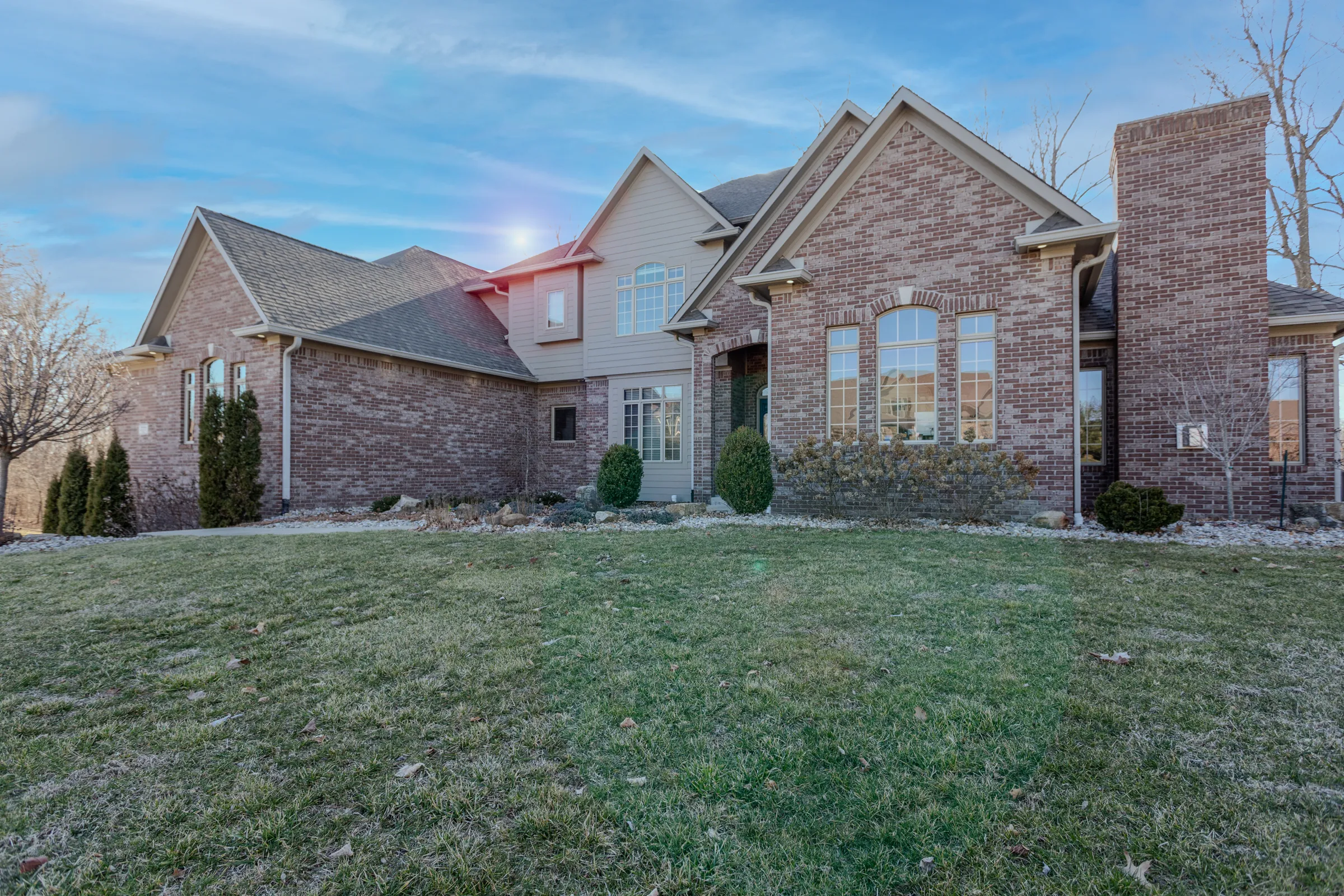 Welcome to this beautiful custom built 5 bedroom, 5.5 bathroom home in Hickory Woods! This home features everything you could ask for. Upon opening the front door, you are greeted with a grand 2-story entry, with a winding staircase leading upstairs. Main floor features a formal dining room, office, kitchen, sitting room with fireplace, large 2-story living room with an eye-catching fireplace, and the primary bed/bath with walk-in closet! Continuing upstairs, you will find 3 extra bedrooms, each having their own full bathroom. In the basement are two large rooms that are great for entertainment or any use case that fits your household. Additionally the basement features a bedroom, bathroom, and massive storage space with garage access. On the outside, this home offers a 2-story, 4-car garage, and a large back deck with hot tub! This home is a must see!