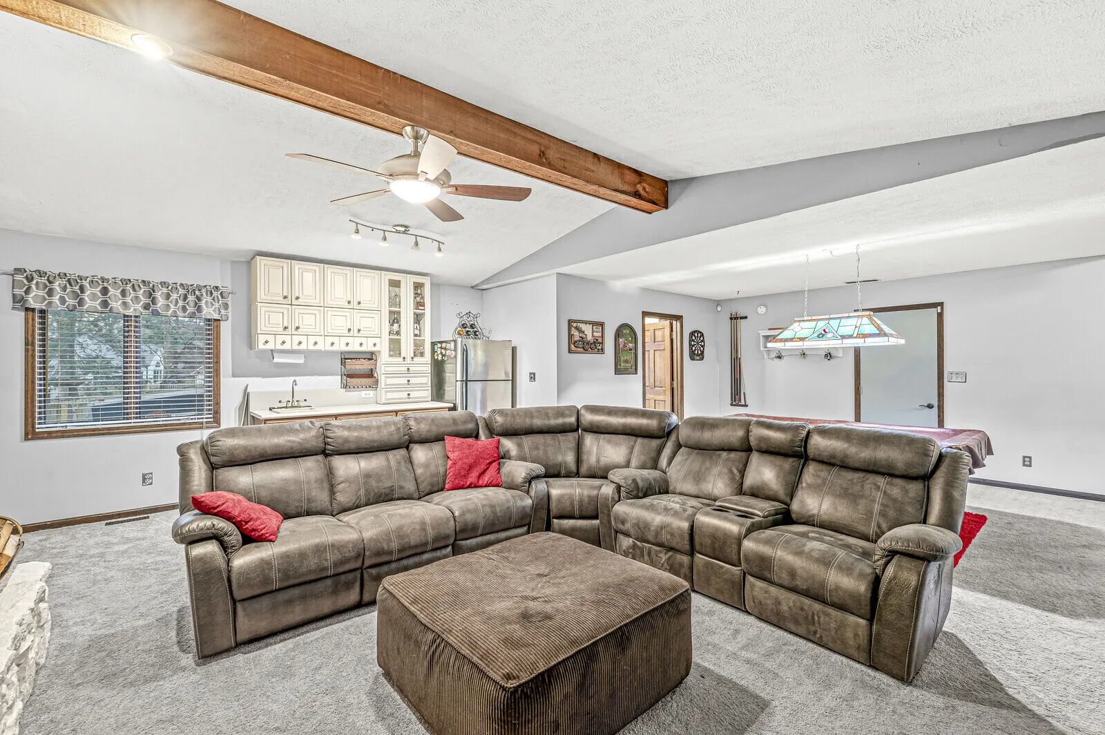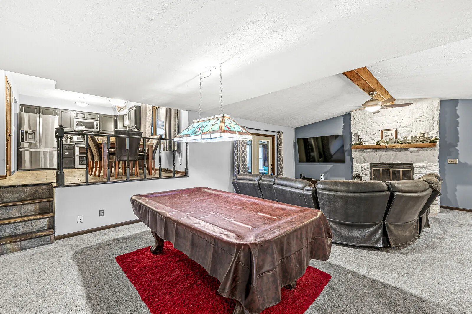 Welcome to your dream home in the serene Forest Hills Estates in Noblesville! This meticulously updated 3 bedroom, 2.5 bath tri-level home not only offers the perfect blend of comfort, style, and convenience but also boasts significant upgrades for peace of mind: a new roof, furnace/heat pump with backup emergency propane heat, and water heater-all installed in 2022. As you enter, you’re greeted by a versatile living room with durable engineered hardwood flooring, which can effortlessly serve as a formal dining room. This space seamlessly flows into the heart of the home: a beautifully updated kitchen. Here, granite countertops and stainless steel appliances await to enhance your culinary experiences, complemented by a cozy breakfast room for morning gatherings. Step down into the spacious great room, where new carpeting, a wood-burning fireplace, and a wet bar create the ultimate setting for relaxation and entertainment. The adjacent updated half bath and laundry room add to the home’s functionality, while direct access to the covered patio offers an outdoor retreat. The custom bar with quartz countertops and a hot tub provide an exclusive oasis for unwinding or hosting gatherings. The upper level reveals a second beautifully updated bathroom, featuring a tiled tub surround and a vanity with a granite countertop. The primary bedroom is a true sanctuary, updated with elegant tile flooring, a walk-in shower with a bench, and a modern vanity and sink, ensuring a luxurious start and end to your day. Located near downtown Noblesville, this home offers the convenience of city living with the tranquility of a neighborhood trail leading to Forest Park. With its recent upgrades and thoughtful touches throughout, embrace a lifestyle of comfort & sophistication, in Forest Hills Estates.