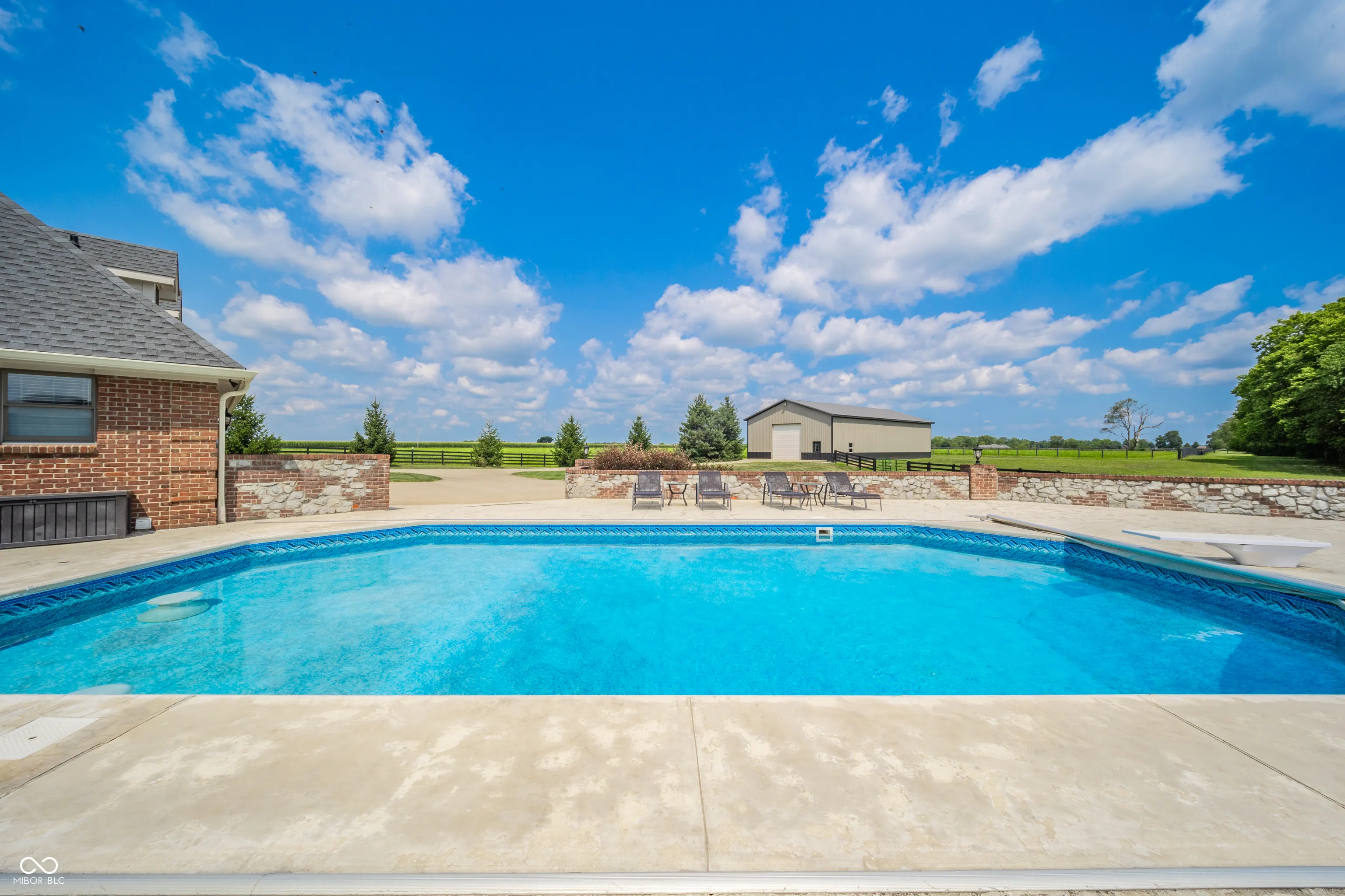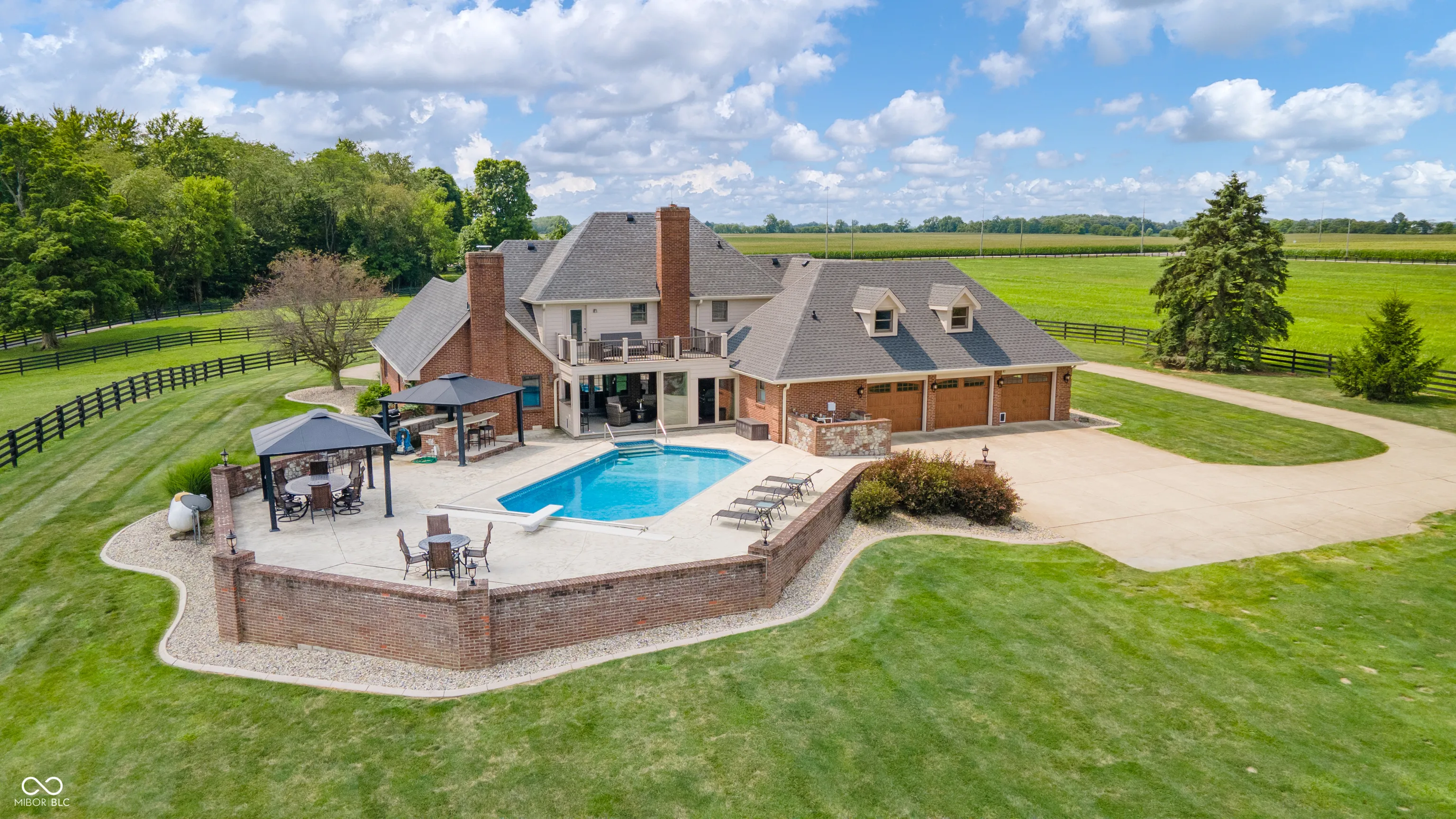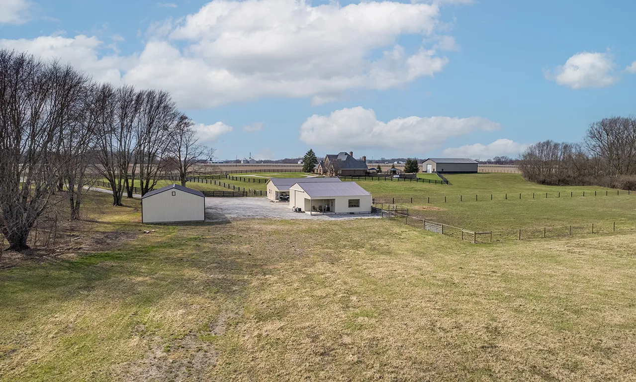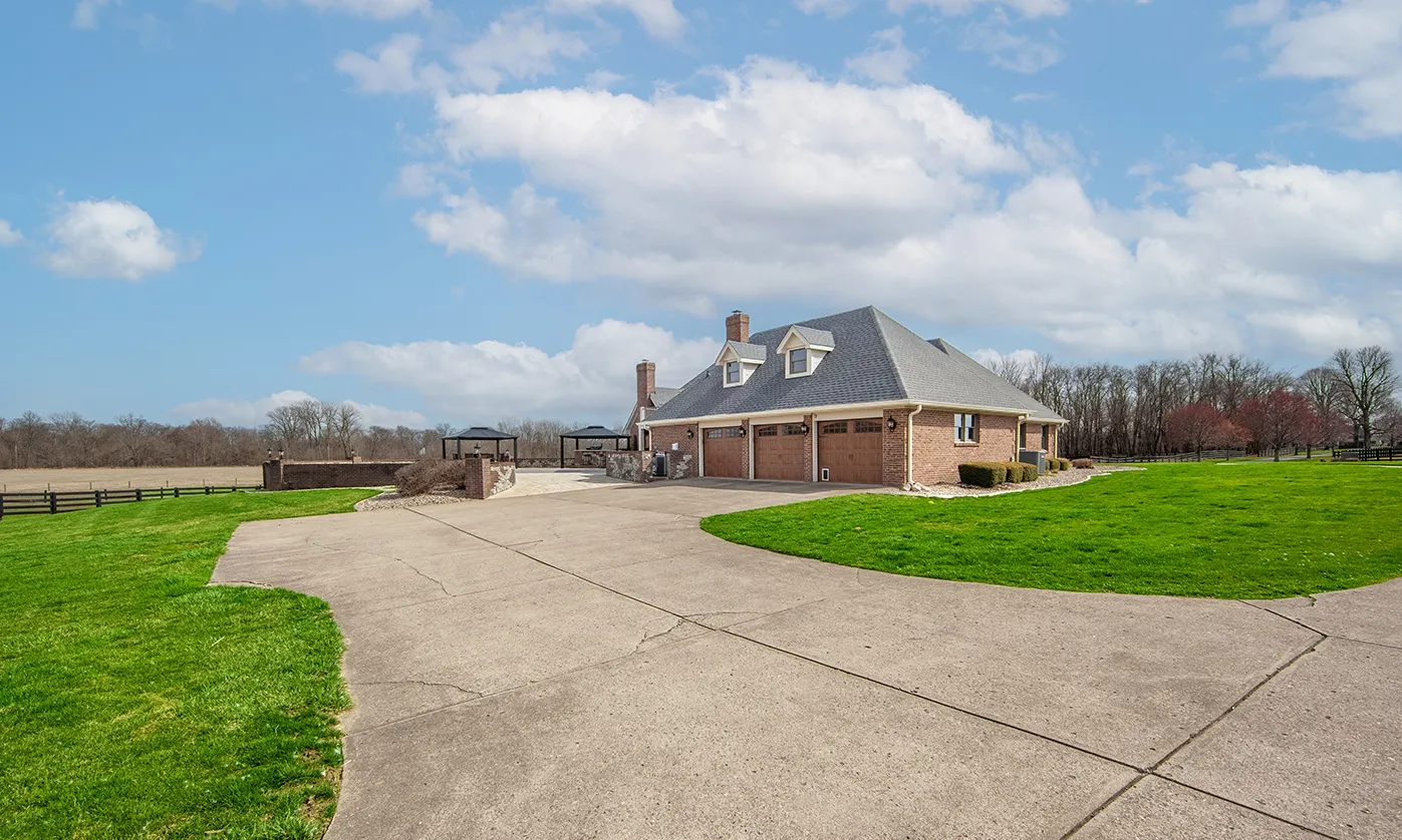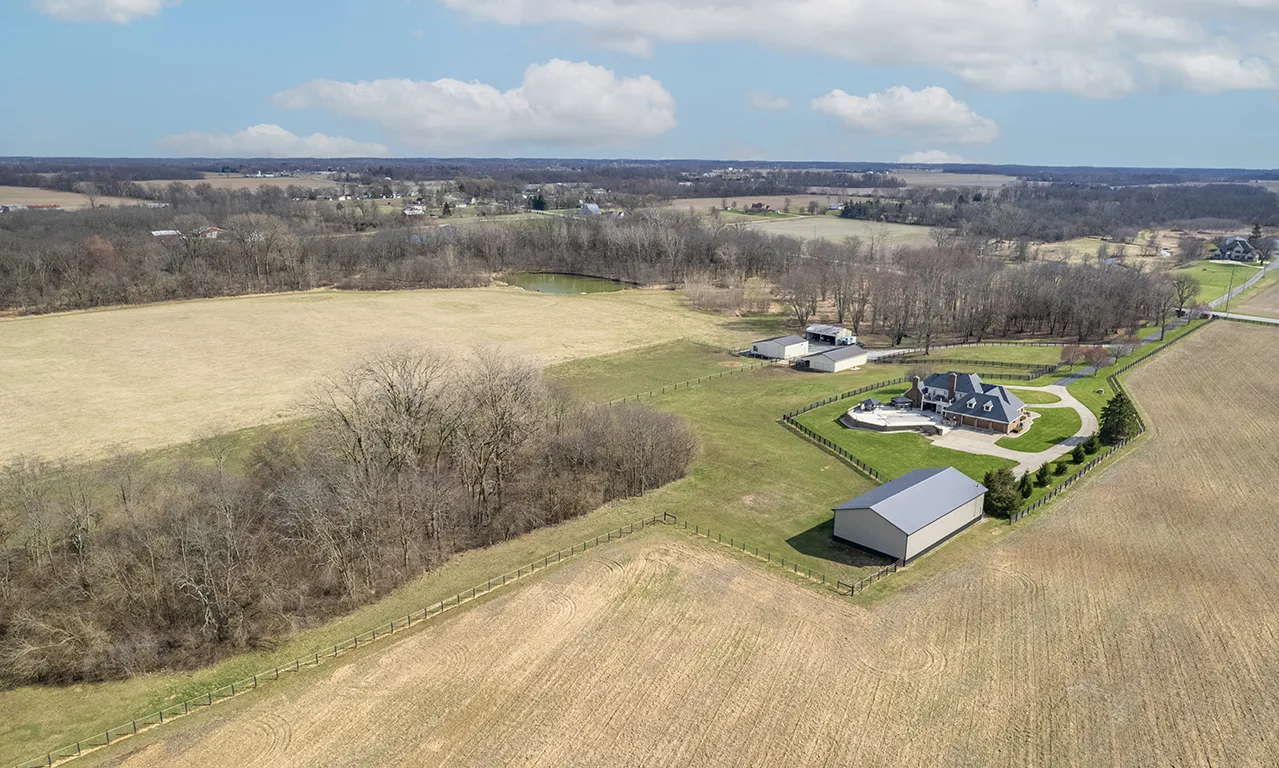 Welcome to a truly unique and highly coveted private estate nestled on 47 picturesque acres in Pendleton. This extraordinary property boasts an expansive custom brick home spanning over 6,000 sq ft, with hundreds of thousands of dollars invested in exquisite upgrades. Designed to cater to discerning tastes, this estate offers an ideal haven for equine enthusiasts, featuring a vast fenced pasture with room to expand, multiple barns, hayfield (~12 acres), impeccably maintained stables, riding and ATV trails parallel with Lick Creek, tack room, plus studio apartment. The 40×80 pole barn further enhance the equestrian facilities. Immerse yourself in the natural splendor of approximately 19 acres of majestic woods, pond, and a meandering creek, creating a sanctuary for a diverse array of wildlife. Outdoor gatherings are effortlessly elevated with a covered porch/lounge area, an inviting outdoor kitchen/bar, a charming dining space, and an enticing inground heated saltwater pool. Experience the epitome of luxury living and embrace the allure of this remarkable estate, where every detail has been meticulously crafted to offer a lifestyle of unparalleled refinement and tranquility.