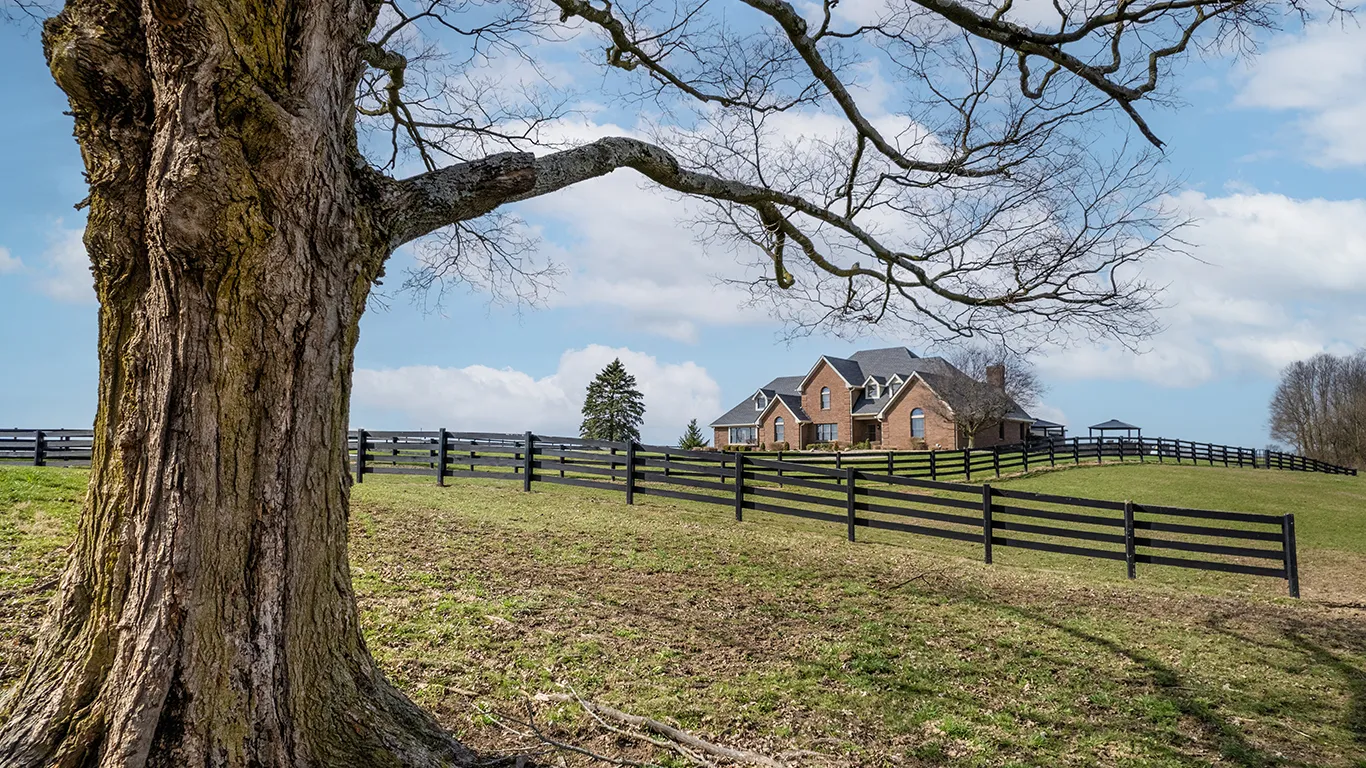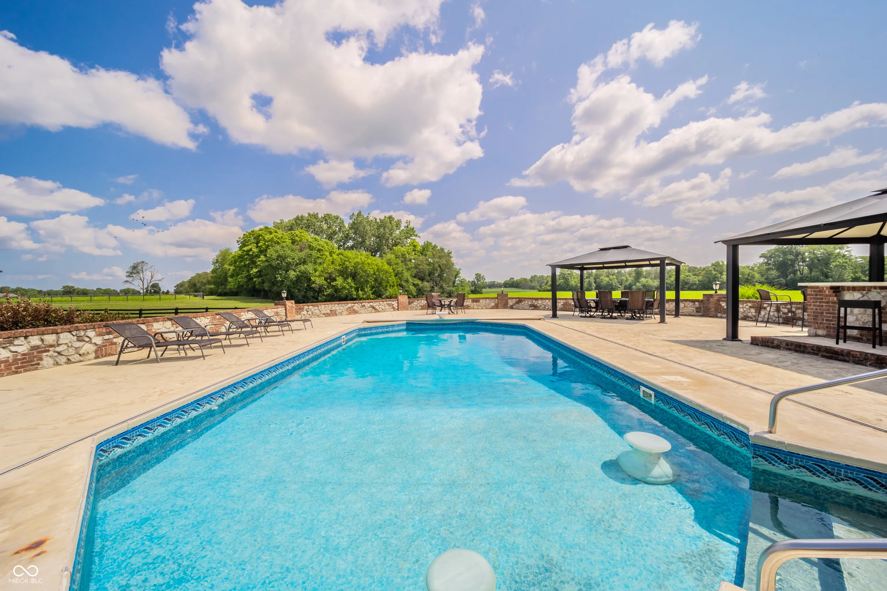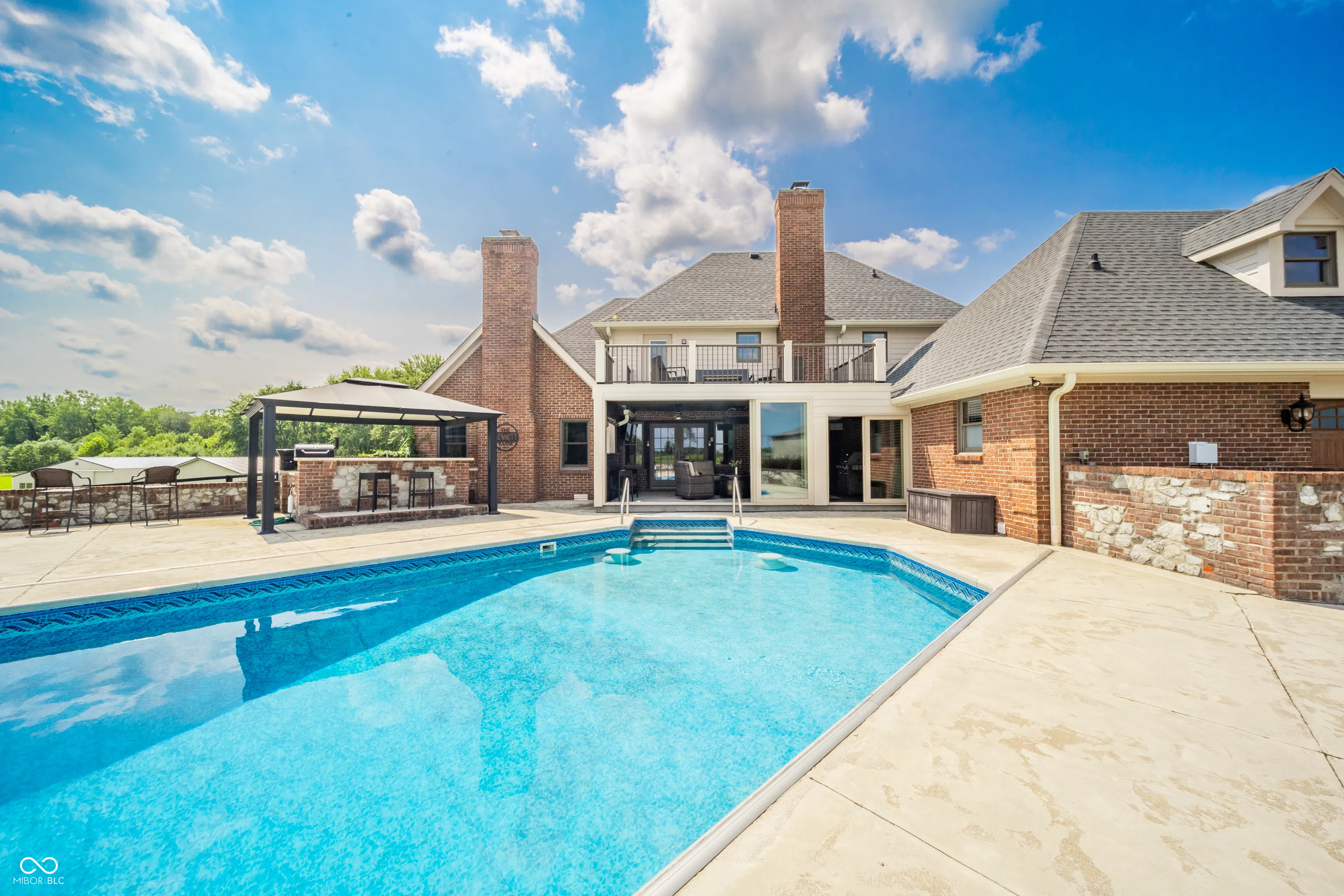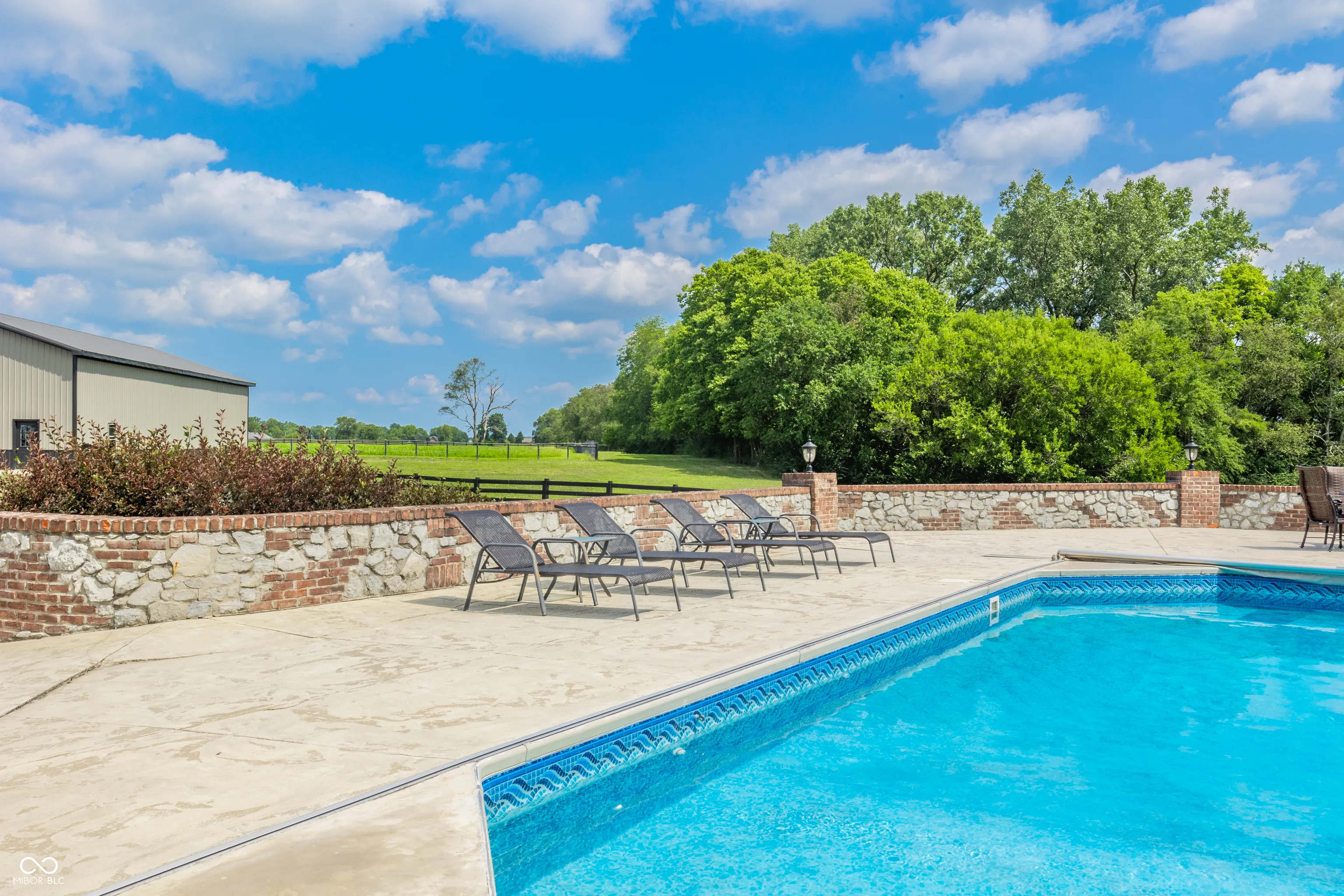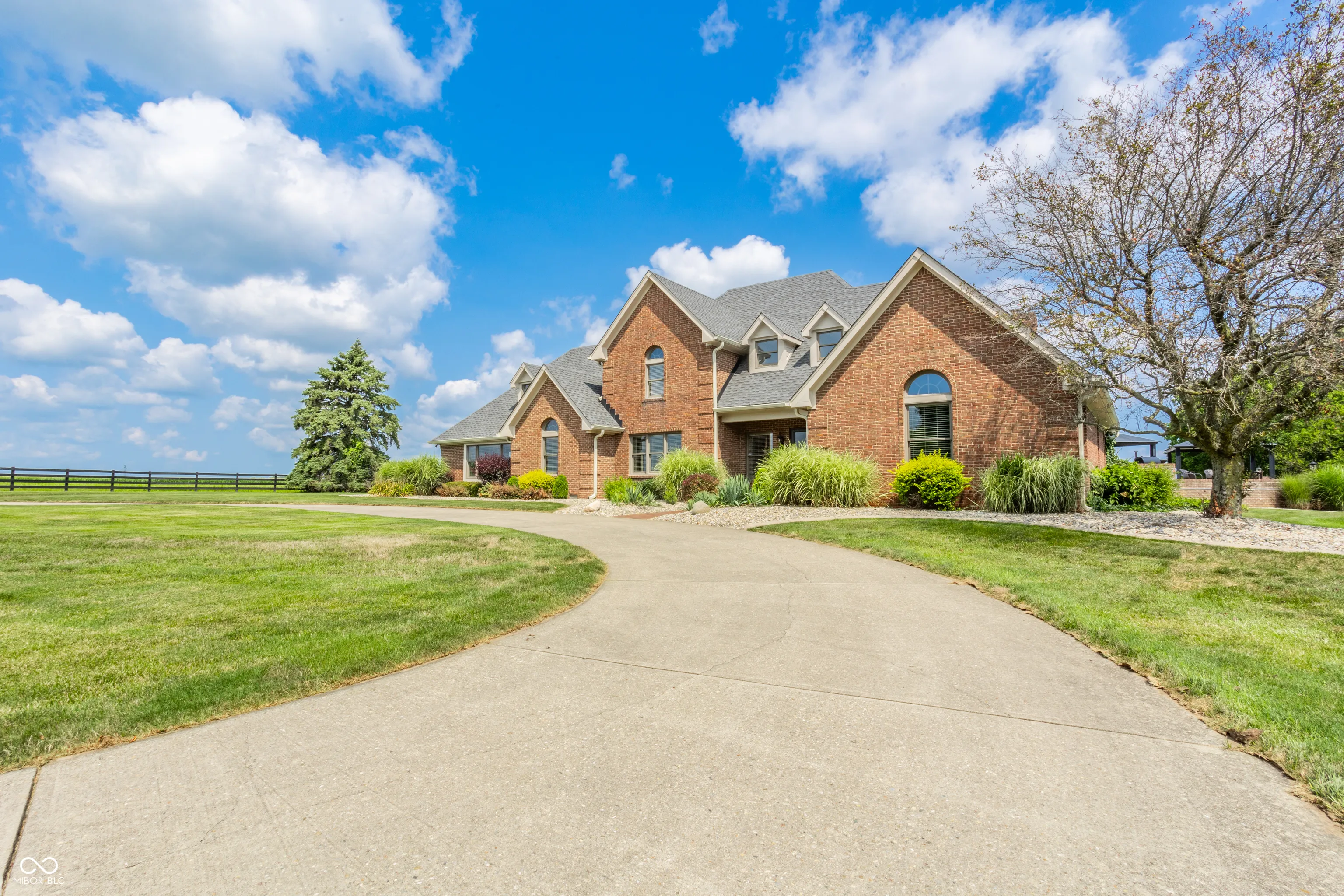 Welcome to a truly unique and highly coveted private estate nestled on 47 picturesque acres in Pendleton. This extraordinary property boasts an expansive custom brick home spanning over 6,000 sq ft, with hundreds of thousands of dollars invested in exquisite upgrades. Designed to cater to discerning tastes, this estate offers an ideal haven for equine enthusiasts, featuring a vast fenced pasture with room to expand, multiple barns, hayfield (~12 acres), impeccably maintained stables, riding and ATV trails parallel with Lick Creek, tack room, plus studio apartment. The 40×80 pole barn further enhance the equestrian facilities. Immerse yourself in the natural splendor of approximately 19 acres of majestic woods, pond, and a meandering creek, creating a sanctuary for a diverse array of wildlife. Outdoor gatherings are effortlessly elevated with a covered porch/lounge area, an inviting outdoor kitchen/bar, a charming dining space, and an enticing inground heated saltwater pool. Experience the epitome of luxury living and embrace the allure of this remarkable estate, where every detail has been meticulously crafted to offer a lifestyle of unparalleled refinement and tranquility.