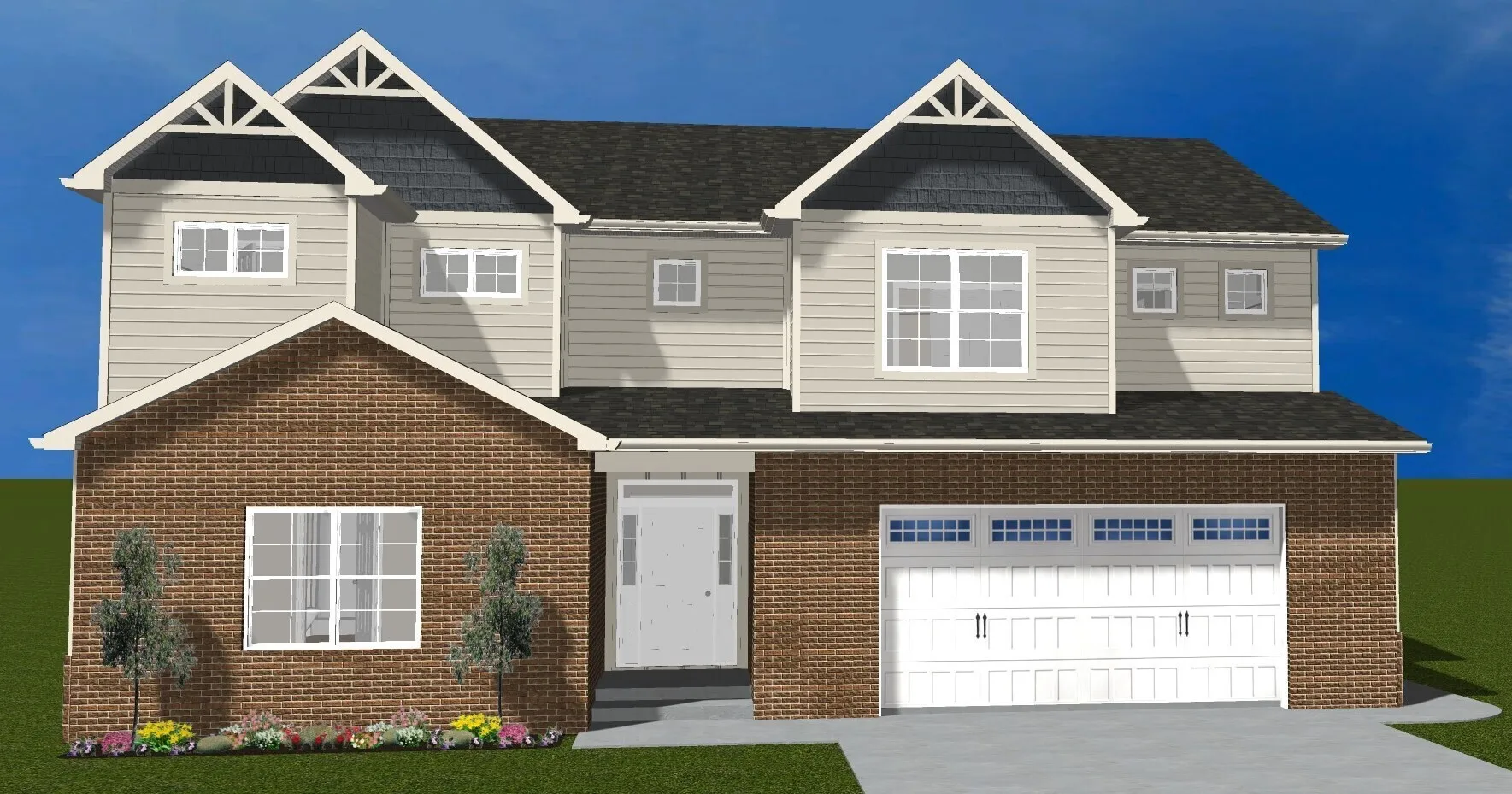 Proposed new build by Mustin Builders. The ‘Davenport’ home sits on 3 beautiful acres and features nearly 3600 sq ft. with 5 bedrooms and 4.5 bathrooms and a 2 car attached garage. The front exterior is adorned with stone and gable pediments that bring style and character to this modern traditional family home. Standard base floor plan include: fireplace, smart hard siding, dual HVAC, tile Shower, stone driveway, & well (sewer connected).