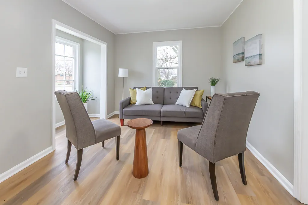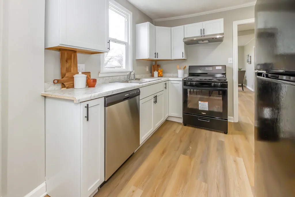 Welcome to your charming ranch-style retreat! Nestled in a peaceful neighborhood, this delightful 3-bedroom, 1-bathroom home offers the perfect blend of comfort and convenience. Upon entering, you’ll be greeted by a warm and inviting atmosphere, accentuated by the abundance of natural light that floods the space. The spacious living area is ideal for both relaxation and entertaining guests, boasting fresh paint and new flooring that add a touch of modern elegance. The heart of this home lies in its recently updated kitchen, complete with brand new appliances that make cooking a delight. Three cozy bedrooms provide ample space for rest and relaxation, each adorned with the same tasteful finishes found throughout the home. The fully renovated bathroom features modern fixtures and a clean, crisp aesthetic. Outside, a detached 2-car garage offers convenient parking and additional storage space, perfect for housing your vehicles and outdoor equipment. The expansive yard provides plenty of room for outdoor activities and gardening, promising endless opportunities for enjoyment and relaxation. Conveniently located close to schools, parks, and shopping, this home offers the perfect blend of tranquility and accessibility. Don’t miss your chance to make this wonderful property your own – schedule a showing today and experience the charm of ranch-style living at its finest!