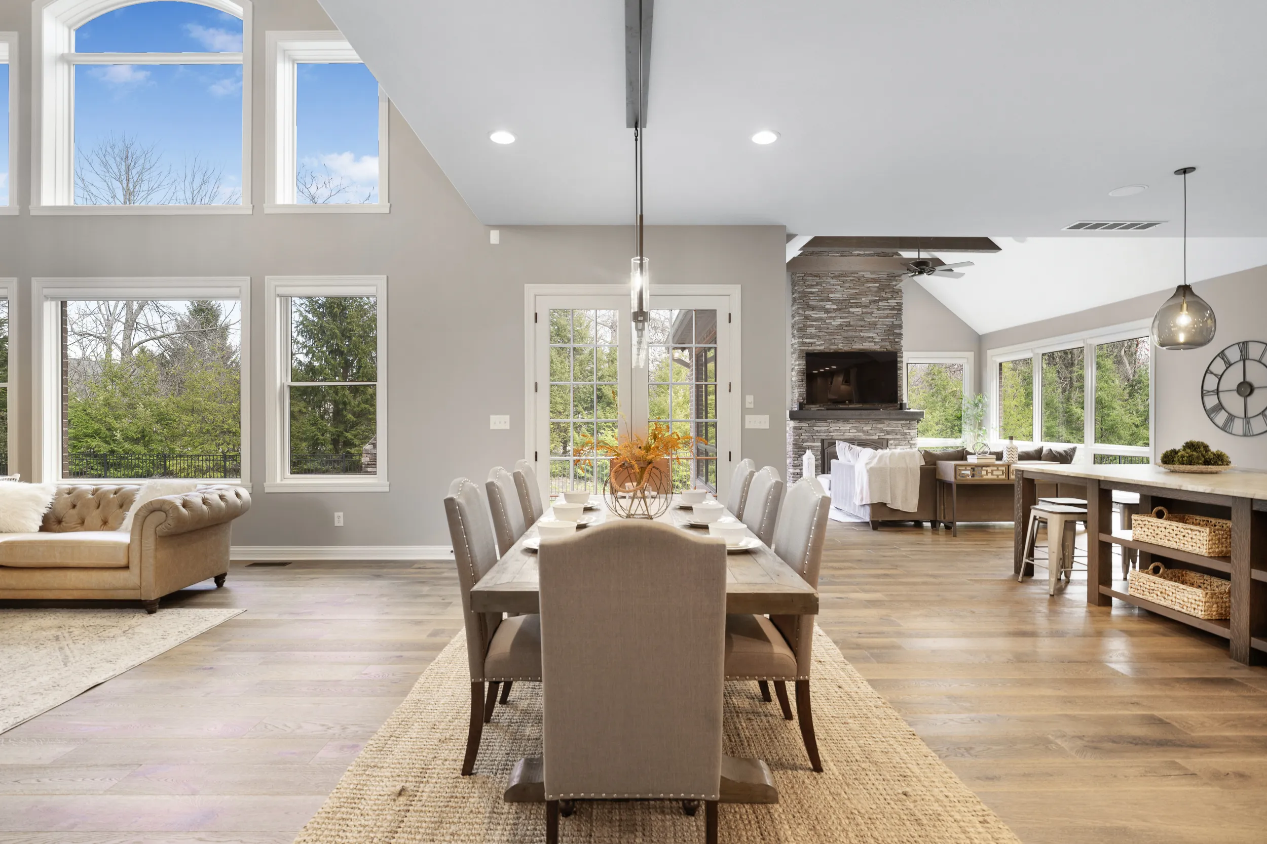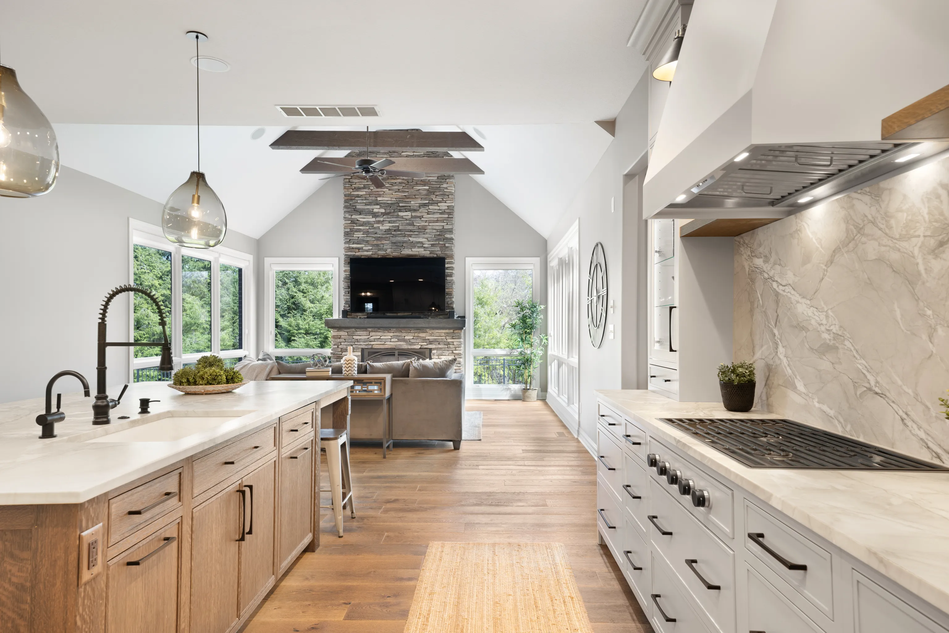 Refined, elegant, and sophisticated describe this luxurious chateau-inspired mountain lodge in Hamilton Proper. Sitting atop a hill on the prestigious Club Chase, this turn-key home is a two-minute walk to The Hawthorns Golf and Country Club. Around every corner are breathtaking finishes including dual floor-to-ceiling stack-stone fireplaces surrounding an open-concept dining and kitchen area with island bar. Extensively remodeled with the highest quality materials (Amish custom cabinets, Chef’s Signature Series appliances, 3/4 inch engineered hardwoods, quartzite stone counters/backsplash, and high-end faucets and fixtures) all encompassed by an abundance of natural light from solar protected glass. Convenient main floor primary suite with heated bathroom floors and grand walk-in closet. Nanny’s quarters or home office with attached full bath thoughtfully positioned on the lower level. Expansive bonus/kids playroom upstairs could easily be converted into a 5th bedroom/in-laws quarters. Sweat in your exercise room, relax in your hearth room, enjoy a bottle of wine from your temperature controlled cellar, or indulge in a glass of bourbon in the speakeasy lounge or outdoor patio. Whole home air purification system, tankless water heater, HVAC zone damper system, and instant hot/filtered water at kitchen sink. Plenty of room for entertaining guests and oversized 4-car garage for all of your toys.
