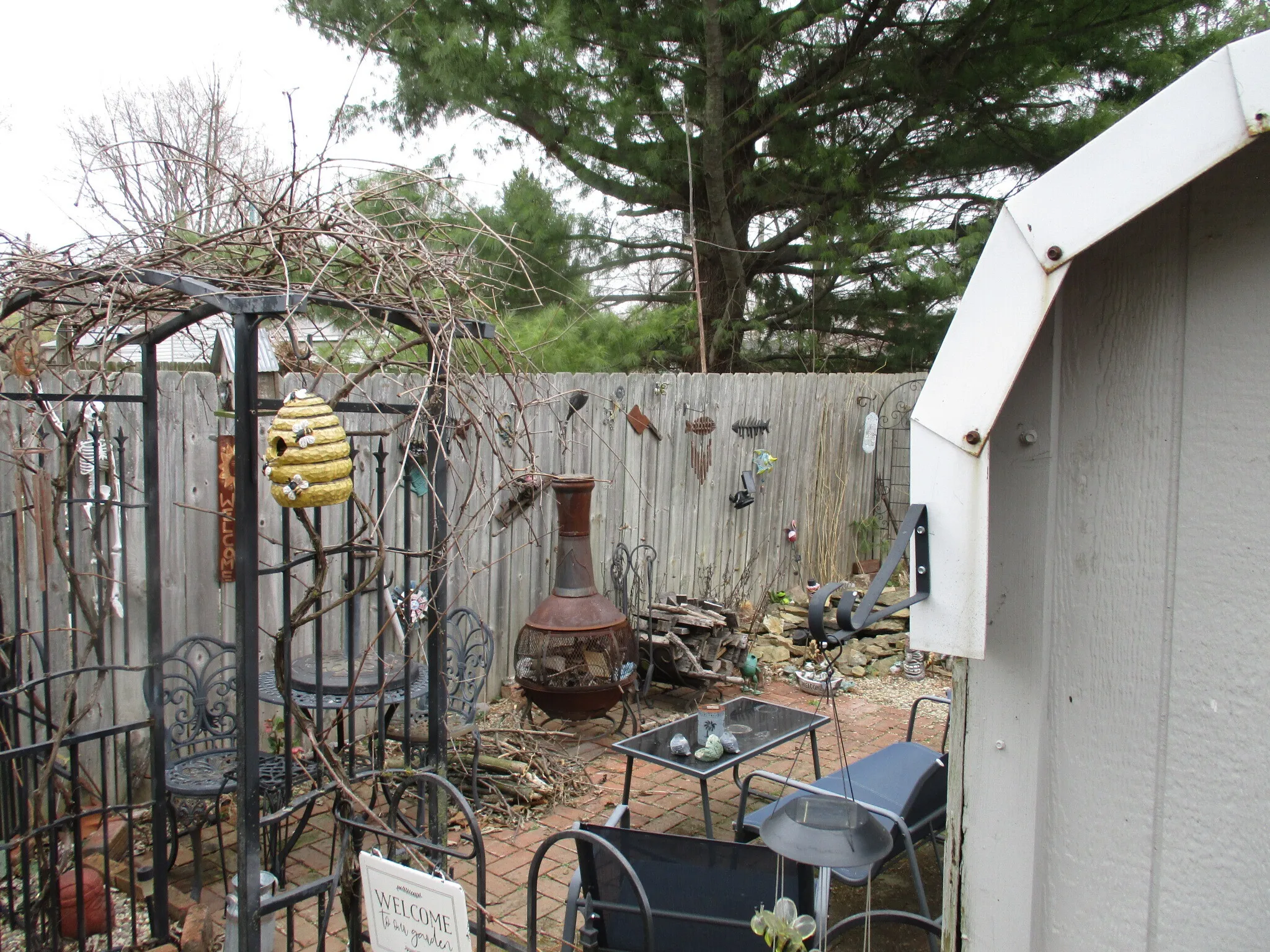 Charming 3 bedroom, 1 bath home with carport and 2 storage buildings, small pond and covered deck. Appliances all stay including stackable washer and dryer. The bedroom suite in upstairs bedroom stays as well as the window air unit. This is a cute home with a cozy back yard. Come take a look and make this yours. Great starter home or downsizing, this home is for you!! Being sold “AS IS”!