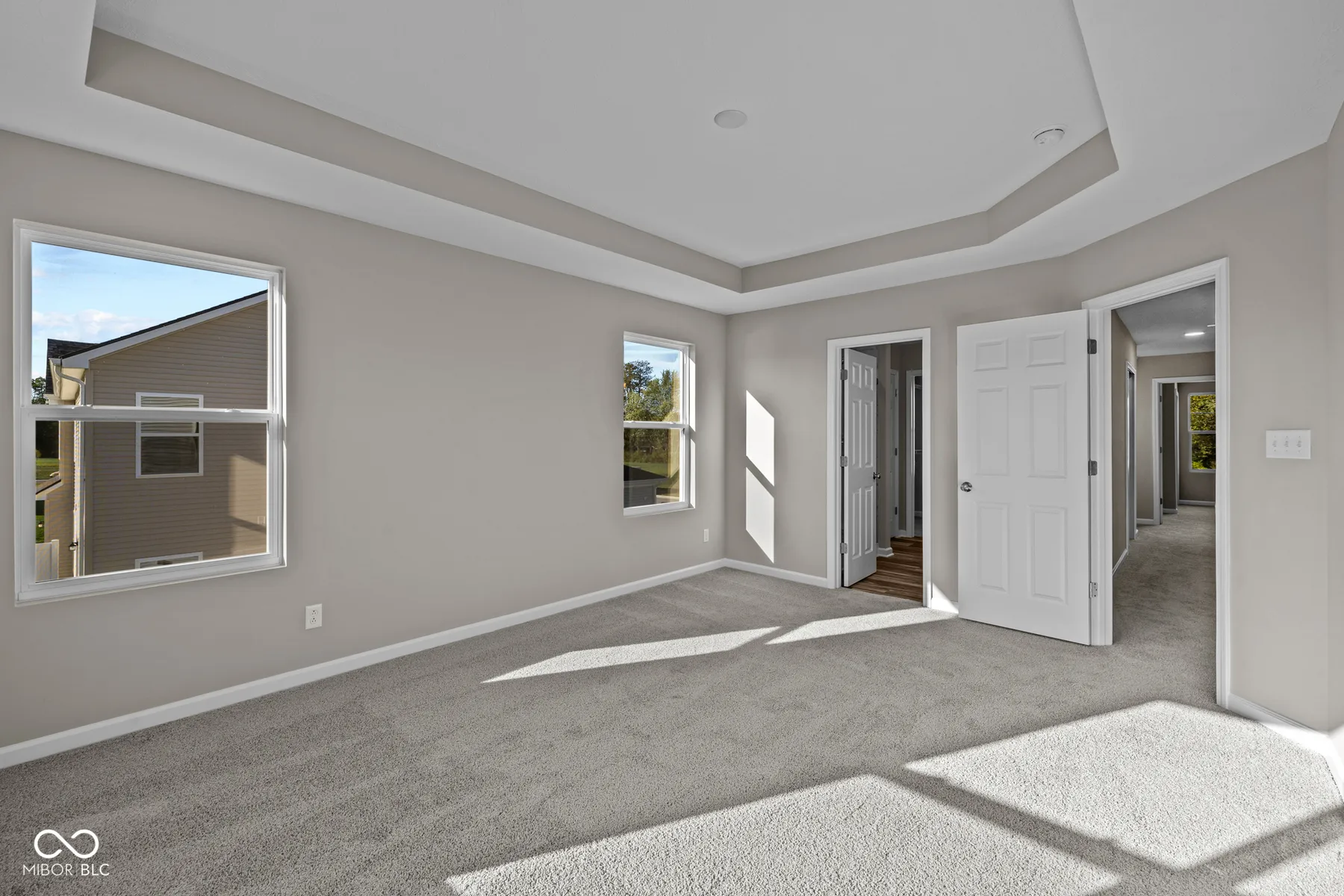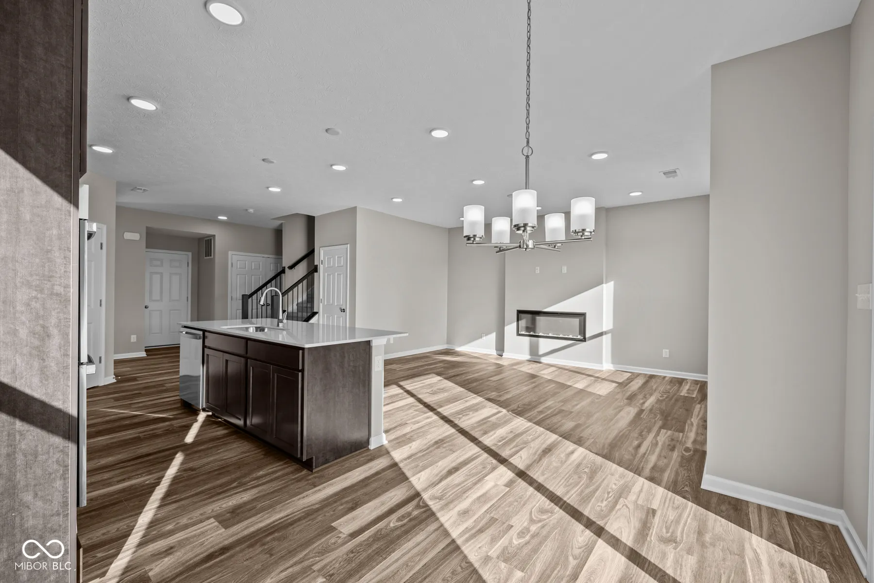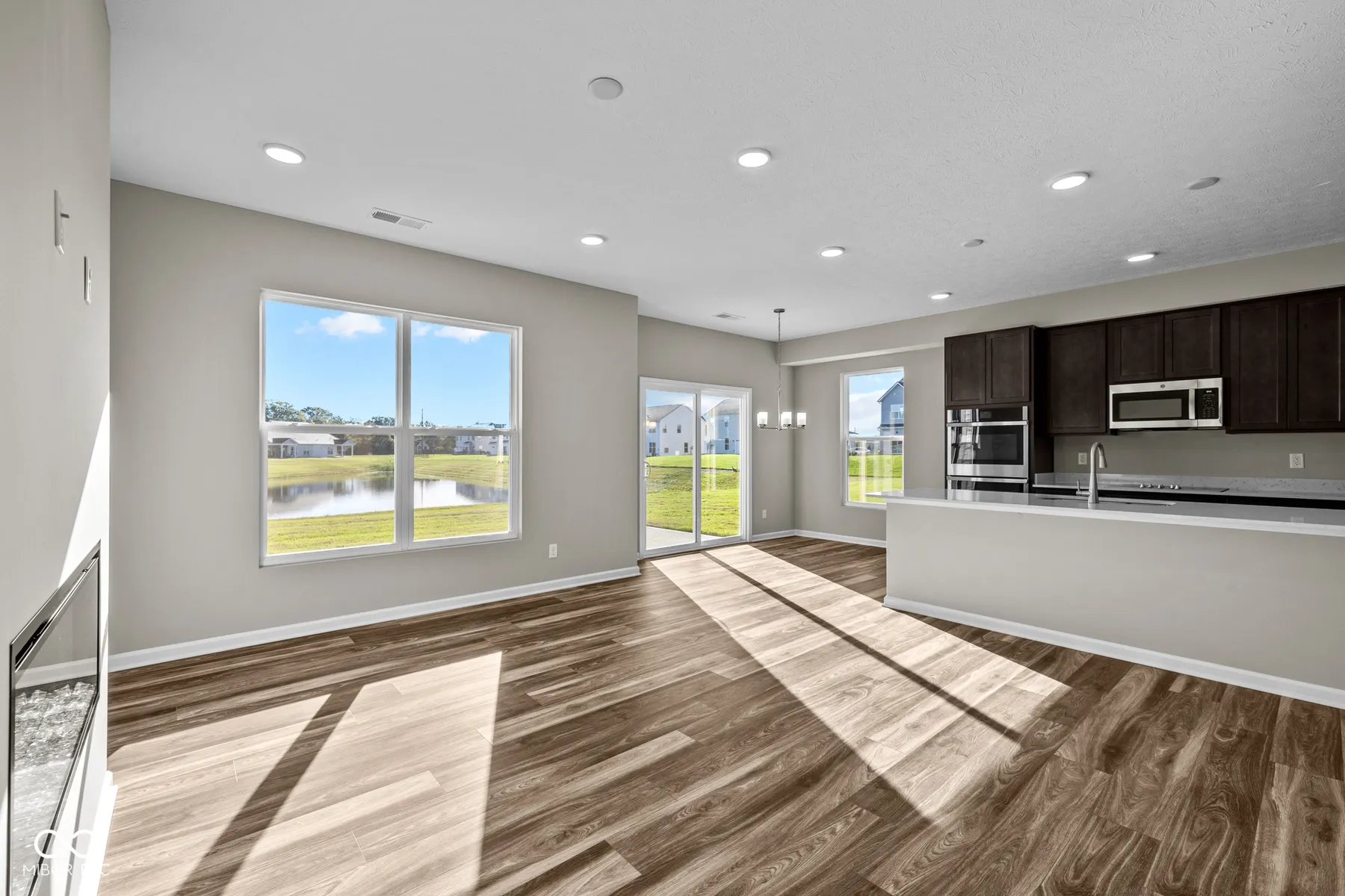 Welcome to 5519 Aspen Wood Lane, a new construction townhome for sale in Indianapolis, featuring 3 bedrooms and 2.5 bathrooms. Step inside through the front door, where the foyer immediately opens to the open-concept living space, including an expansive kitchen, a gathering room, and a dining nook. The kitchen comes with stainless steel appliances, a roomy corner pantry, and tons of cabinetry and countertop space for meal prep and storage. Head out to the patio through sliding glass doors along the back wall of the dining area. In addition to the open-concept layout of the main floor, one of the other special design features of this floorplan is the natural lighting streaming in through the window-lined walls, giving you a space you’ll love lounging and entertaining in. An under-the-stairs storage closet and a half bathroom complete the first floor. Upstairs, a long hallway awaits, guiding you to the owner’s suite with an en-suite bathroom, the laundry room, the 2 additional bedrooms, and another full bathroom.