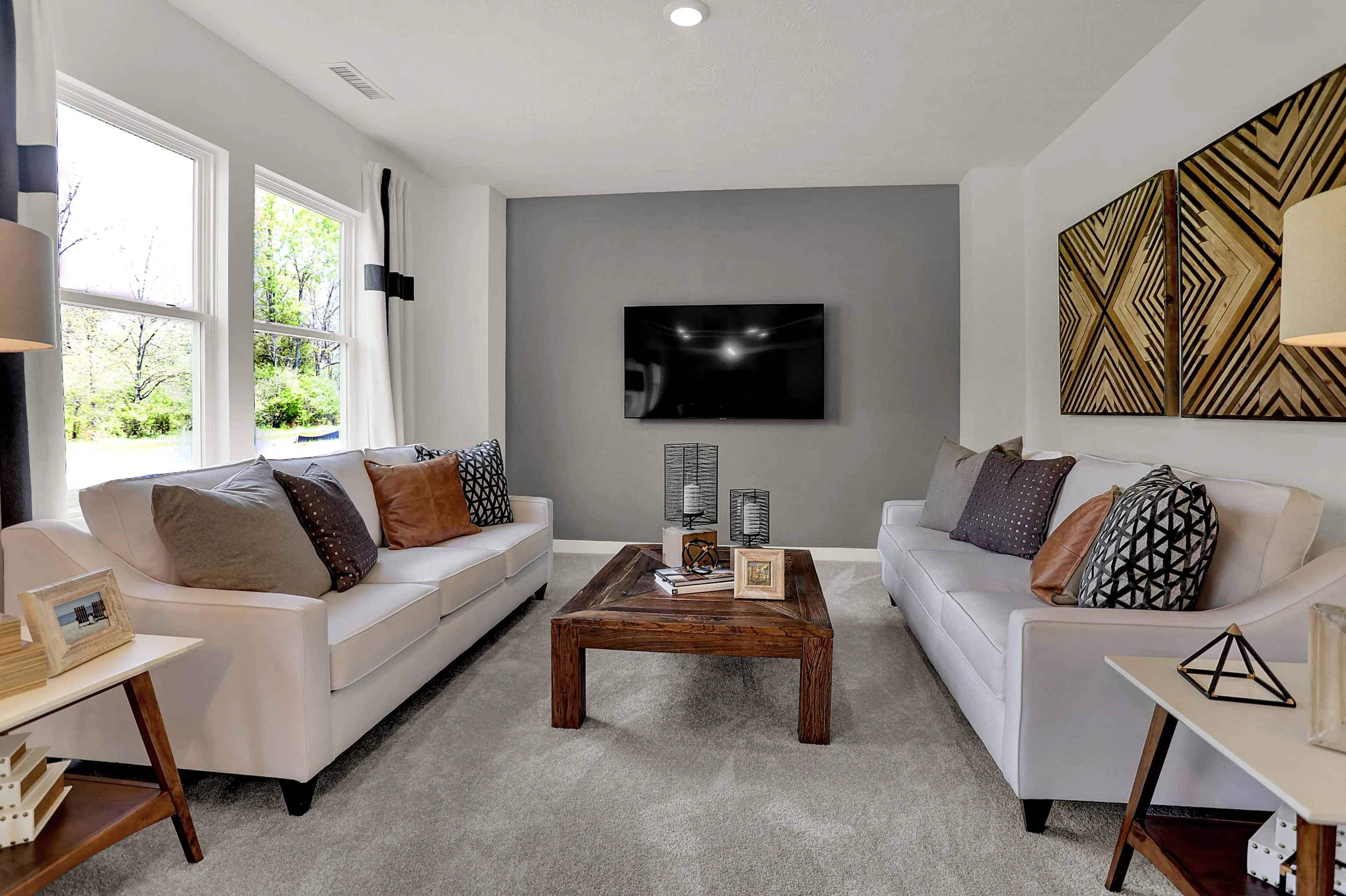Loudoun Place is a master-planned community of new single-family homes now selling in Indianapolis, IN. Its prime location offers residents access to all the great shopping, dining, outdoor recreation and entertainment the area has to offer, such as Fort Harrison State Park and the Fort Ben Cultural Campus. This new two-story home is optimized for gracious living. Upon entry is a study/ flex space perfect for remote work, while a convenient open-plan layout connecting the kitchen, dining room and Great Room completes the first floor. The second floor caters to a versatile loft for shared living space, three secondary bedrooms and a serene owner’s suite with an attached bathroom. *Photos/Tour of model may show features not selected in home.