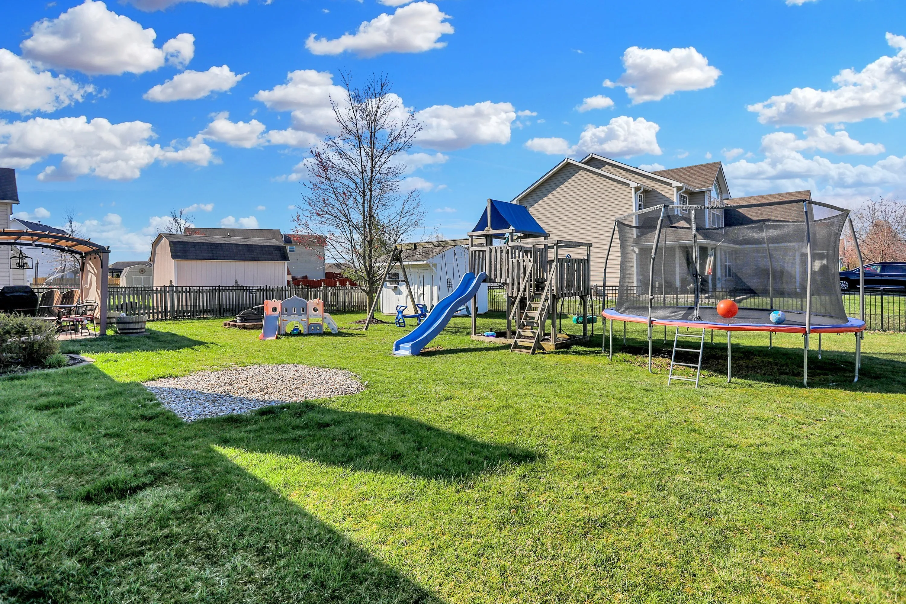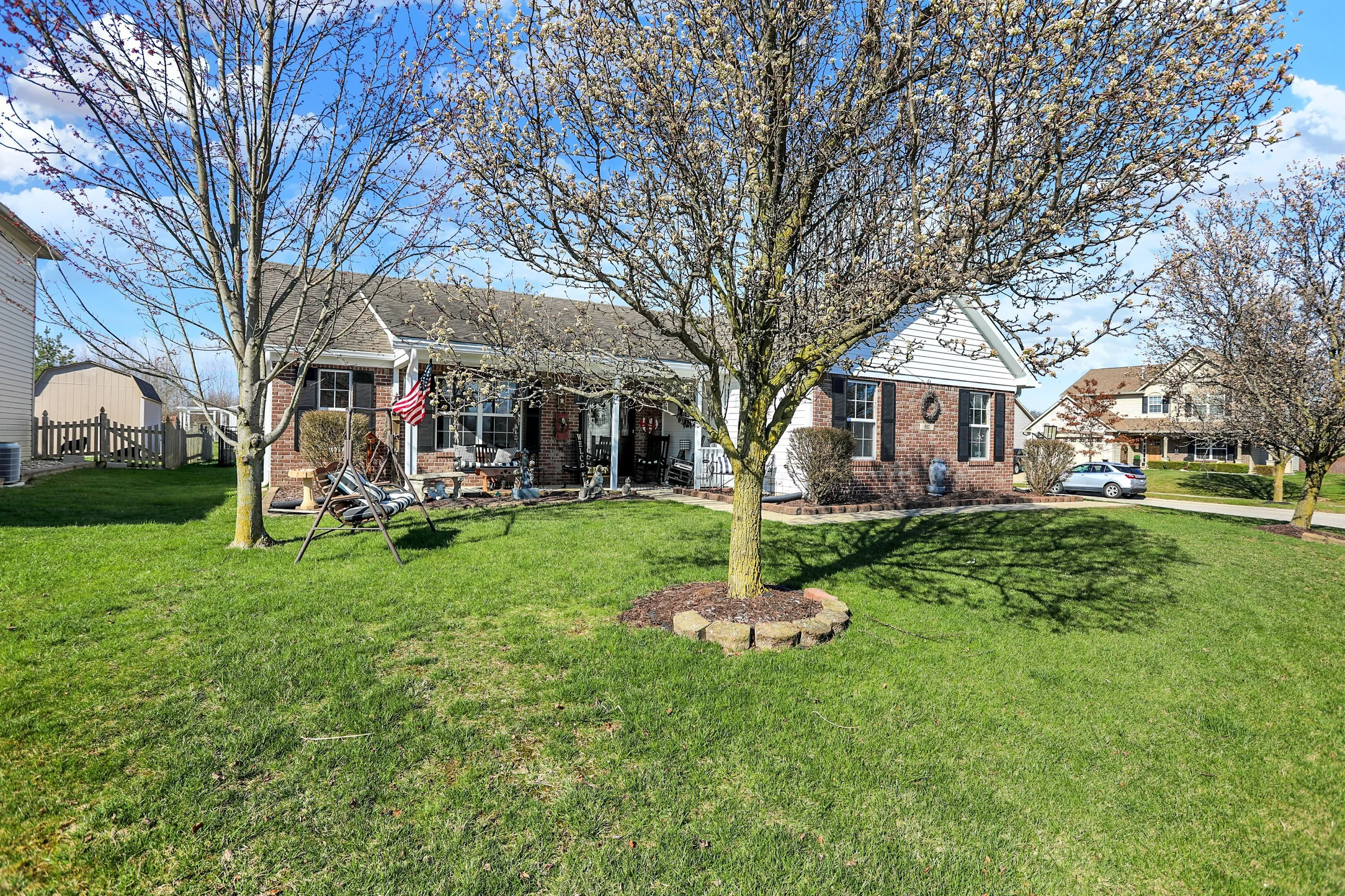 Beautiful one owner custom built ranch on quiet street in the coveted Windstar addition. Home features 3 bedrooms, 2 full baths, beautifully stained wood trim, brick fireplace, cherry cabinets and granite countertops. Check out the updated walk-in shower in the primary bath! Home has been beautifully maintained! You will love the peaceful front porch, she-shed in the back, and the classic wrought iron fence. The location is great with easy access to Blue Heron Park, playgrounds, walking/bike trail, downtown, pickleball courts, and Franklin College.