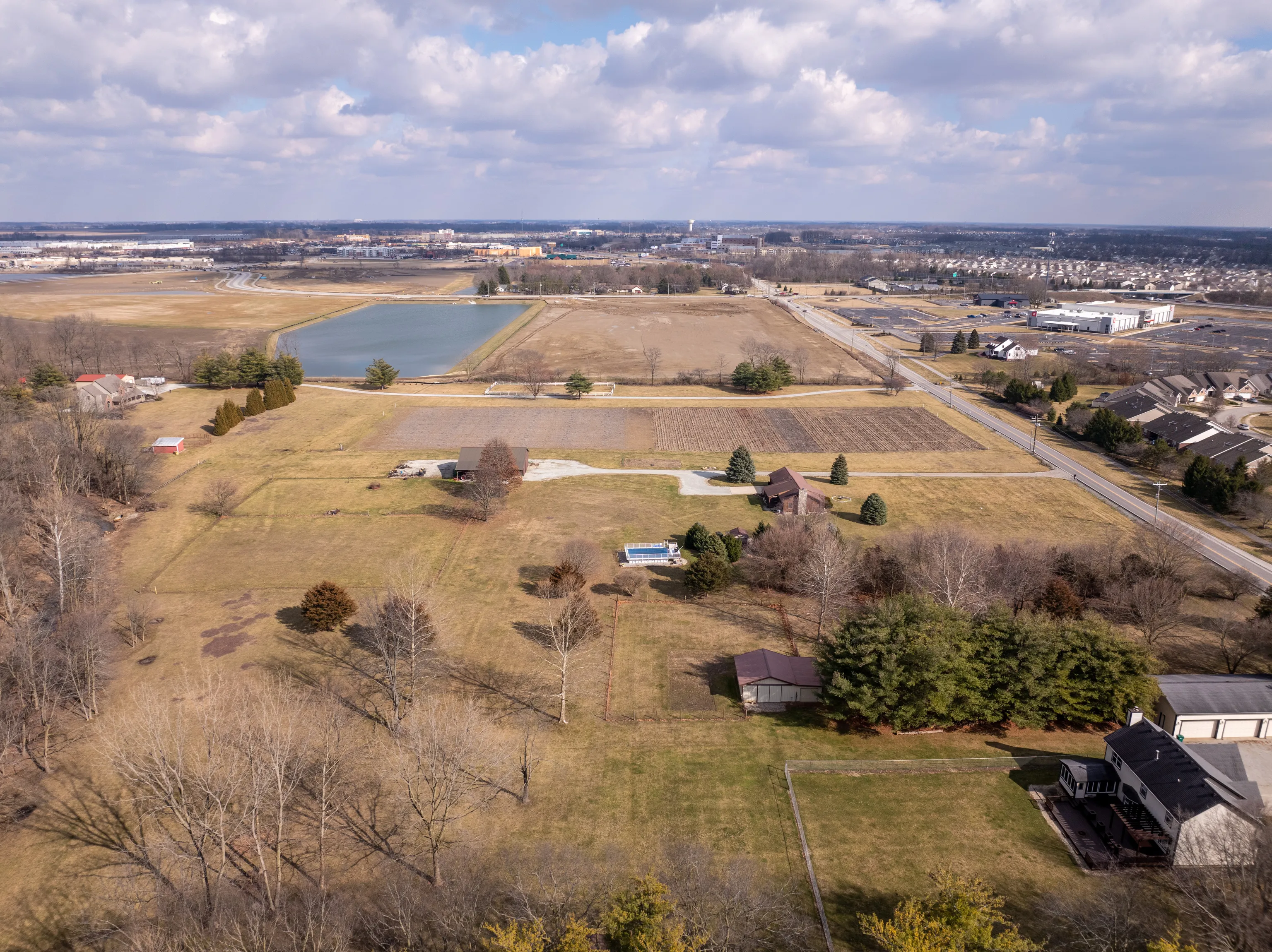 Incredible value proposition to acquire this unprecedented property offering a total of 10.66 acres on two side-by-side premium parcels. It uniquely combines a rural setting; a splash of suburban living and a whole lot of urban accessibility! A once-in-a-lifetime opportunity to purchase a private secluded retreat, land for your own business, to rent out or hold to build equity. Or all of the above. Either way, this exceptional real estate is calling all extraordinary people to come and take a look. If it’s the land you’re looking for – this is it! This expansive pristine property offers 600 feet of road frontage on 136th Street (and 300 feet bordering Sand Creek) in the highly sought-after Hamilton County, Noblesville area just 2 minutes south of Hamilton Town Center, 2 minutes west of I69 and 6 minutes northwest of award-winning Hamilton Southeastern High School. On the other hand, if you are nature lover, an outdoor enthusiast, or someone who simply values privacy, seclusion and tranquility, like this original owner does, you will not want to miss this rare find. This homestead is complete with custom built log home by Log Home Builders of Indiana, a magnificent multifaceted 36′ x 54′ (almost 2,000 SF) pole building (concrete floor, workbenches, electrical, etc.) with outdoor lit covered space that runs the full length of the building, some fenced fields, picturesque treed and Sand Creek frontage (flood insurance not required), propane heated Kayak steel frame above ground pool with pool house building and inspiring koi pond oasis. Enjoy rural countryside living and outdoor adventure in this pastoral, enchanting log home, seamlessly blending the warmth of rustic design with the comforts of modern living. SEE “ADDITIONAL INFORMATION” FOR FULL DETAILS.
