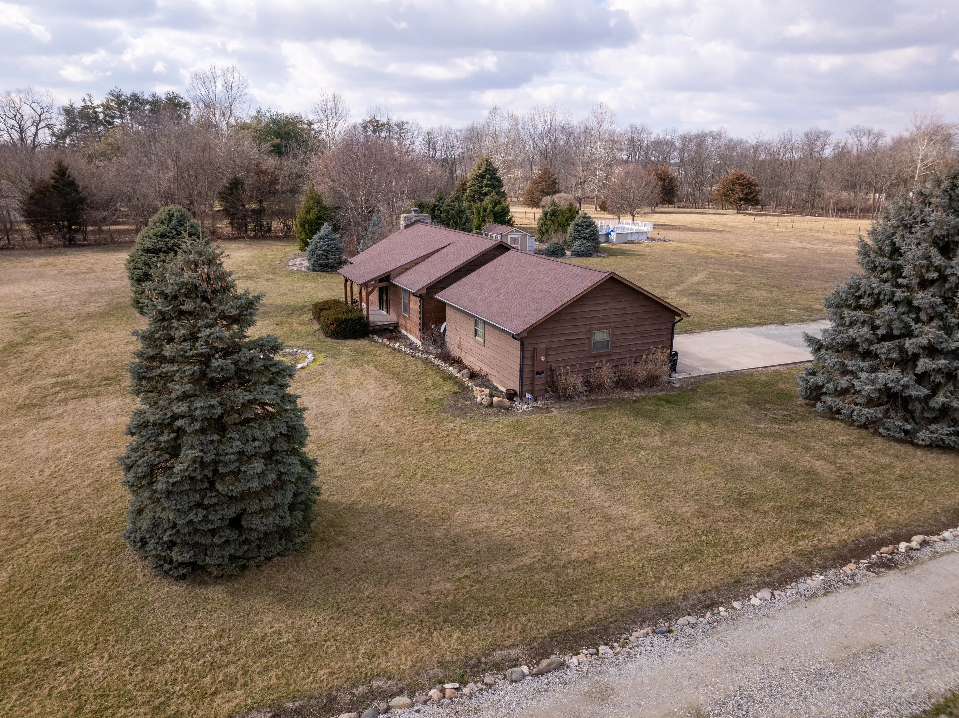 Incredible value proposition to acquire this unprecedented property offering a total of 10.66 acres on two side-by-side premium parcels. It uniquely combines a rural setting; a splash of suburban living and a whole lot of urban accessibility! A once-in-a-lifetime opportunity to purchase a private secluded retreat, land for your own business, to rent out or hold to build equity. Or all of the above. Either way, this exceptional real estate is calling all extraordinary people to come and take a look. If it’s the land you’re looking for – this is it! This expansive pristine property offers 600 feet of road frontage on 136th Street (and 300 feet bordering Sand Creek) in the highly sought-after Hamilton County, Noblesville area just 2 minutes south of Hamilton Town Center, 2 minutes west of I69 and 6 minutes northwest of award-winning Hamilton Southeastern High School. On the other hand, if you are nature lover, an outdoor enthusiast, or someone who simply values privacy, seclusion and tranquility, like this original owner does, you will not want to miss this rare find. This homestead is complete with custom built log home by Log Home Builders of Indiana, a magnificent multifaceted 36′ x 54′ (almost 2,000 SF) pole building (concrete floor, workbenches, electrical, etc.) with outdoor lit covered space that runs the full length of the building, some fenced fields, picturesque treed and Sand Creek frontage (flood insurance not required), propane heated Kayak steel frame above ground pool with pool house building and inspiring koi pond oasis. Enjoy rural countryside living and outdoor adventure in this pastoral, enchanting log home, seamlessly blending the warmth of rustic design with the comforts of modern living. SEE “ADDITIONAL INFORMATION” FOR FULL DETAILS.