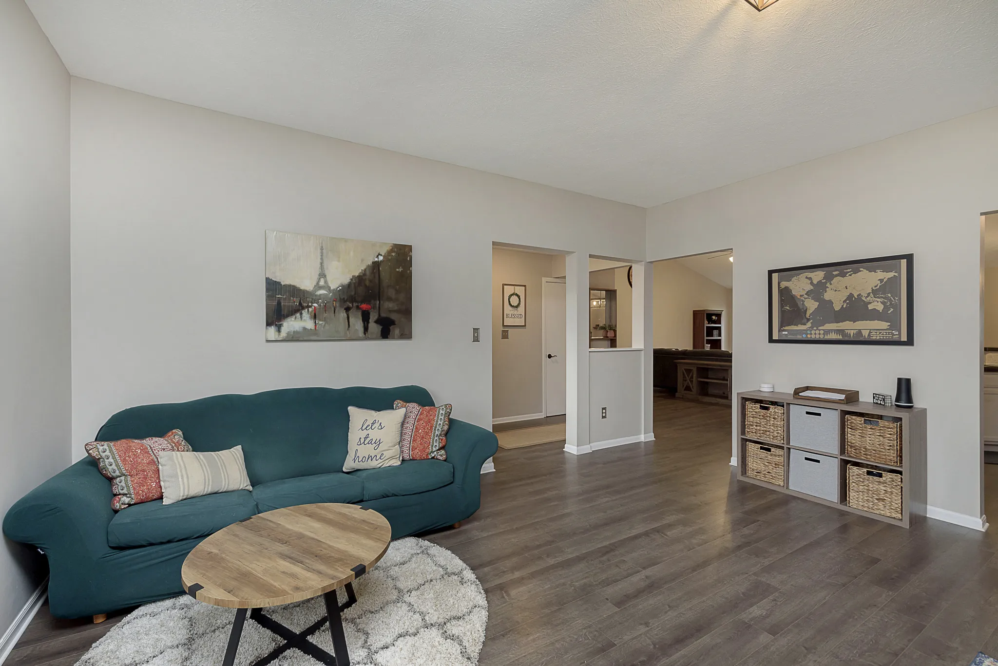 Beautiful, impeccably updated spacious 3 bed/2 bath open-concept ranch home! Updates include: Hardwood laminate floors in living area, carpet in bedrooms, and luxury vinyl plank in Sunroom. Foyer opens to living/dining room. Kitchen features tile backsplash, pantry and black stainless finger print resistant appliances. Kitchen opens to dining area and large great room with vaulted ceiling & fireplace. Master Bedroom includes large walk-in closet, double sinks, & oversized shower. Laundry room conveniently located off oversized 2-car garage. Enjoy quiet evenings on your enclosed porch with fenced backyard for privacy. All this plus a large storage shed and convenient location.