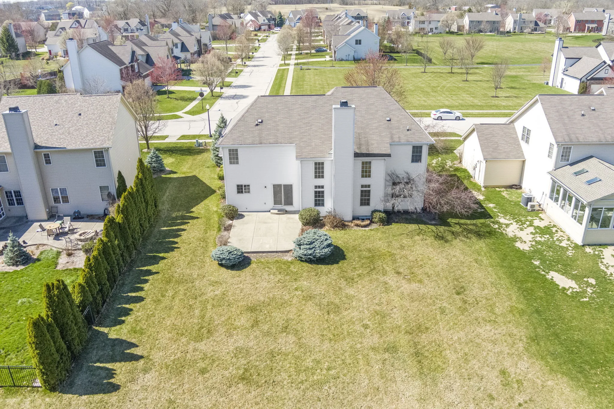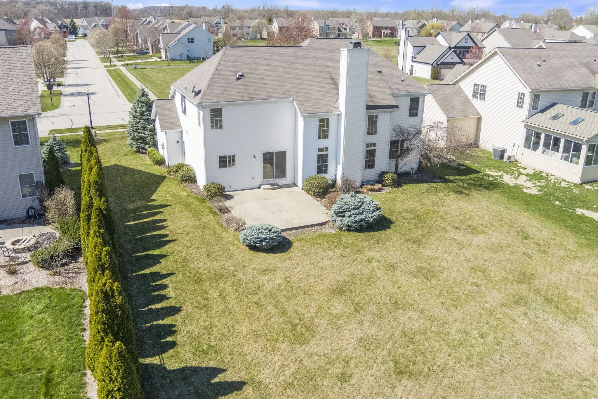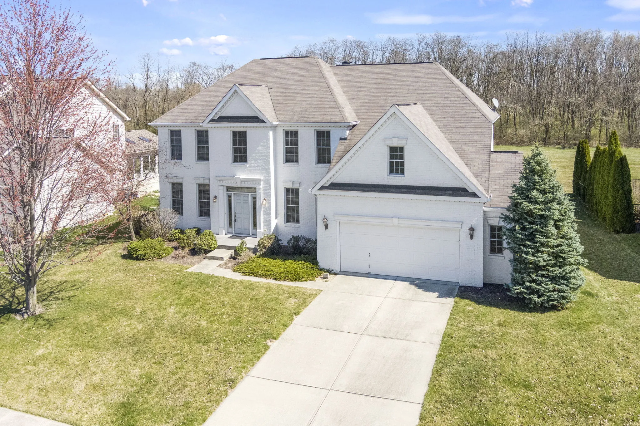 This super roomy 4 BR, 2.5 BA home has been well cared for by its only owner and is ready for the next chapter. The Entryway is bright, spacious, & connects to the whole house. The Family Room is large with soaring ceilings, tons of natural light, & a cozy fireplace, plus has an extra space that could be walled off for a separate room but already makes for a cozy seating area. There are two staircases that lead upstairs to 4 Bedrooms. The Master Bedroom and Bathroom are big & spacious. The Basement has a ton of potential and is ready to be finished however you like with roughed in plumbing for a bathroom and egress windows. One of the best parts of this home is the lot with views of the tree line–making the backyard almost private. This extremely desirable neighborhood has tons of greenspace, pathways, and is close to the Rail Trail & Zionsville Parks.